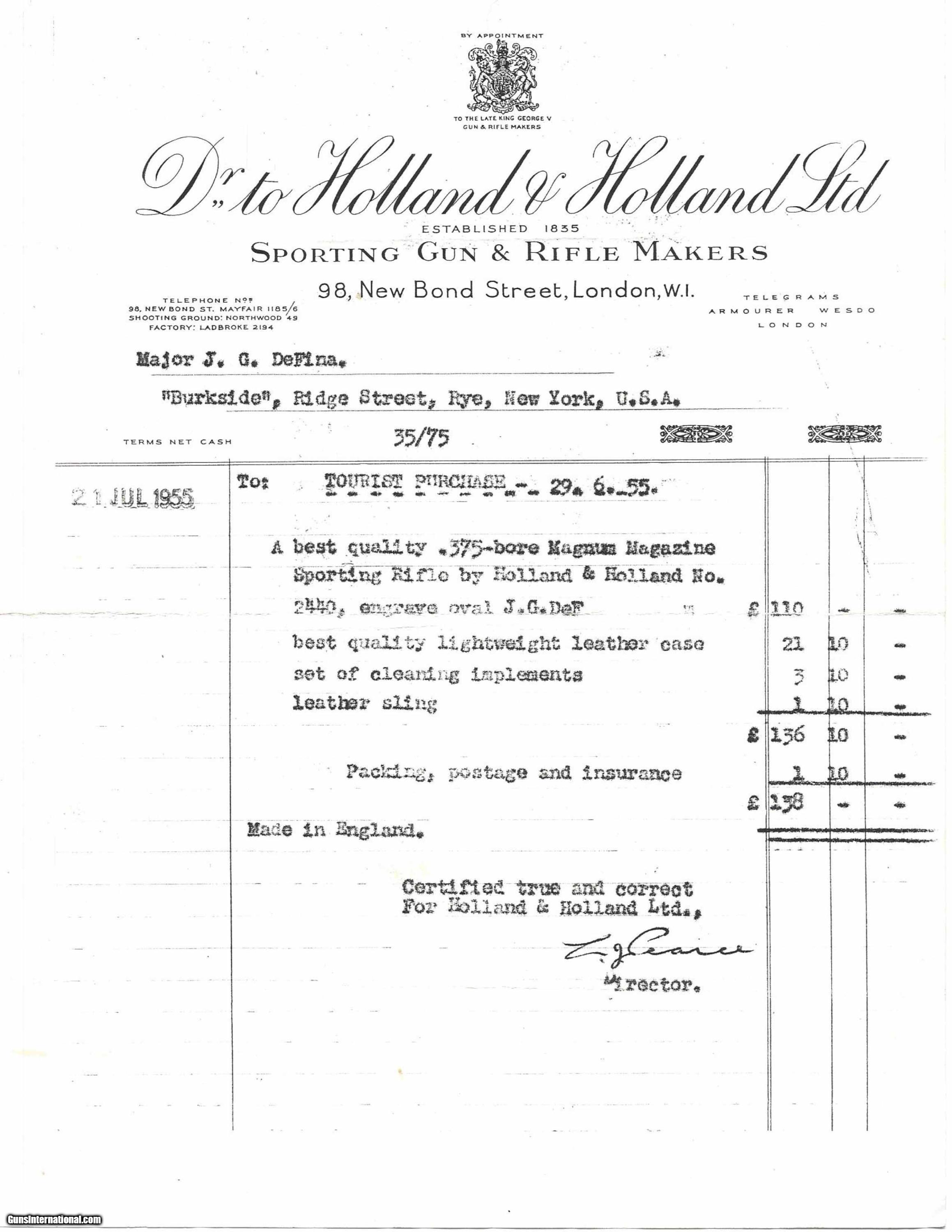 Holland & Holland Magazine Rifle .375 Magnum – TAKEDOWN, DOCUMENTED, MAUSER ACTION, 99%