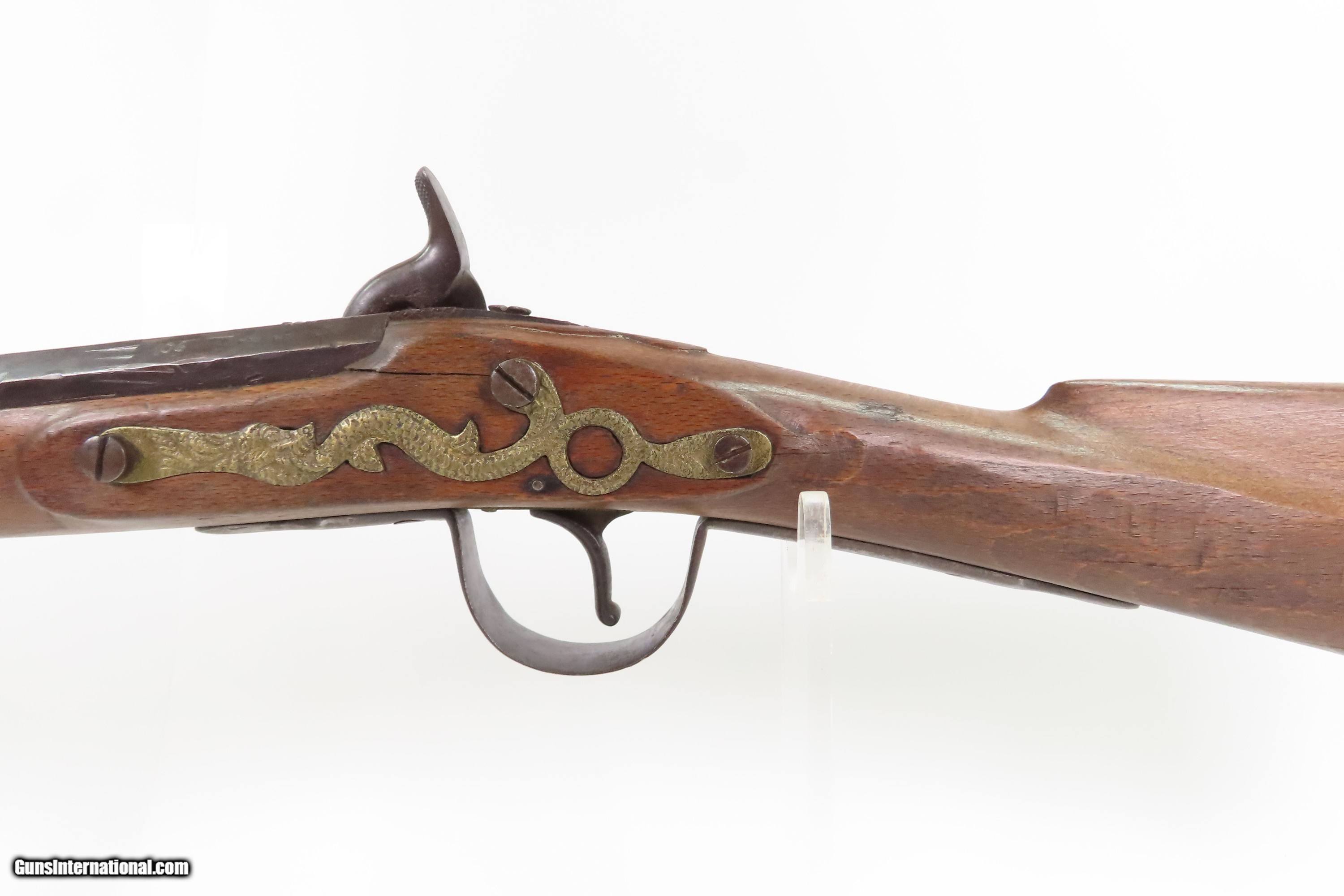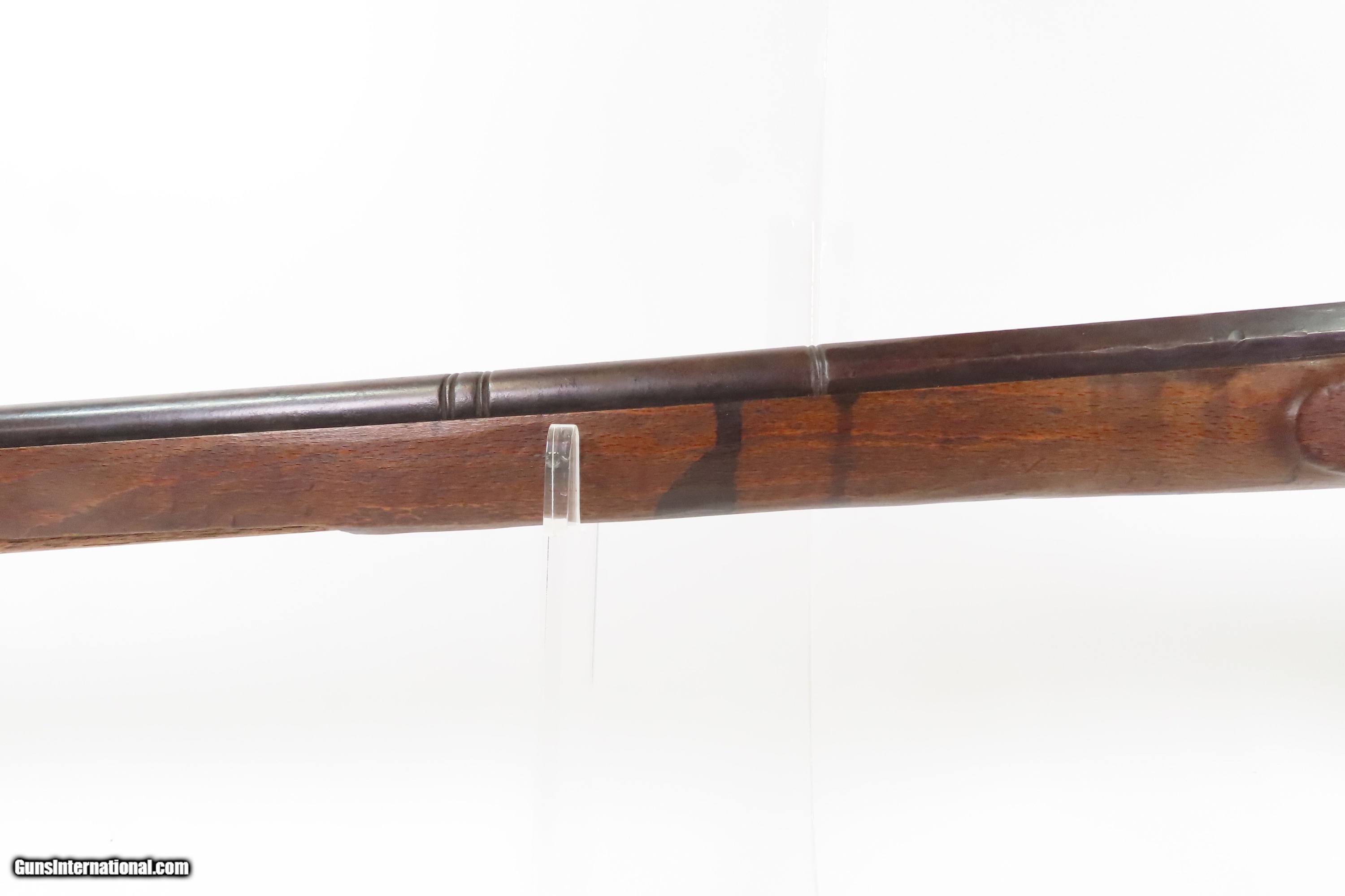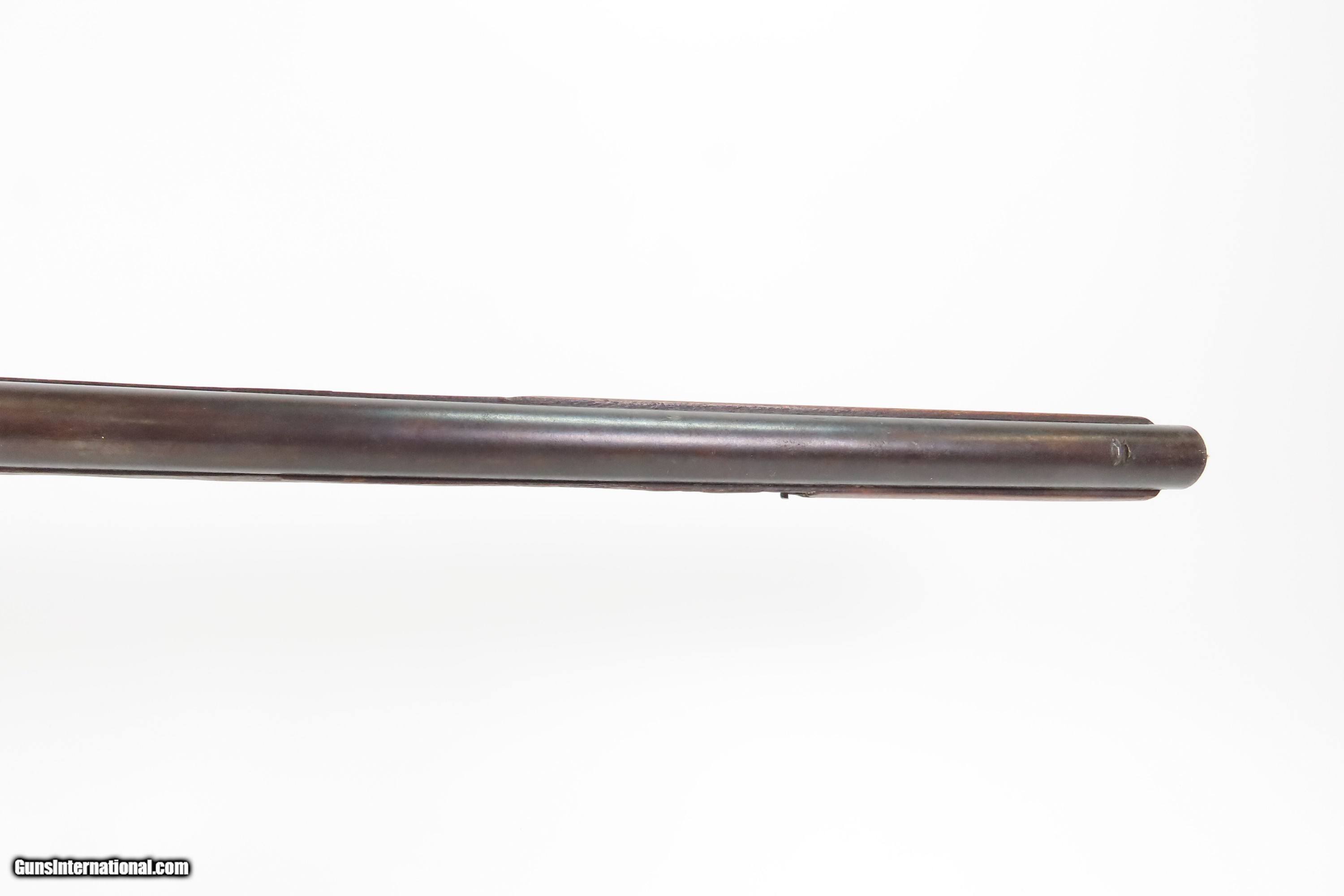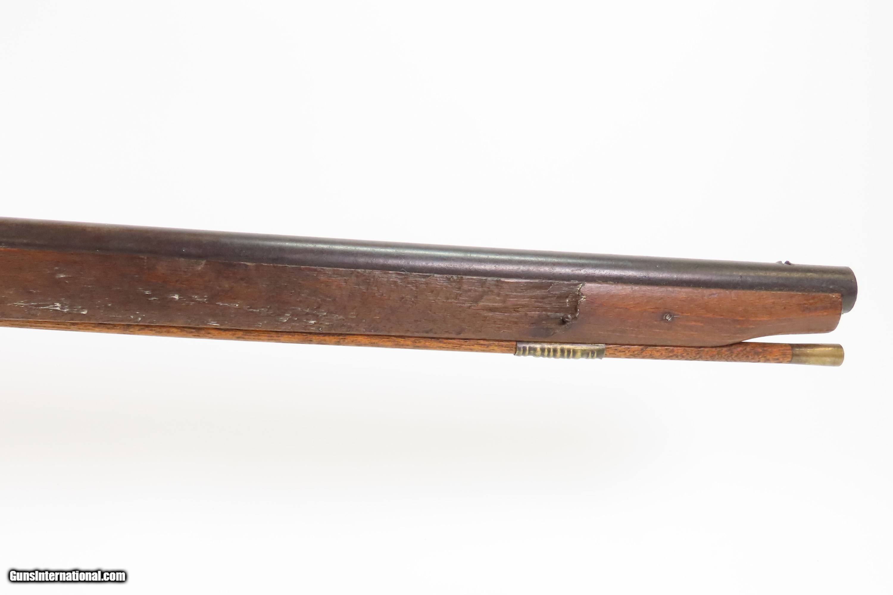 Description: Antique I. HOLLIS & SONS British .60 Percussion NW INDIAN TRADE Ball Gun London Made Longarm from the mid-19th Century Here we present an antique I. Hollis & Sons Percussion Ball Gun made circa 1862 in London, England. Isaac Hollis & Sons started out in the early part of the 19th century with the name of “Hollis Brothers”. It continued under that trade name until 1845 when it was re-named “Hollis Brothers & Co. which continued until 1848, when it became “Hollis & Sheath” after Isaac took on Isaac Brentnall Sheath as a partner. This continued until 1861 when the firm changed its name to I. Hollis & Sons on the departure of Sheath. Hollis & Sons became known as a supplier of pistols and shotguns, and also produced muskets, such as this example, that was possibly used for the North American Indian trade. From hunting buffalo to battles between European Americans and Native Americans, this rifle was built to be a rugged, powerful long arm through the tumultuous 19th century. Aside from being used as a great target rifle, it would have also been used to put food on the table or defend the homestead against unwanted intruders with its massive .60 caliber bore. The overall condition is good. Dark, original patina. The stock is solid showing grain splits at the buttplate. Legible markings. The action is robust. The bore is dark but good for its age. The stock has been sanded. Absent front sight. Absent section ahead of the bolster. Own the original! This is a legitimate antique and not a reproduction. Barrel is 28 ½ inches. Caliber: .60 Percussion Overall condition as seen in photos. Very Fast. Very Safe. FREE SHIPPING WORLDWIDE. Delivered directly to your door by express mail! Guaranteed AUTHENTIC & Includes CERTIFICATE OF AUTHENTICITY. ancestryguns $1250 #256024 SOLD Antique: Yes |