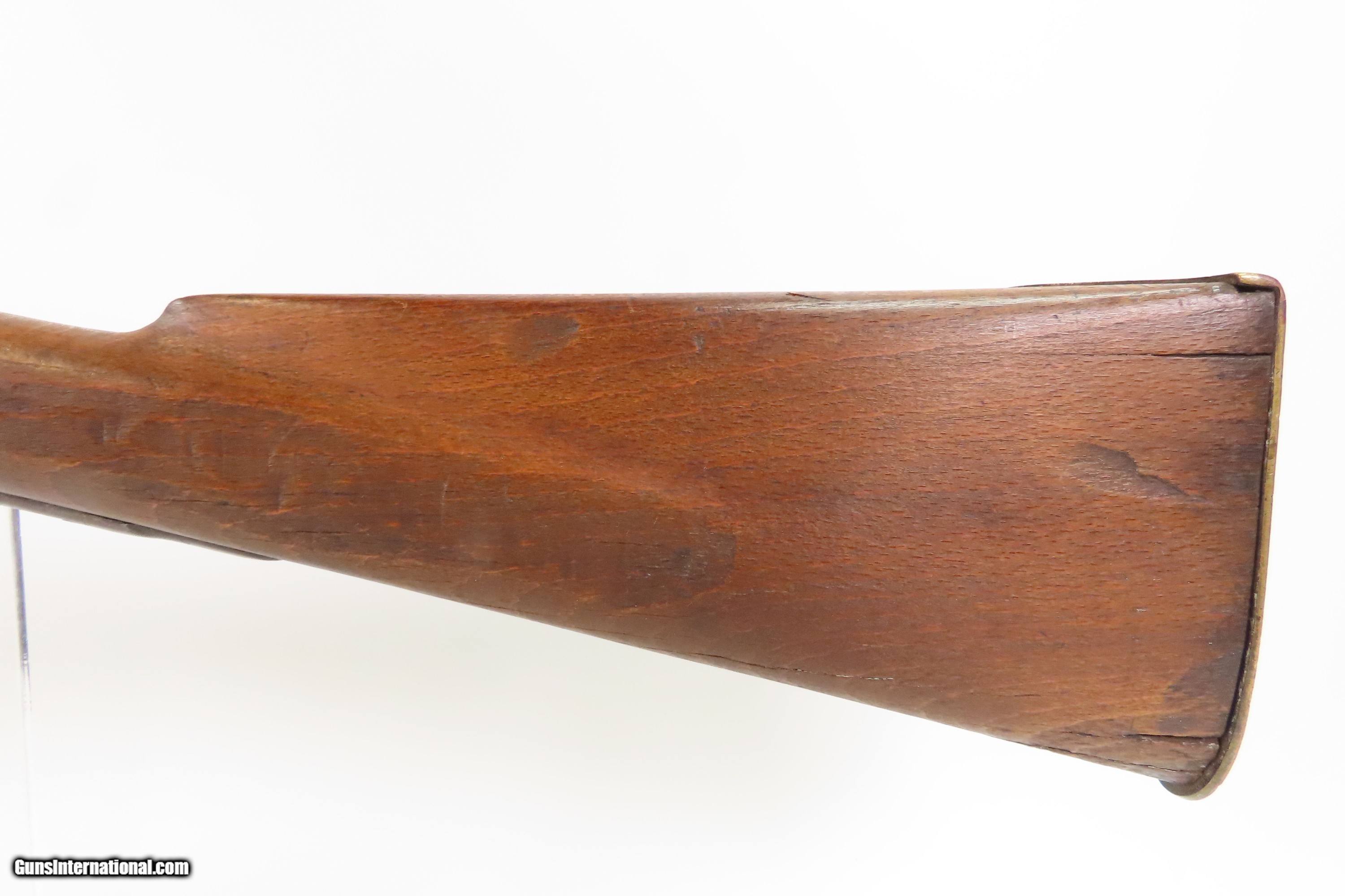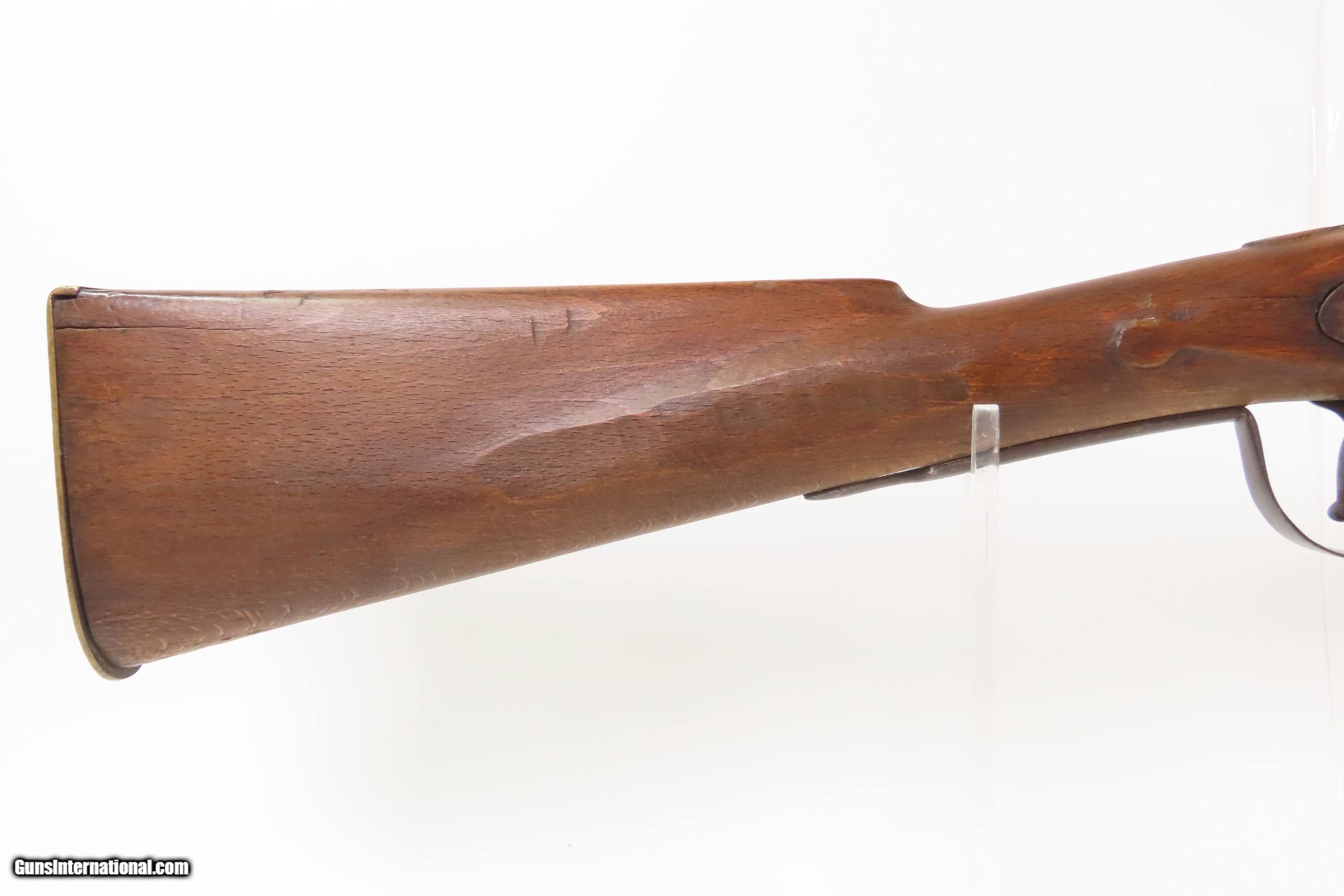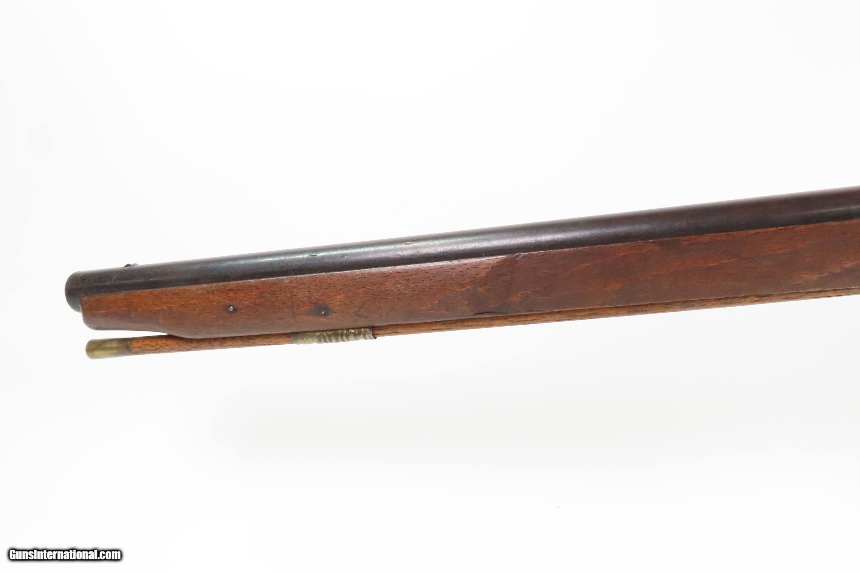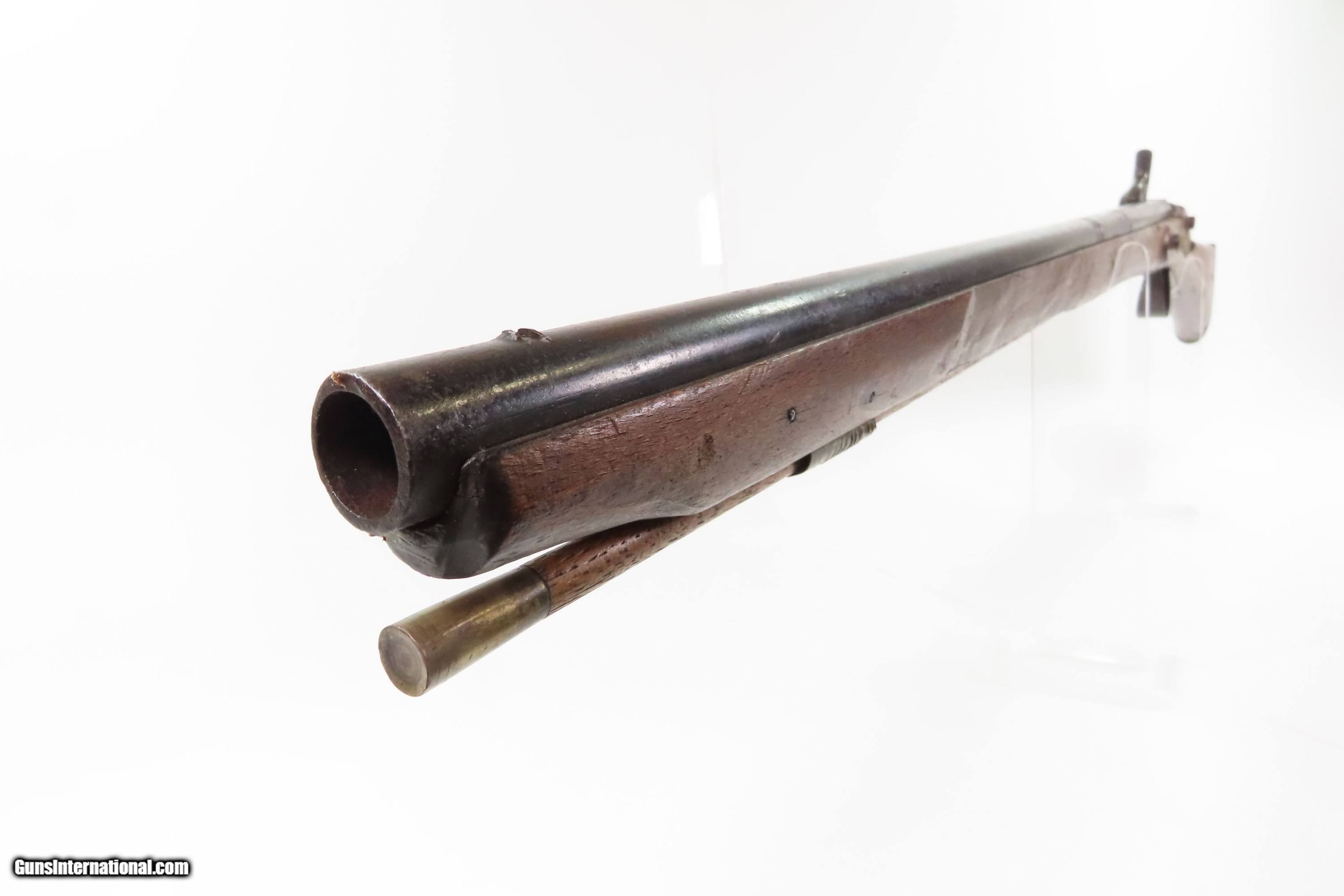 Description: Antique I. HOLLIS & SONS British .60 Percussion NW INDIAN TRADE Ball Gun London Made Longarm from the mid-19th Century Here we present an antique I. Hollis & Sons Percussion Ball Gun made circa 1862 in London, England. Isaac Hollis & Sons started out in the early part of the 19th century with the name of “Hollis Brothers”. It continued under that trade name until 1845 when it was re-named “Hollis Brothers & Co. which continued until 1848, when it became “Hollis & Sheath” after Isaac took on Isaac Brentnall Sheath as a partner. This continued until 1861 when the firm changed its name to I. Hollis & Sons on the departure of Sheath. Hollis & Sons became known as a supplier of pistols and shotguns, and also produced muskets, such as this example, that was possibly used for the North American Indian trade. From hunting buffalo to battles between European Americans and Native Americans, this rifle was built to be a rugged, powerful long arm through the tumultuous 19th century. Aside from being used as a great target rifle, it would have also been used to put food on the table or defend the homestead against unwanted intruders with its massive .60 caliber bore. The overall condition is good. Dark, original patina. The stock is solid showing grain splits at the buttplate. Legible markings. The action is robust. The bore is dark but good for its age. The stock has been sanded. Absent front sight. Absent section ahead of the bolster. Own the original! This is a legitimate antique and not a reproduction. Barrel is 28 ½ inches. Caliber: .60 Percussion Overall condition as seen in photos. Very Fast. Very Safe. FREE SHIPPING WORLDWIDE. Delivered directly to your door by express mail! Guaranteed AUTHENTIC & Includes CERTIFICATE OF AUTHENTICITY. ancestryguns $1250 #256024 SOLD Antique: Yes |