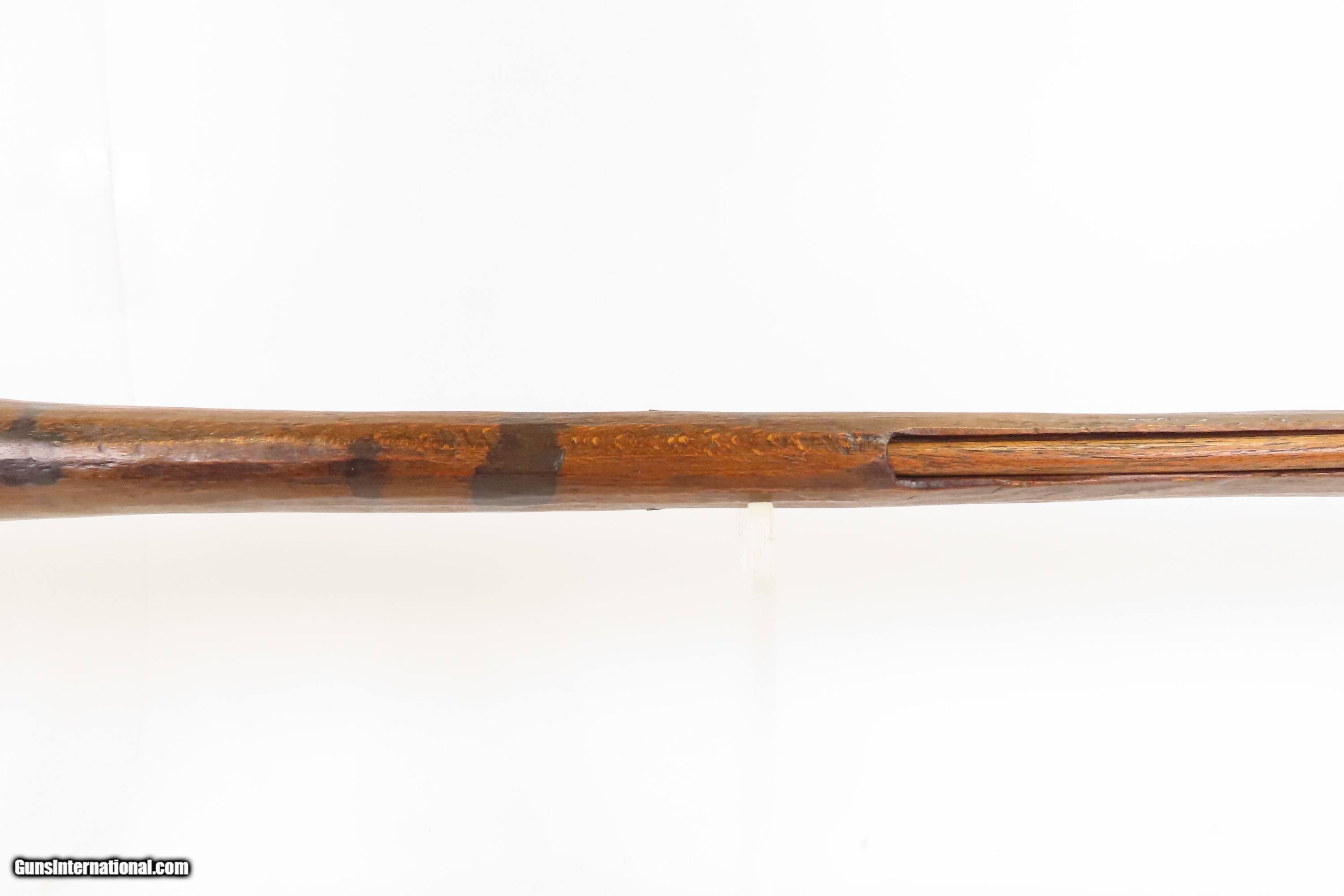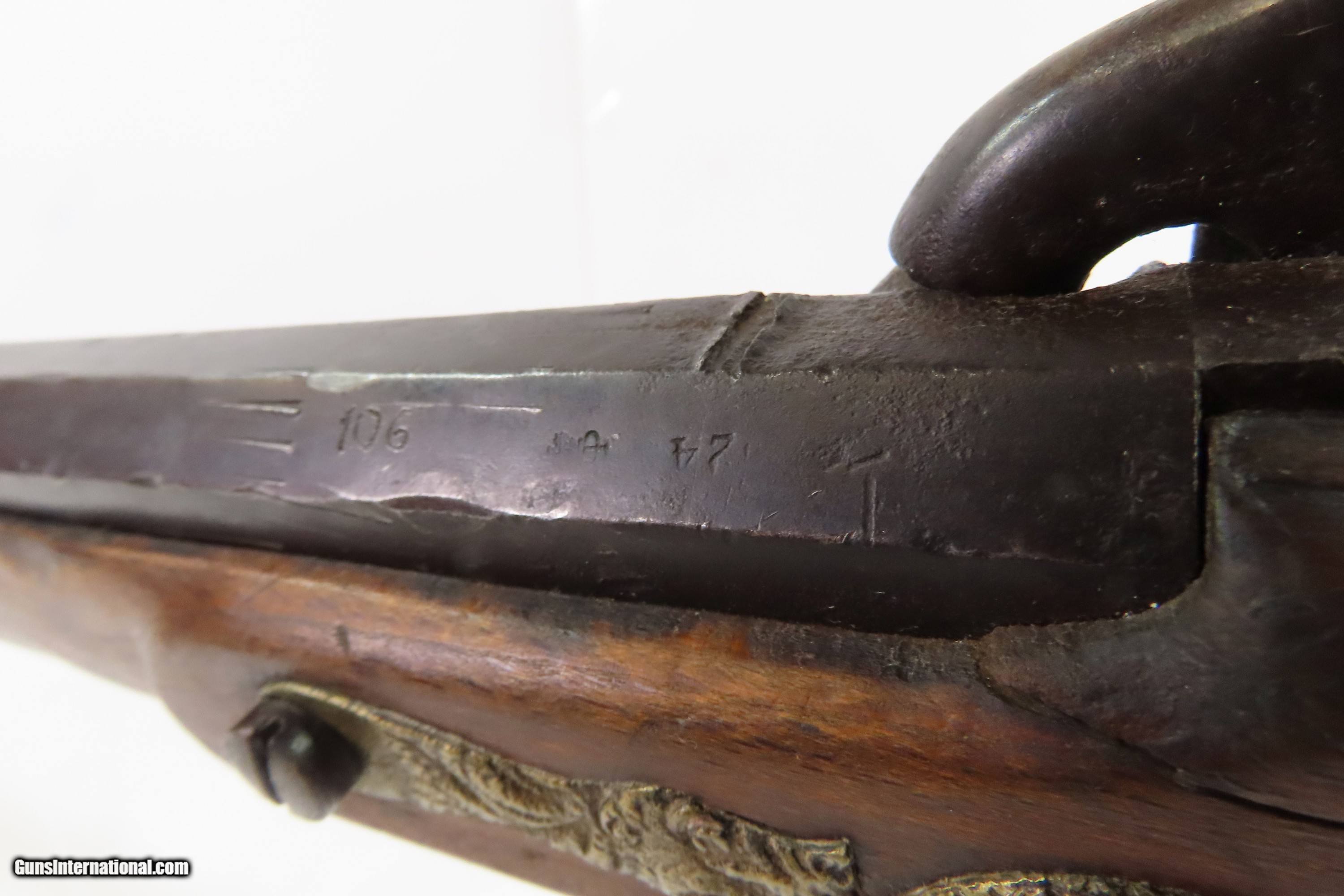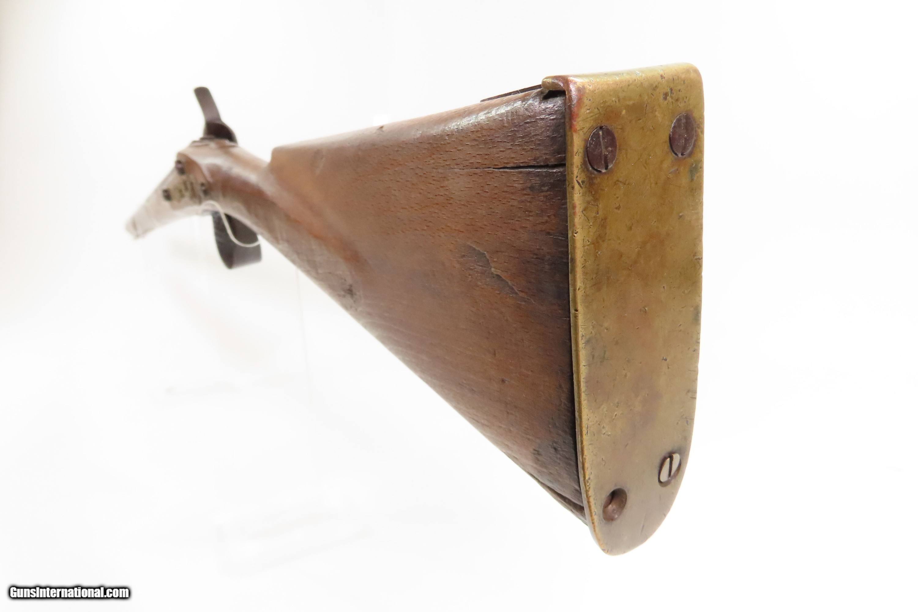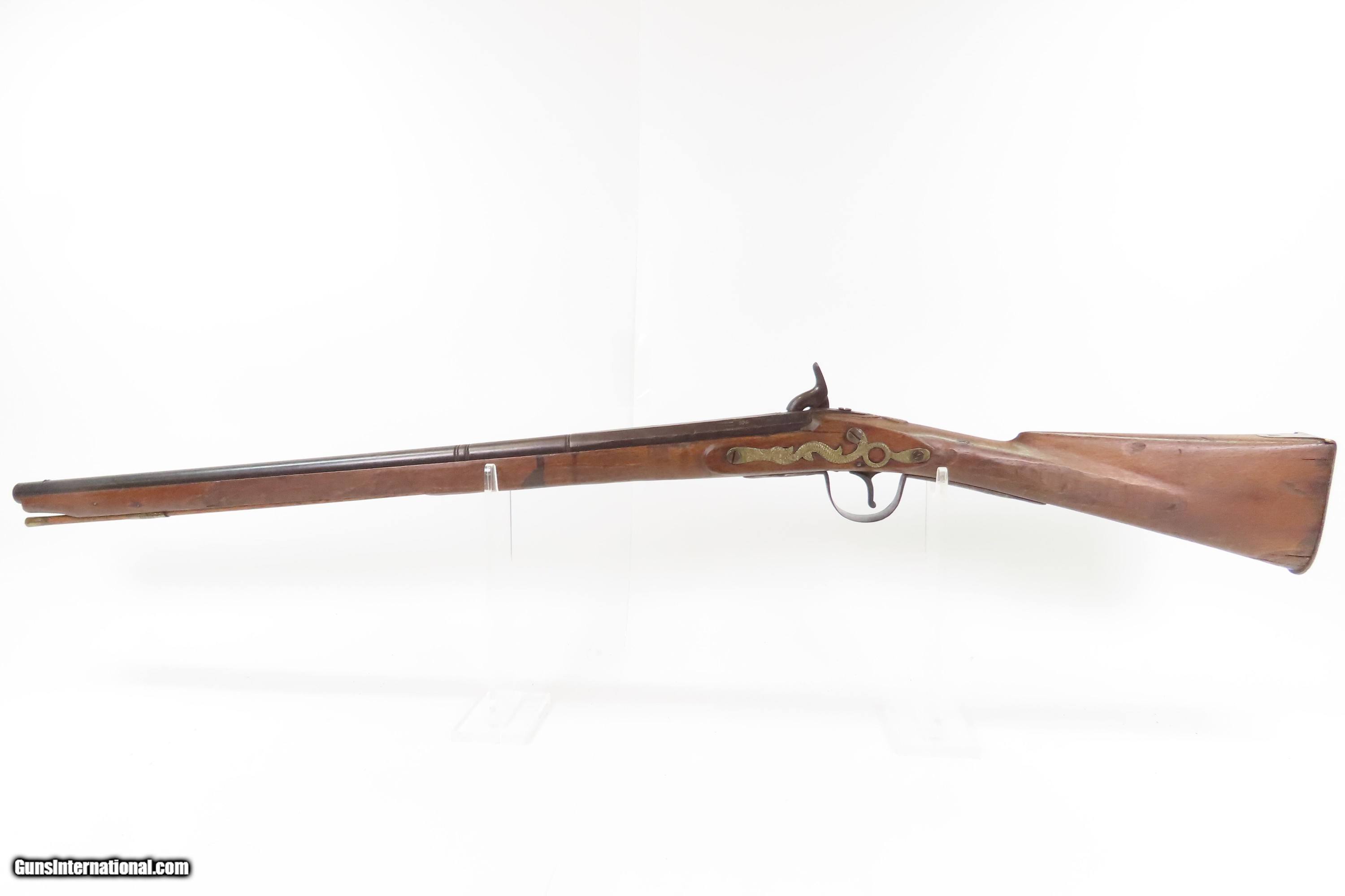 Description: Antique I. HOLLIS & SONS British .60 Percussion NW INDIAN TRADE Ball Gun London Made Longarm from the mid-19th Century Here we present an antique I. Hollis & Sons Percussion Ball Gun made circa 1862 in London, England. Isaac Hollis & Sons started out in the early part of the 19th century with the name of “Hollis Brothers”. It continued under that trade name until 1845 when it was re-named “Hollis Brothers & Co. which continued until 1848, when it became “Hollis & Sheath” after Isaac took on Isaac Brentnall Sheath as a partner. This continued until 1861 when the firm changed its name to I. Hollis & Sons on the departure of Sheath. Hollis & Sons became known as a supplier of pistols and shotguns, and also produced muskets, such as this example, that was possibly used for the North American Indian trade. From hunting buffalo to battles between European Americans and Native Americans, this rifle was built to be a rugged, powerful long arm through the tumultuous 19th century. Aside from being used as a great target rifle, it would have also been used to put food on the table or defend the homestead against unwanted intruders with its massive .60 caliber bore. The overall condition is good. Dark, original patina. The stock is solid showing grain splits at the buttplate. Legible markings. The action is robust. The bore is dark but good for its age. The stock has been sanded. Absent front sight. Absent section ahead of the bolster. Own the original! This is a legitimate antique and not a reproduction. Barrel is 28 ½ inches. Caliber: .60 Percussion Overall condition as seen in photos. Very Fast. Very Safe. FREE SHIPPING WORLDWIDE. Delivered directly to your door by express mail! Guaranteed AUTHENTIC & Includes CERTIFICATE OF AUTHENTICITY. ancestryguns $1250 #256024 SOLD Antique: Yes |