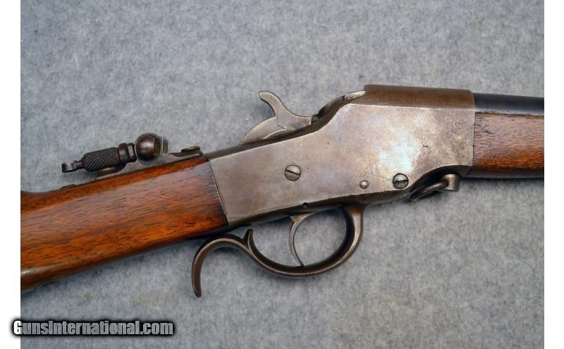 Description: Single shot falling block takedown rifle, Features, Front brass blade and rear adjustable sights, Heavy blued barrel, Case hardened receiver, Plain wooden straight grip stock and forend, Barrel length, 26". Includes a soft case. .32 WCF SOLD Barrels: 26 Weight: 6 lb Item Location: christiana |