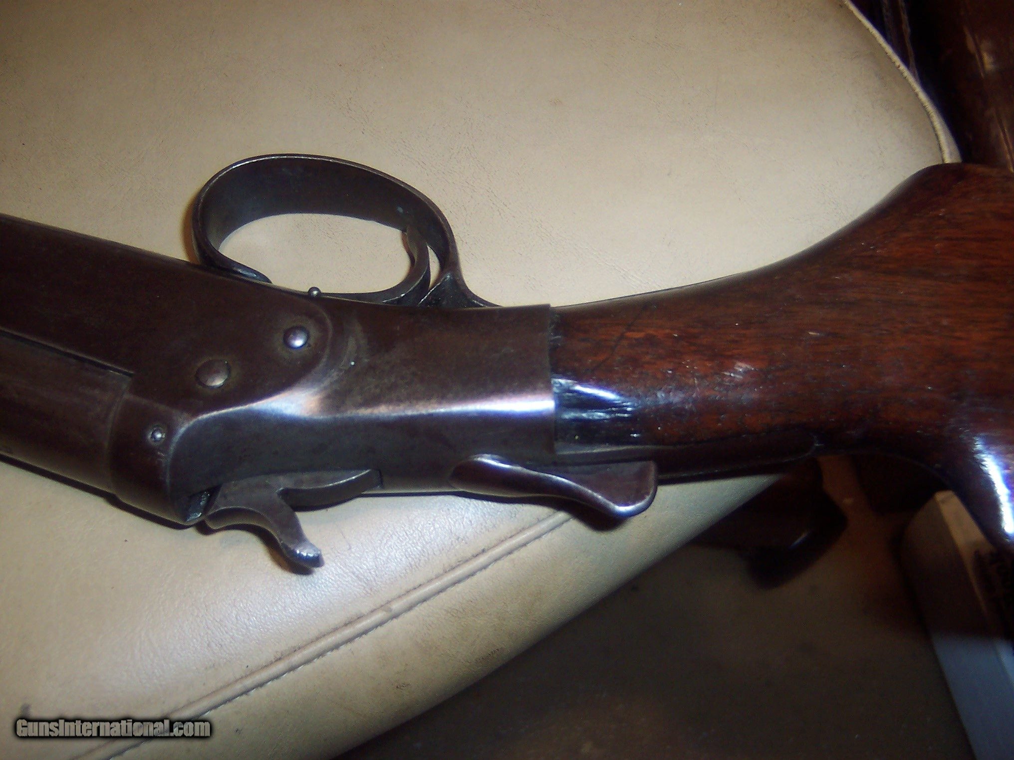 Description: finish has turned gray //30 inch 12 ga barrel // some light black powder pitting in bore / works fine in dry fire/// locks up tight ///nick in stock by receiver // aged tight crack in butthard to see / / sliver missing on forearm // may be an antique but need an ffl or c&r // serial #b1260 $50 sh good to go with black powder SOLD Curio/Relic: Yes Manufacturer: hopkins & allen Condition: good Metal Condition: good |
