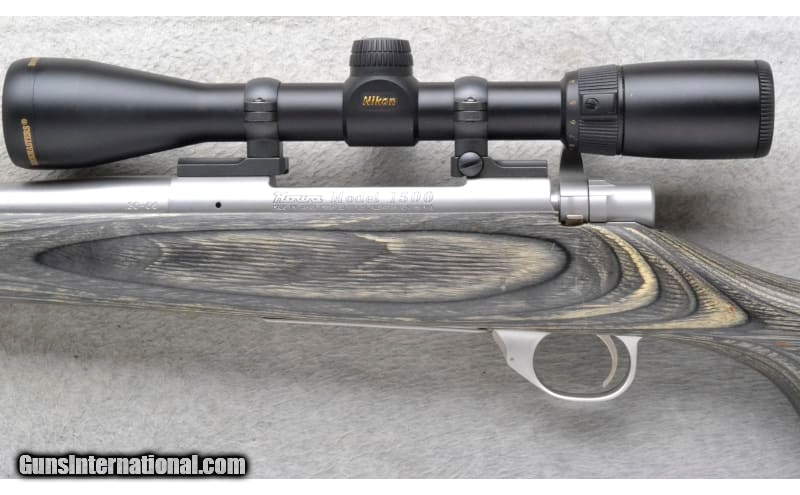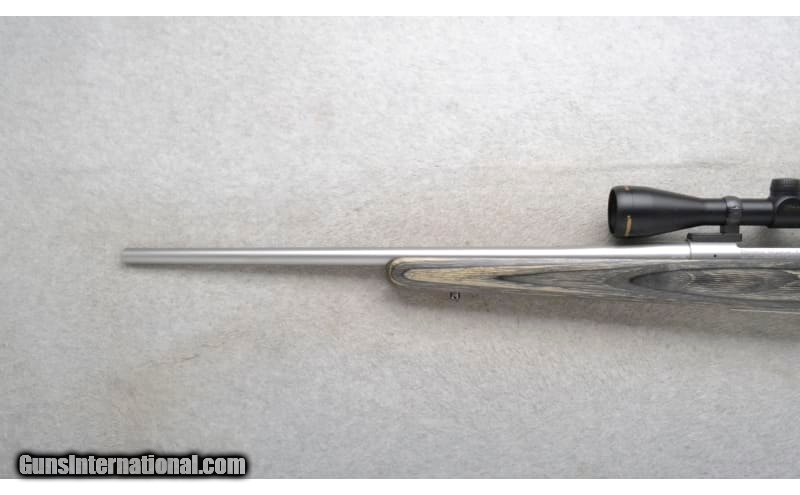 Description: This Howa Model 1500 is a right hand bolt action rifle in .30-06 Sprg. Cal. It has a 22 inch matte stainless steel barrel. It is outfitted with a Nikon Buckmasters Scope. The butt stock is a smooth grip hardwood laminate pistol grip with a raised cheekpiece. The forearm is a smooth grip hardwood laminate. .30-06 Springfield SOLD Chambers: Internal magazine with a hinged floorplate. Metal Condition: Excellent. Light scratch on top of barrel. Wood Condition: Excellent with some light handling/use marks. Bore Condition: Excellent. Barrels: 22 inch matte stainless steel. Stock Dimensions: LOP 13 1/2 inches. Fore End: Smooth grip hardwood laminate. Butt Pad: BOYDS' black rubber pad. Weight: 9 lb. 0 oz. Sights: Nikon Buckmasters 3-9x40 Scope. Item Location: Richfield, WI |