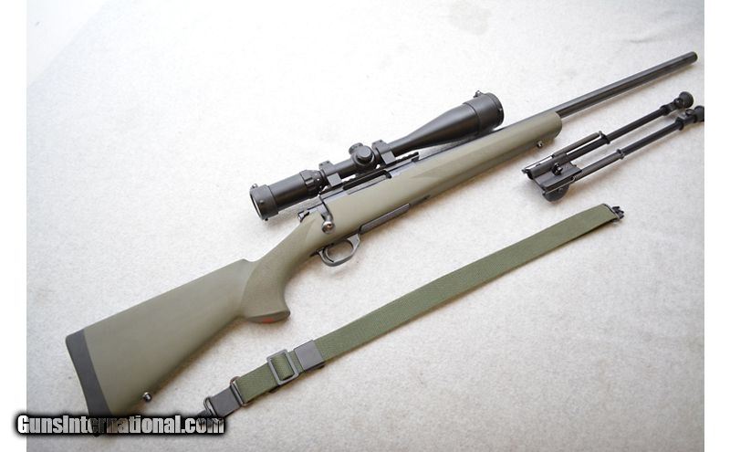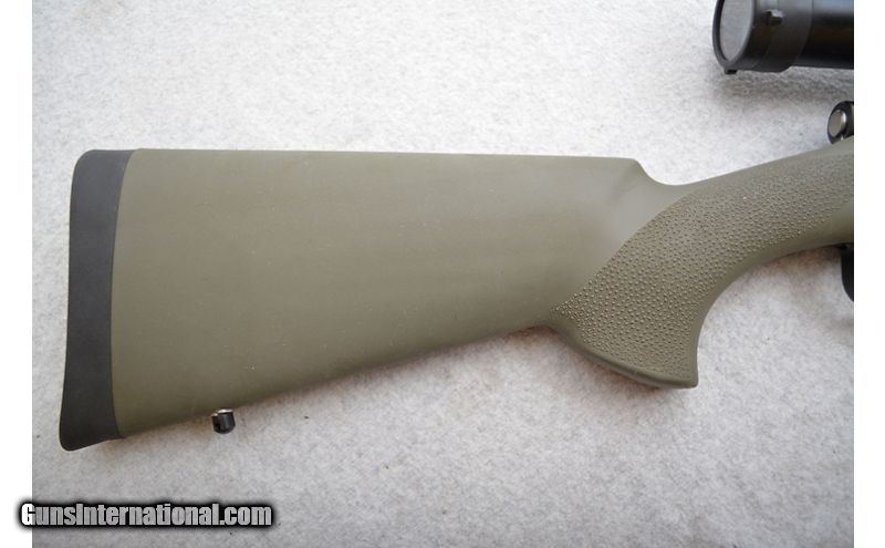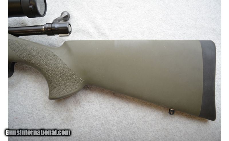 Description: Good shape overall. The worst metal damage is to the floor plate from the bipod grinding against it. The barrel has a few marks as well; the worst in on the underside near the muzzle (see pictures). Stock has a few light marks as well but nothing that can't be explained as normal range use. Comes with the pictured bipod and sling. .308 Winchester SOLD Chambers: Bolt action fed from an internal magazine with a hinged floor plate. Metal Condition: Very good. Wood Condition: Stock is in very good condition. Bore Condition: Excellent. Barrels: 24" Blued heavy profile. Triggers: Blued metal with grooved face. Stock Dimensions: Hogue OverMolded in OD green with 14" LOP. Fore End: Hogue OverMolded in OD green. Butt Pad: Black rubber pad. Weight: 10lbs 8oz Sights: No iron sights. Comes equipped with a Nikko-Sterling 4-16x44mm scope. Chokes: N/A Item Location: Green Bay |