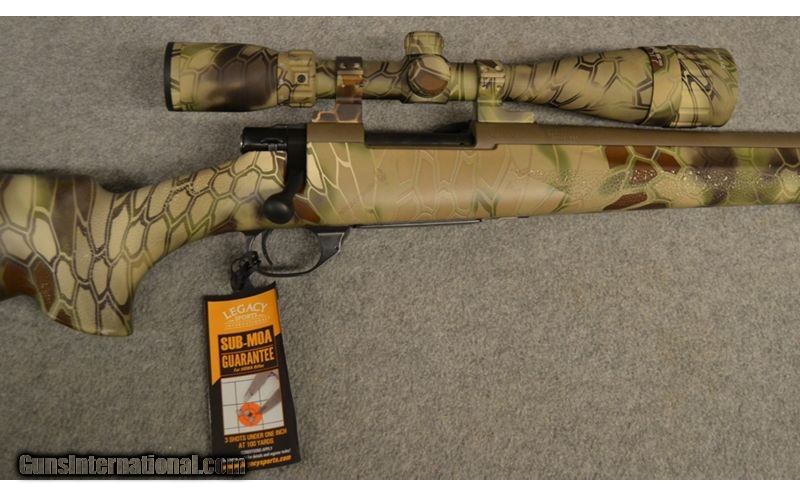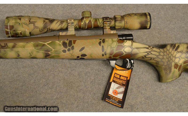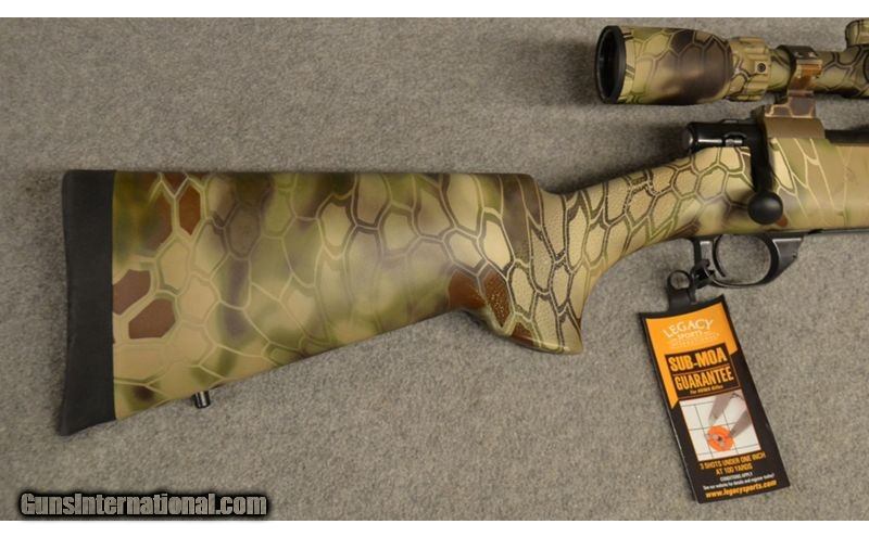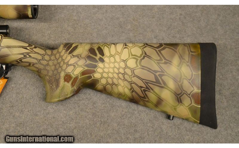 Description: Howa 1500 bolt action rifle in .308 Winchester, has a cerekoted heavy threaded barrel. Houge stock, bases, rings, and scope have been hydro-dipped in Kryptec Highland camo. .308 Winchester SOLD Chambers: .308 Winchester Barrels: 24" Heavy Butt Pad: Rubber butt pad Sights: 4-16×44 Nikko Sterling Gameking Item Location: Greenville, SC |