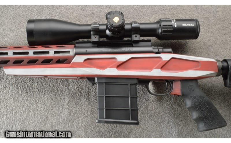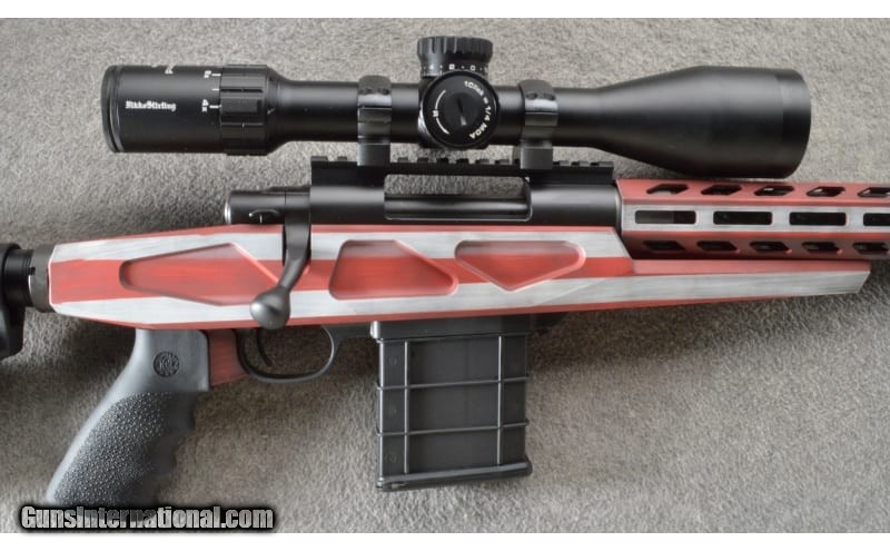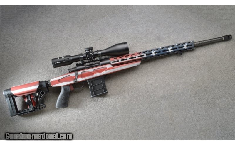 Description: Howa M1500 APC American Flag Chassis Rifle chambered in 6.5 Creedmoor. Some features of this gun are an American Flag Cerakote finish, 24" threaded carbon fiber barrel with 5/8"- 24 threaded brake, LUTH.AR fully adjustable stock that allows adjustment of the length of pull and comb height, Hogue finger groove pistol grip, Nikko Stirling 4-16x50 30 mm Diamond Long Range Scope, M-LOK forend and a Buffalo Style 6"-9" adjustable bipod. Comes with the factory box, paper work, 1 magazine and internal box magazine conversion kit. 6.5 Creedmoor SOLD Chambers: 10+1 bolt action. Metal Condition: New. Bore Condition: New. Barrels: 24" barrel. Triggers: Single. Stock Dimensions: Adjustable. Fore End: Accessory rail. Butt Pad: Hard plastic. Weight: 10.25 lbs Sights: Scope. Item Location: Owatonna, MN |