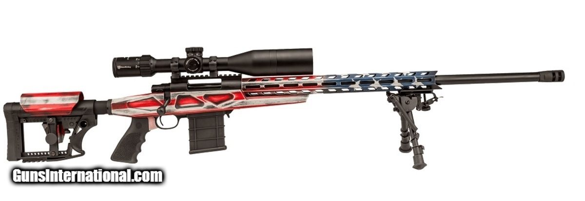 Description: Manufacturer: Legacy Sports International / HOWA Rifles Model: M1500 APC American Flag Rifle SKU: HCRA72507USK Caliber: 6.5 Creedmoor Rate of Twist: 1 in 8" Capacity: 10 Round Detachable Magazine Barrel Length: 24" Heavy Barrel, Threaded Muzzle Threads: 5/8X24 Muzzle Device: Midwest Industries - 2 Chamber Brake Optics: Nikko Stirling Diamond 30mm 4-16x50 Long Range Scope Stock: LUTH-AR MBA-4 Fully Adjustable Stock Finish: Red, White and Blue Flag/Black Overall Length: 43" - 47.25" Includes 6" - 9" Adjustable Bipod Grip: Hogue Finger Groove Pistol Grip All items are factory new in box unless otherwise stated. Based on the information available to us, the above specifications describe this item to the best of our knowledge. For further information, please contact or visit the manufacturer's . SOLD |