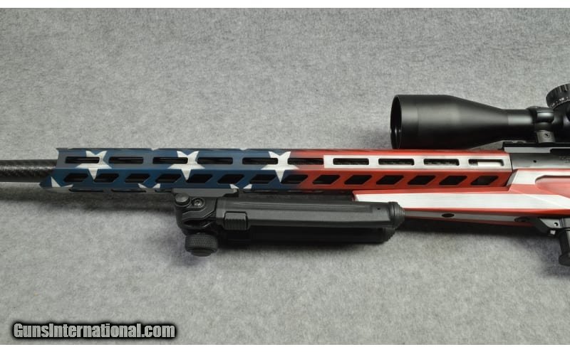 Description: For your consideration, the Howa Model 1500 bolt-action rifle chambered in .308 Winchester. This Howa 1500 comes with the American Flag chassis. The chassis is an aluminum bedding block/bottom metal combination to which attaches a tubular forend and a highly adjustable buttstock. The buttstock is the Luth-AR MBA-4 with adjustable comb and length-of-pull (LOP). .308 Winchester SOLD Metal Condition: Excellent Bore Condition: Excellent Barrels: 24" carbon fiber Weight: 8 lbs Sights: Nikko Sterling Diamond LR 4-16x50mm Item Location: Centerville, OH |
