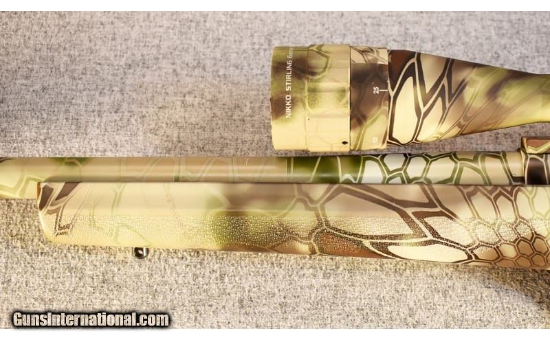 Description: This is a factory direct Howa model 1500 Full Dip GamePro package in .308 Winchester with Kryptek Highlander finish .308 Winchester SOLD Metal Condition: Very good with a few small scratches Wood Condition: Very good with light handling marks Bore Condition: Clean with bright lands Barrels: 24" threaded heavy Stock Dimensions: 14" LOP Fore End: Hogue synthetic with Kryptek Highlander finish Butt Pad: Hogue pad Weight: 9 lbs. 12 oz. Sights: NikkoStirling 4-16x44 AO Game Pro riflescope Item Location: Glendale, AZ |