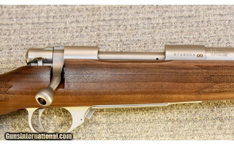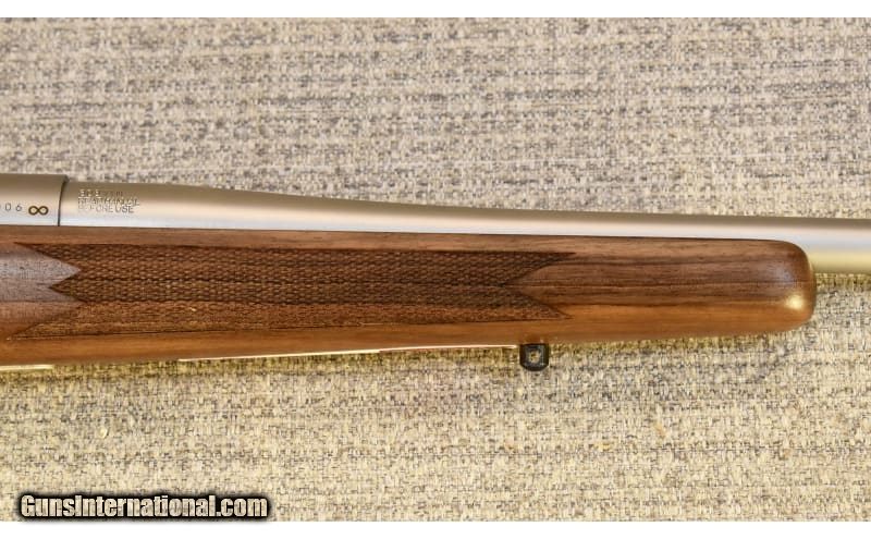 Description: This is a factory second Howa model 1500 Walnut Hunter stainless steel in .308 Winchester .308 Winchester SOLD Metal Condition: Very good with a few small scratches and rub marks Wood Condition: Very good with a few small scratches Bore Condition: Clean with bright lands Barrels: 22" threaded Triggers: Two-stage match Stock Dimensions: 13 1/4" LOP Fore End: Checkered walnut Butt Pad: Factory pad Weight: 6 Lbs. 14 Oz. Sights: Drilled and tapped for scope mounts Item Location: Glendale, AZ |