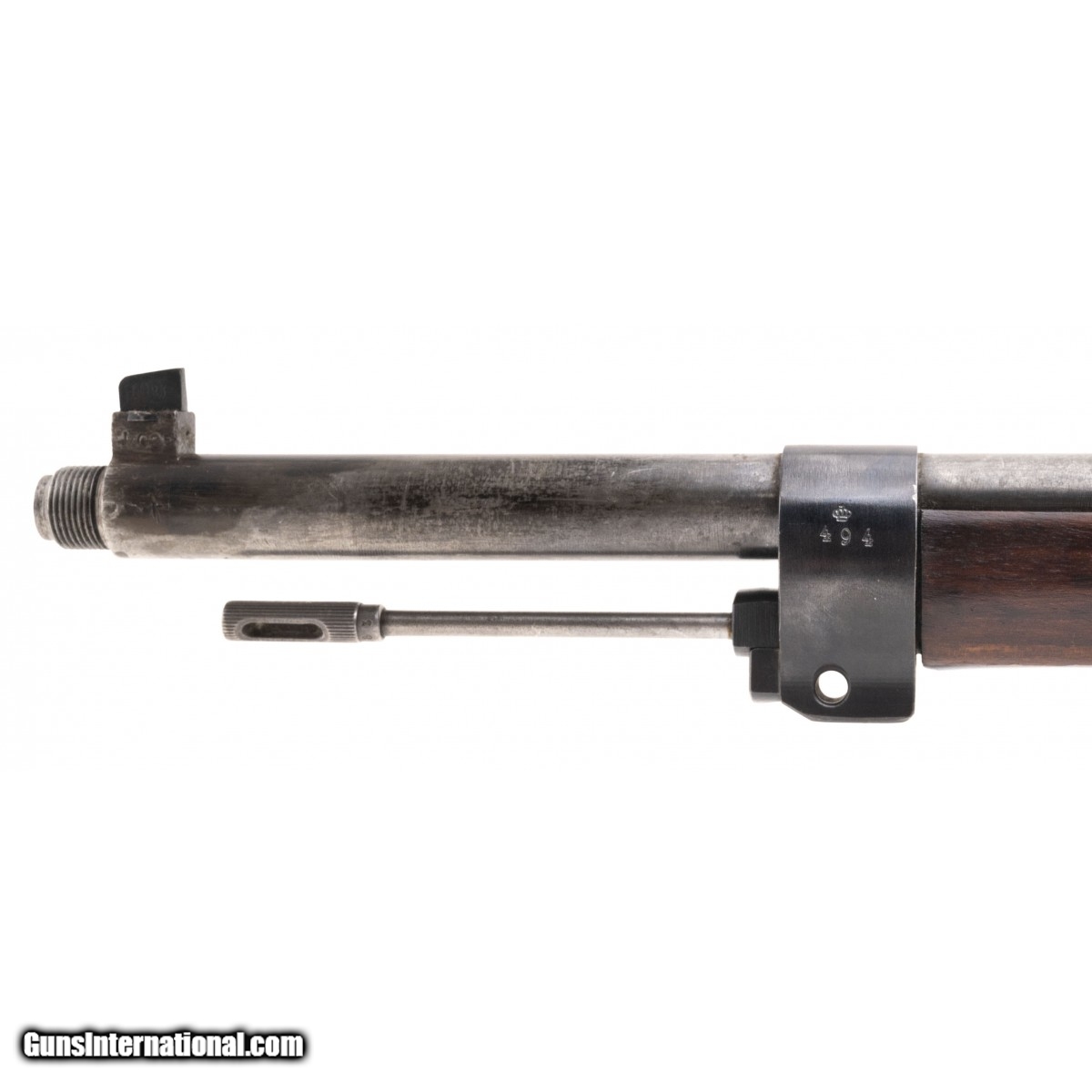 Description: " Swedish military Mauser carbine made in 1941. Bolt is matching. Butt plate and barrel bands are non-matching. Bore is excellent. Barrel has a thinning blue turning to a gray patina. Good overall condition. SOLD Curio/Relic: Yes |