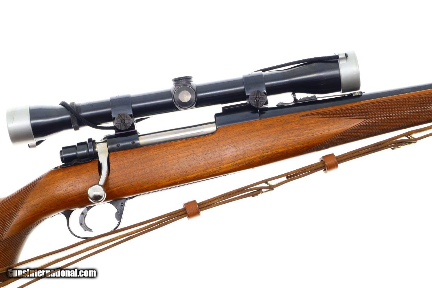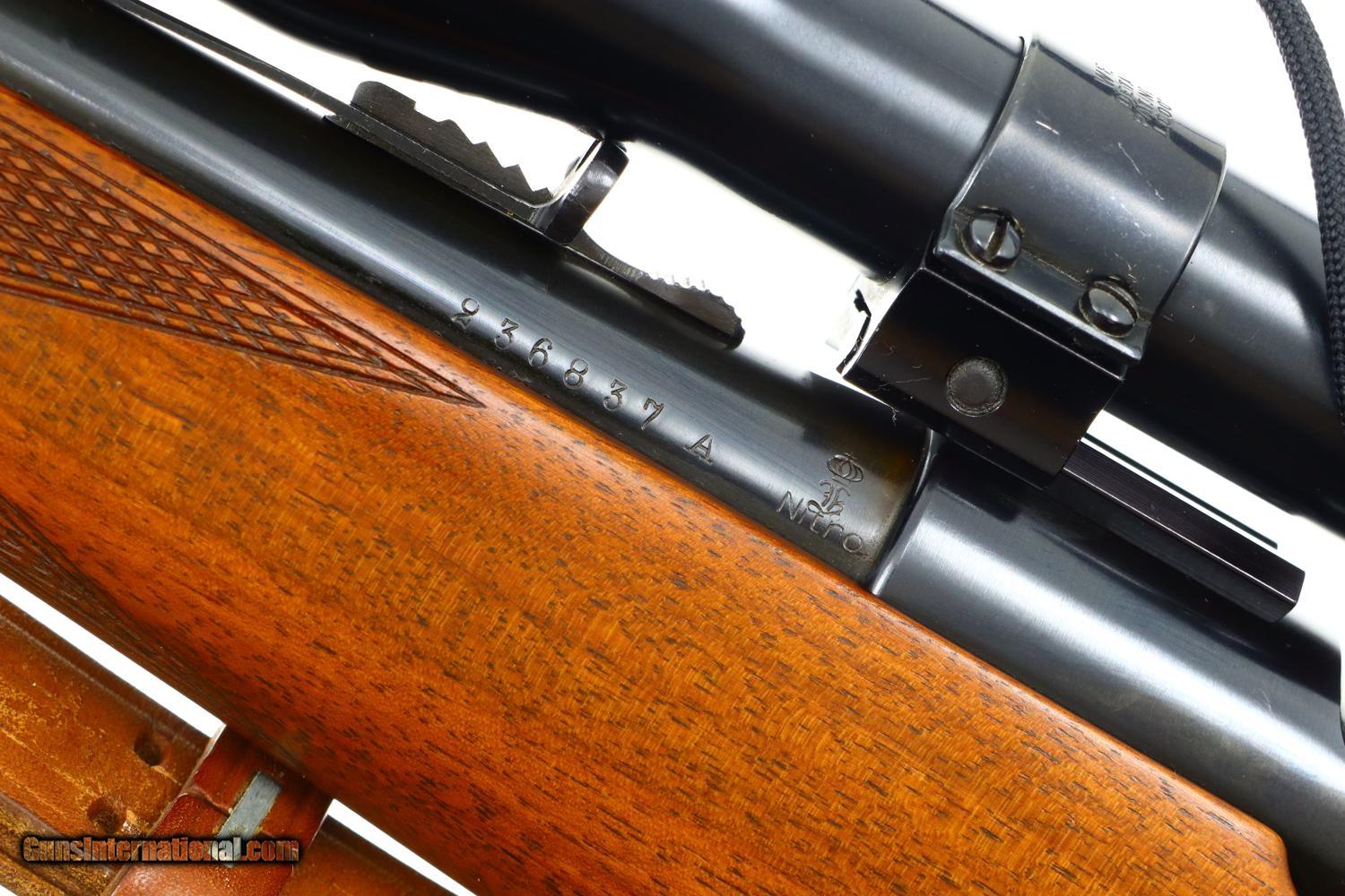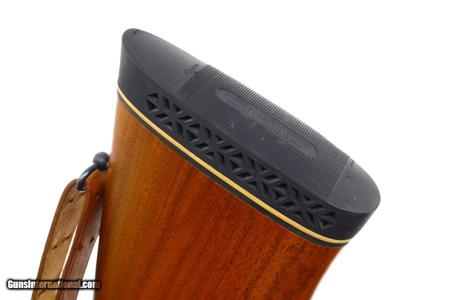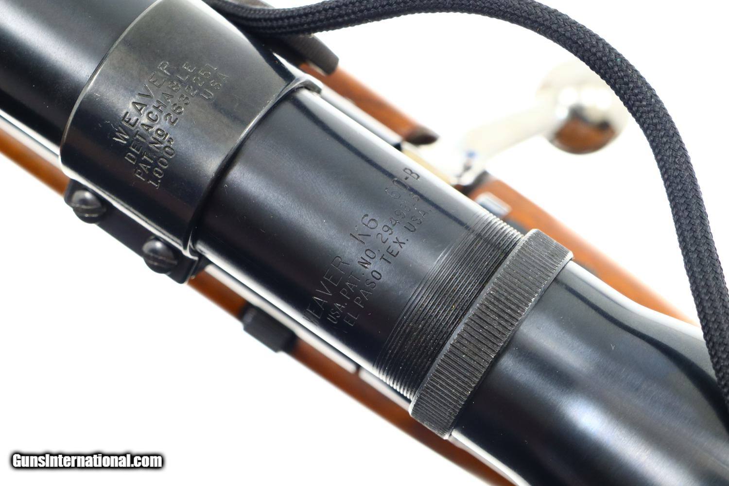 Description: Synopsis: Attractive Mannlicher carbine in .30-06 made by Husqvarna in Sweden! Description: Unusual and attractive Mannlicher style carbine made by Husqvarna, likely 1960s, with a 21.75 in. barrel having a ramped bead front sight with protective hood and buckhorn rear sight. Manufacturer address and caliber marked on top of barrel with the SN and proofing on left side near unmarked receiver. Usual turned down bolt and sliding safety. Alloy trigger guard with military style release, the trigger comfortably widened by added shoe. Added White Line recoil pad. Complete with a mounted Weaver K6 power scope and military style sling. Condition: EXC+ with added trigger shoe and recoil pad. Comparable condition scope with bright, crisp optics. EXC sling with a few aging cracks. Mirror bore. Perfect manual mechanics. A great looking little Mannlicher carbine chambered for the classic .30-06 cartridge made by Husqvarna in Sweden. ~~Insured shipping fee of $75; most packages shipped using FedEx 2nd Day.~~ SOLD Manufacturer: Husqvarna Serial Number: 236837A Caliber Info: 30-06 US |
