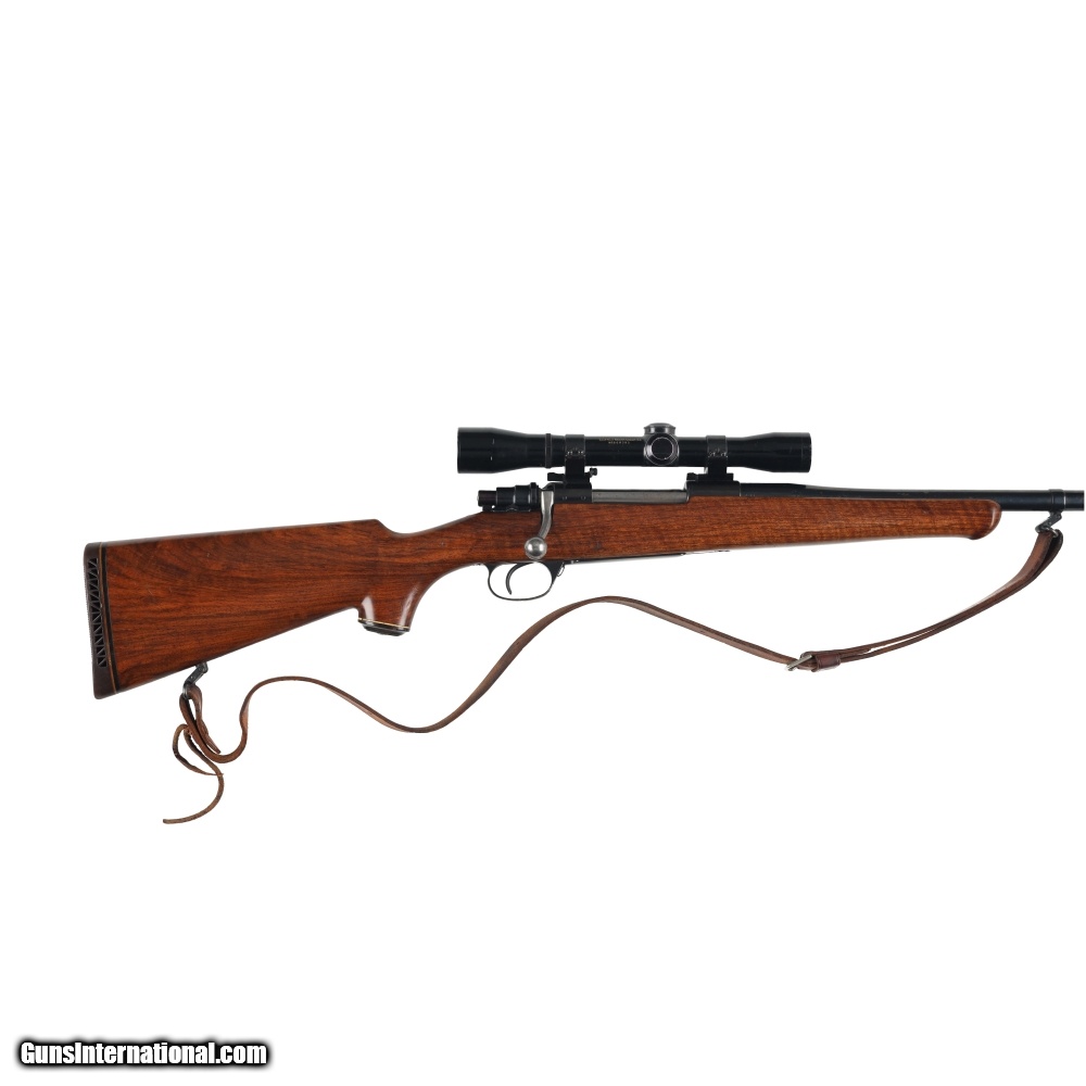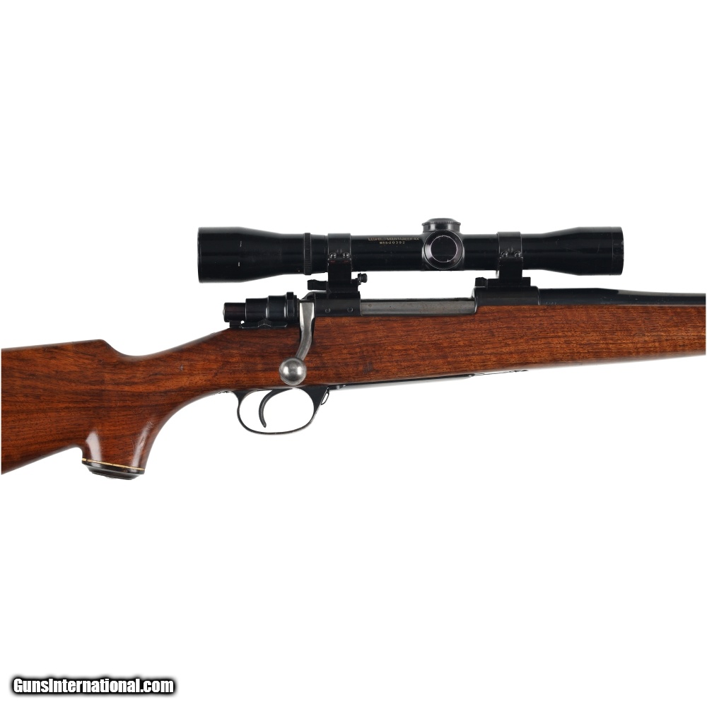 Description: This Husqvarna Model 1640 is stocked in a beautiful, lightly figured piece of wood, with a non checkered schnabel forend and pistol grip. The overall condition of the stock is very good, with light wear overall and a few distinct bruises near the sling swivel. The stock is equipped with a Pachmayr recoil pad and a horn grip cap that shows similar wear to the rest of the stock. The action functions flawlessly and has good metal condition overall, with the wear becoming more pronounced as you get closer to the muzzle. Despite the finish wear near the muzzle, the bore is quite nice with rifling that is both sharp and deep with no sign of corrosion. Finally the scope, is a Leupold Mountaineer 4X with a standard crosshair reticle. Manufactured in: Sweden Hand: Right Hand Action Finish: Blue Action Description: Mauser Metal Finish: Original Barrel Length: 23 Inches Barrel Condition: Good Stock Finish: Original Stock Condition: Very Good Type of Butt: Pachmayr Vent Pad Pad Thickness: 3/4" Grip: Pistol Forend: Schnabel Extra Barrels: No. SOLD Manufacturer: Husqvarna Model: Model 1640 Caliber Info: 30-06 Condition: Preowned Metal Condition: Good Action: Bolt Action Triggers: Single Fore End: Schnabel Butt Pad: 3/4 LOP: 13 1/2 Finish: Original Weight: 8.6 lbs Extras: No. Case: NONE |