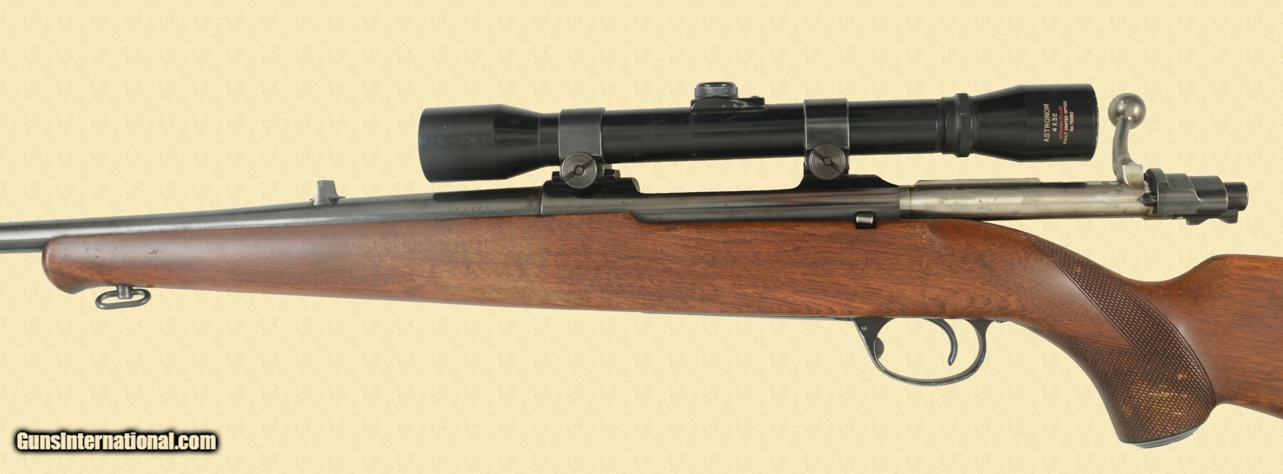 Description: 270Win, 92% blue, very good bore, good stock, 24'' barrel , 24 inch barrel. Missing front sight. Fixed rear sight. Receiver drilled aned tapped for scope bases. Astronom 4x32 Scope mounted in Weaver rings on weaver bases. Walnut stock with Schnabel forearm with checkered pistol grip with grip cap. Stock has a small chip missing at the toe. Sling swivels. Floorplate has minor scratches. -Imported- Please call (309)342-5800 Tues-Fri, 10 am -6pm (CST), or Sat 1pm-6pm (CST), to speak with our sales team for further information, or to purchase firearms. FEDERAL FIREARMS LICENSE (FFL): is required on all shipments of modern guns. We must wait for a copy from your dealer before we can ship to them. We will also ship C&R eligible firearms to Curio and Relic (C&R) license holders. We accept your signed, legible FFL and C&R licenses via fax at 309/ 342-5730 (always on), email at FFLsimpsonltd or through the mail at Simpson Ltd; 140 S Seminary St; Galesburg, IL 61401. Pre-1898 firearms and non-firearms items are exempt from licensing requirements. All items shipped to an Illinois address will be charged 8.75% sales tax. NOTE: Because of recent shipping restrictions and charges placed on us by UPS and FedEx (handguns must ship via next day or 2nd day air and they have added a $10 surcharge for parcels over 48”. Our return policy lasts a maximum of 3 days from the time you receive your item. If 3 days have passed since you received your purchase, and we have not been contacted by you, unfortunately, we can’t offer you a refund or exchange. If you are not happy with your purchase, please contact us by phone and/or email to arrange for a return. Items must be shipped back to us to arrive with 7 days of notification of return. SOLD |