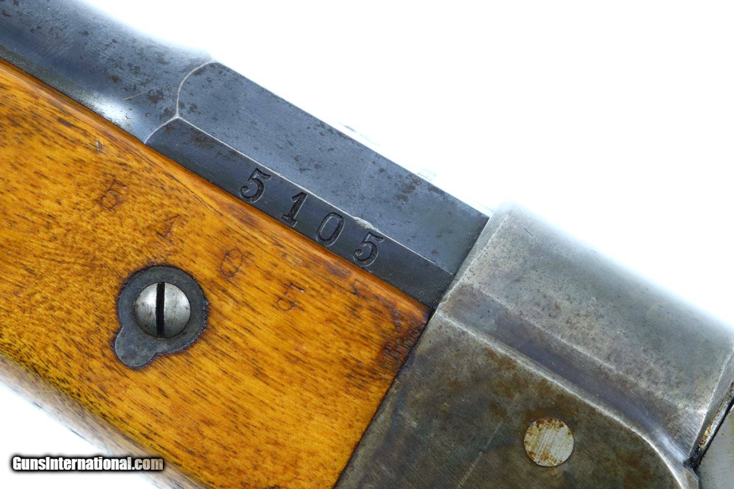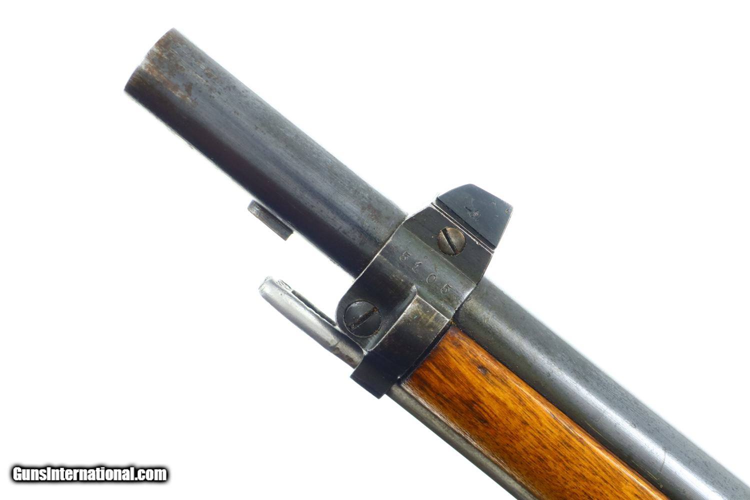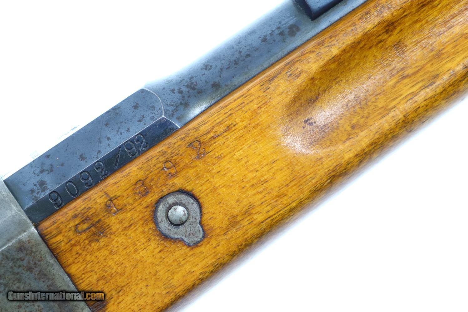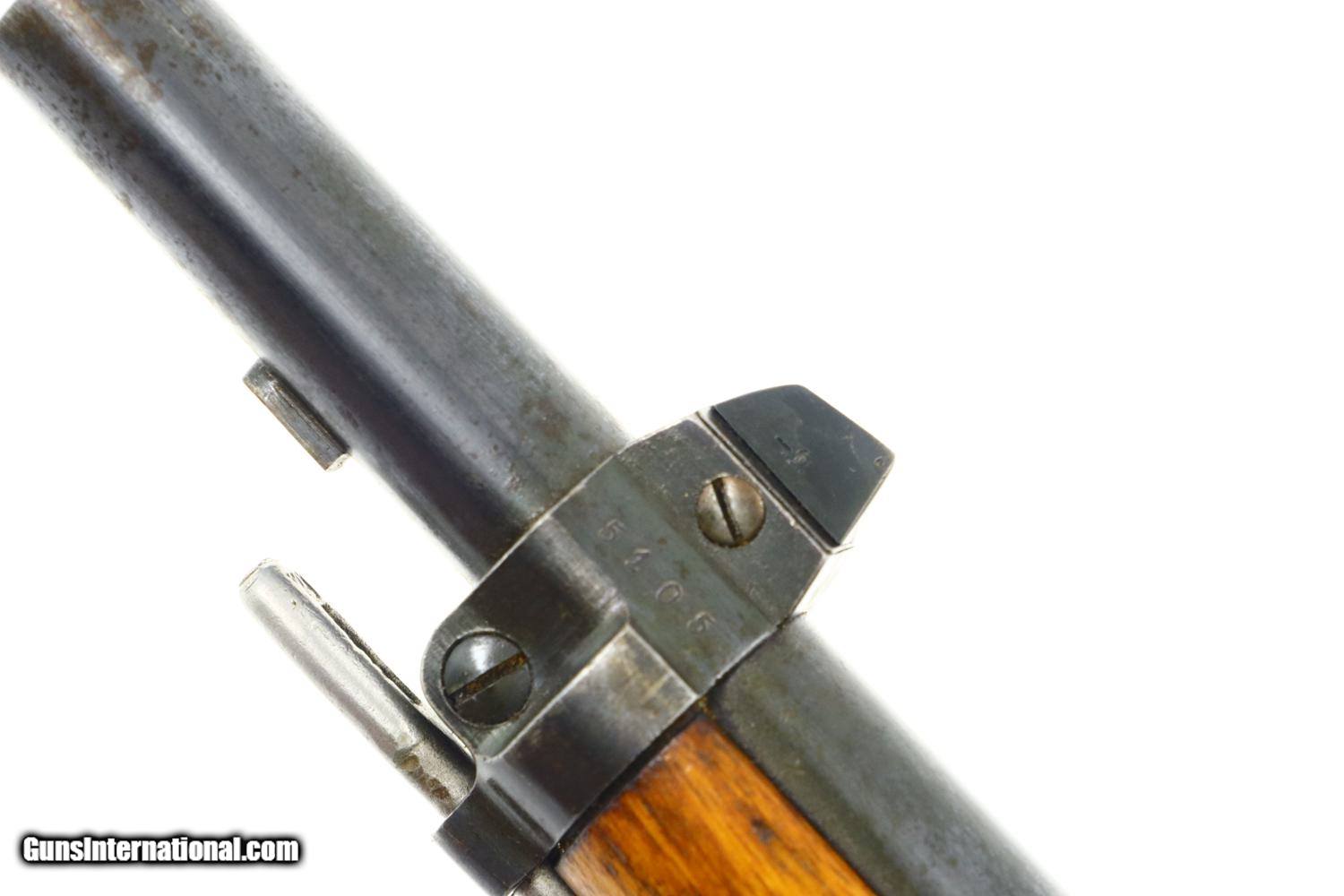 Description: Synopsis: Exc Husqvarna, Model 1876, Swedish ANTIQUE Rifle, All Matching, High Original Condition, 5105, O-106 Description: Standard configuration Husqvarna Model 1876, caliber 8x58r, SN: 5105 marked on all major and minor components in addition to the butt stock and forend. Color case hardened receiver with blued barrel and sight. Hammer and loading gate in-the-white. Brass disc denoted 16R/4K/No 1099. Cleaning rod present. Missing sling swivel on butt. Condition: Exc original condition with receiver and barrel retaining most of their case colors and blue, fading and staining in expected areas. Very bright bore with sharp rifling. Perfect manual mechanics. A very attractive, no problem Husqvarna Model 1876, except for the missing swivel on butt, seldom offered in this condition. ANTIQUE! ~~Insured shipping fee of $75; most packages shipped using FedEx 2nd Day.~~ SOLD Manufacturer: Husqvarna Serial Number: 5105 Caliber Info: 8x58R |