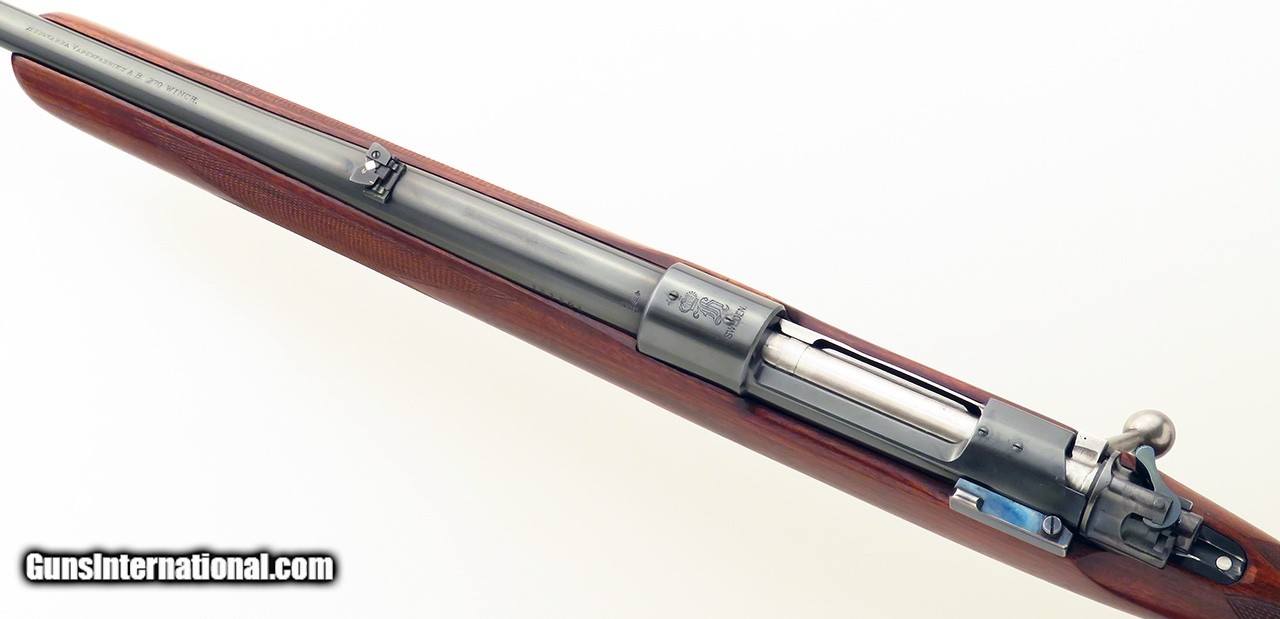 Description: Husqvarna .270 Winchester. Based on an FN Model 98 action with full-length claw extractor, serial 131201 features a 24-inch light sporter barrel (.585-inch muzzle diameter, hooded front sight with matted ramp and brass-beaded blade, adjustable folding rear sight), drilled/tapped receiver, Wisner two-position safety, Timney trigger and a checkered walnut stock (sling swivel studs, added Pachmayr Decelerator recoil pad. DIMENSIONS: Weight is 7.4 pounds and the length-of-pull is 13.75 inches. CONDITION: The bore is strong and bright. Metal and stock finishes are each at least 85 percent. Trigger pull is sharp and mechanics solid. The price is firm. $1,000 plus shipping. SOLD Rifle Caliber: .270 Winchester |