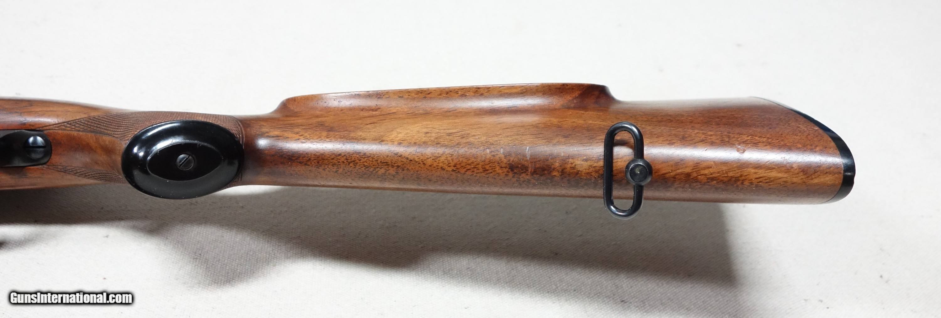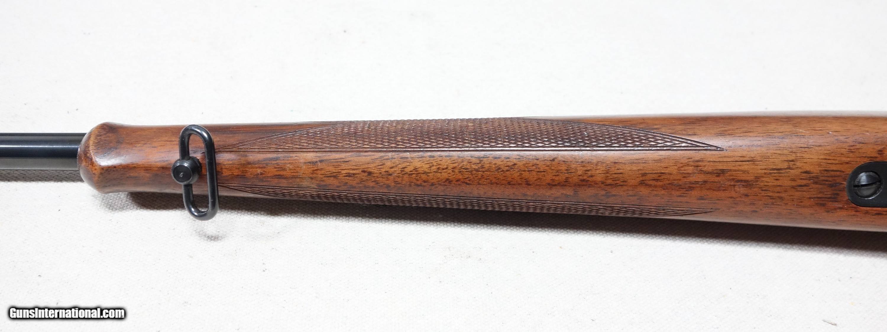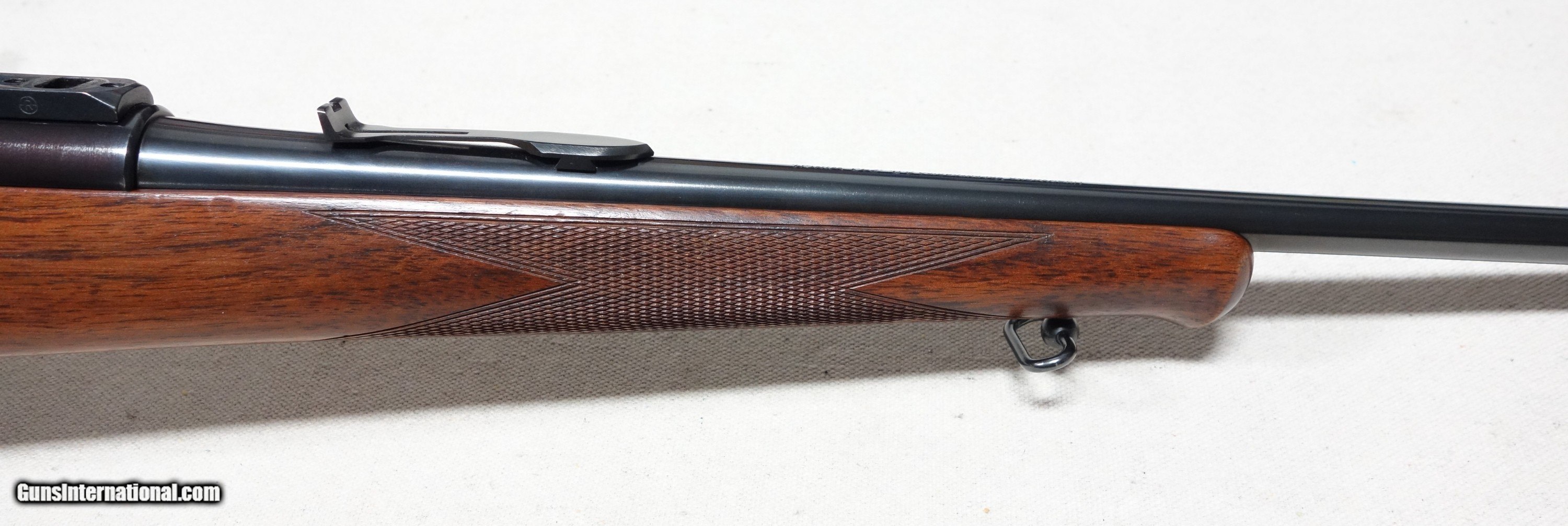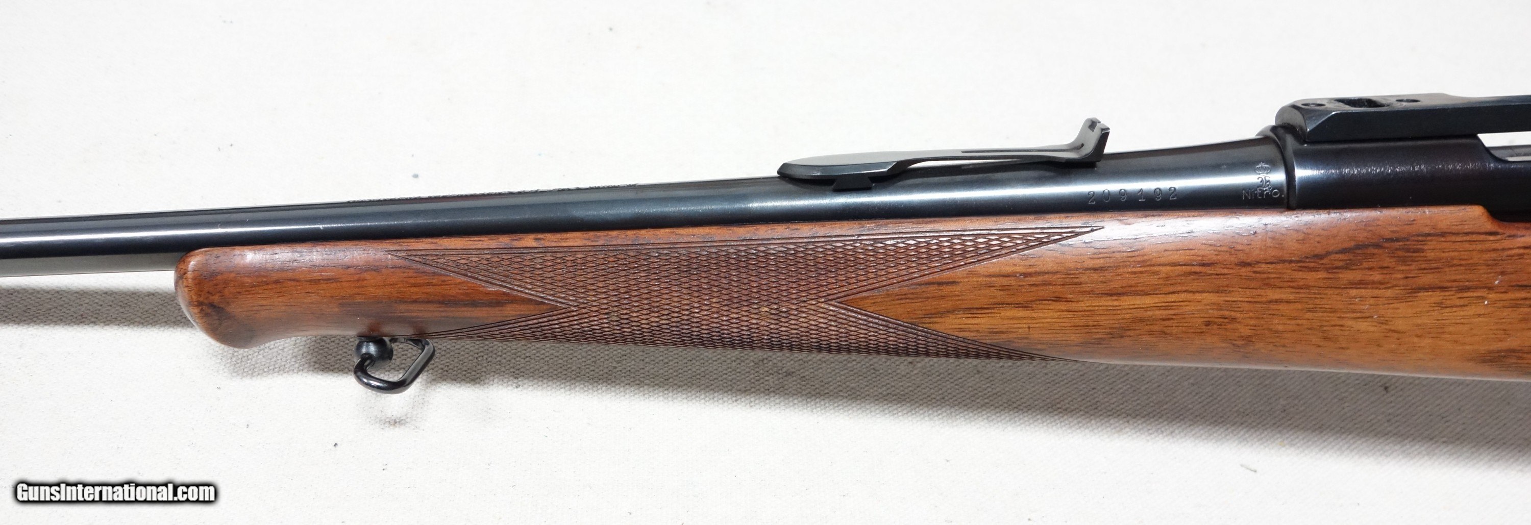 Description: Very scarce Husqvarna Model 4100 lightweight rifle in .243 Winchester caliber. S/N 209192 with matching # bolt. 21” slim contour barrel. The bore is excellent. Mechanical functions are all excellent. Beautiful condition showing 98% Blue and Varnish with no notable marks. One of my all time favorites, this particular era of Swedish made Husqvarna rifles are among the most perfectly balanced and greatest shouldering sporting rifles ever produced, and have certain characteristics that reign supreme over all others of this make that may look similar but are not. These are very high quality, combining master craftsmanship with a well proven HVA Mauser type action with robust claw extractor, have better wood with graceful stock lines that feature a schnabel fore-end tip and pancake style cheekpiece, high quality cut checkering (including the forearm panels), and better quality sights. Original sights are included, with the rear sight elevator having been replaced. Good examples of these rifles are very hard to find, especially in .243, and they simply can not be beat for the money. Please add $75 for expedited and fully insured shipping from Alaska. SAFETY NOTICE: Buyer is solely responsible for determining that a used gun is safe to shoot. The firearms offered by Frontier Guns have not been test fired but have been given a visual inspection only for the purpose of sale. It is a requirement that every used firearm be inspected by a qualified gunsmith before loading or firing. By purchasing, the buyer agrees to hold seller harmless against damages, injury, or death caused by defective merchandise or improper use. SOLD Curio/Relic: Yes |