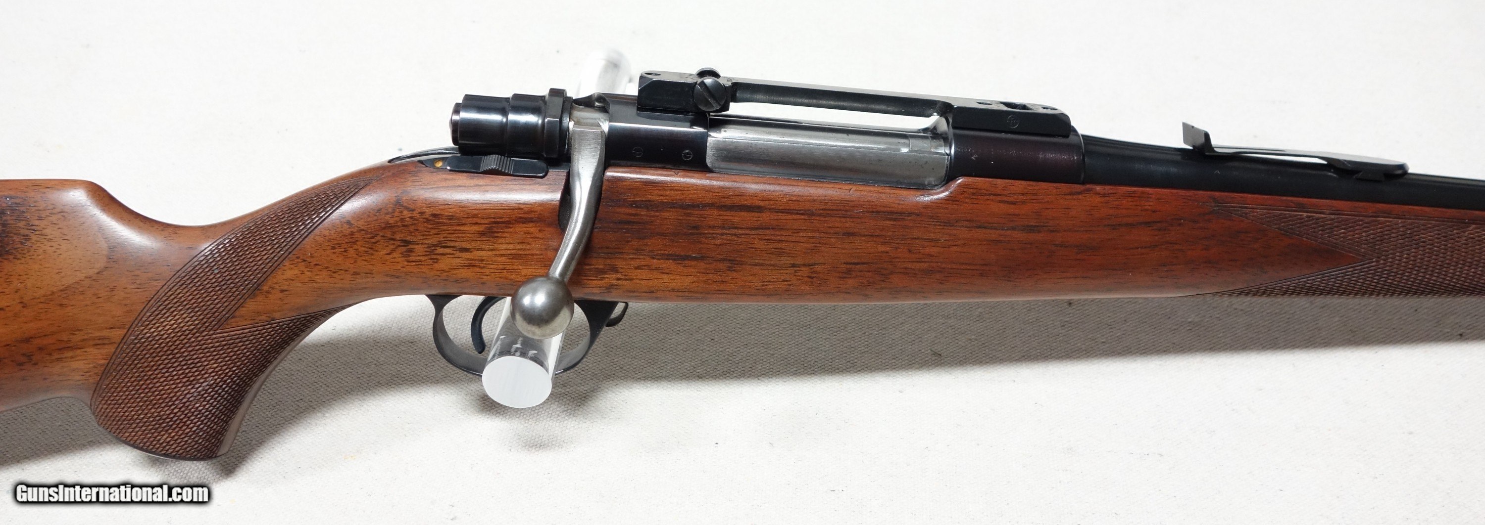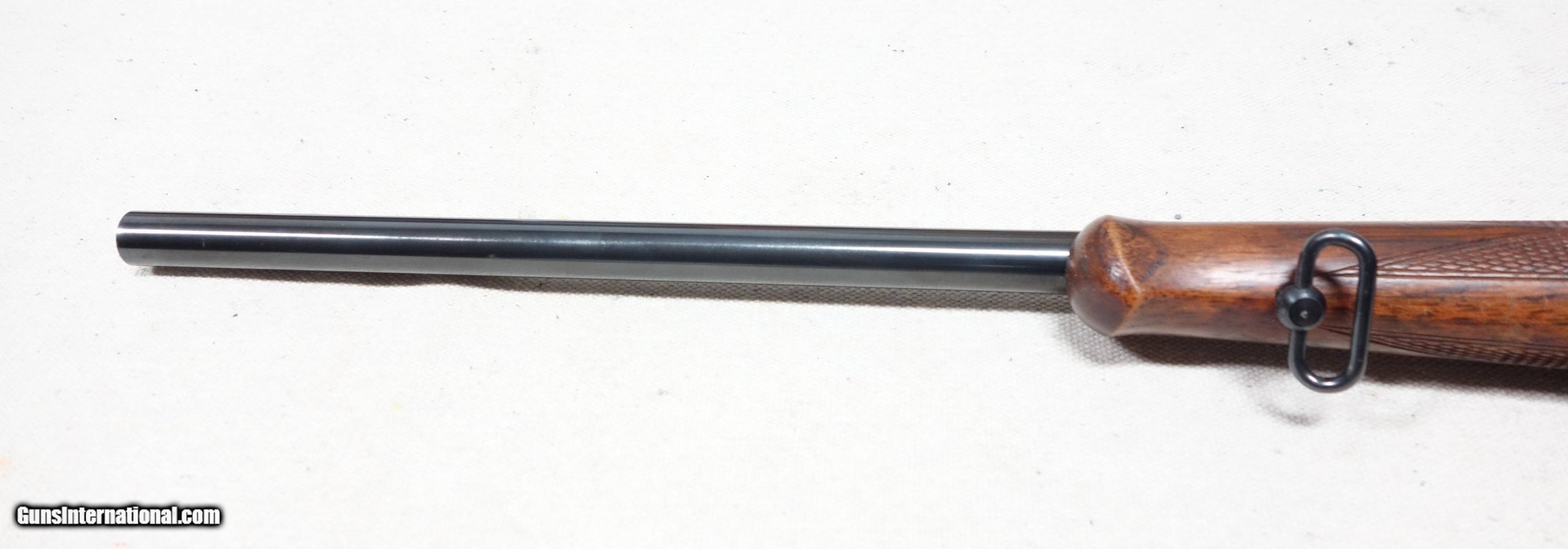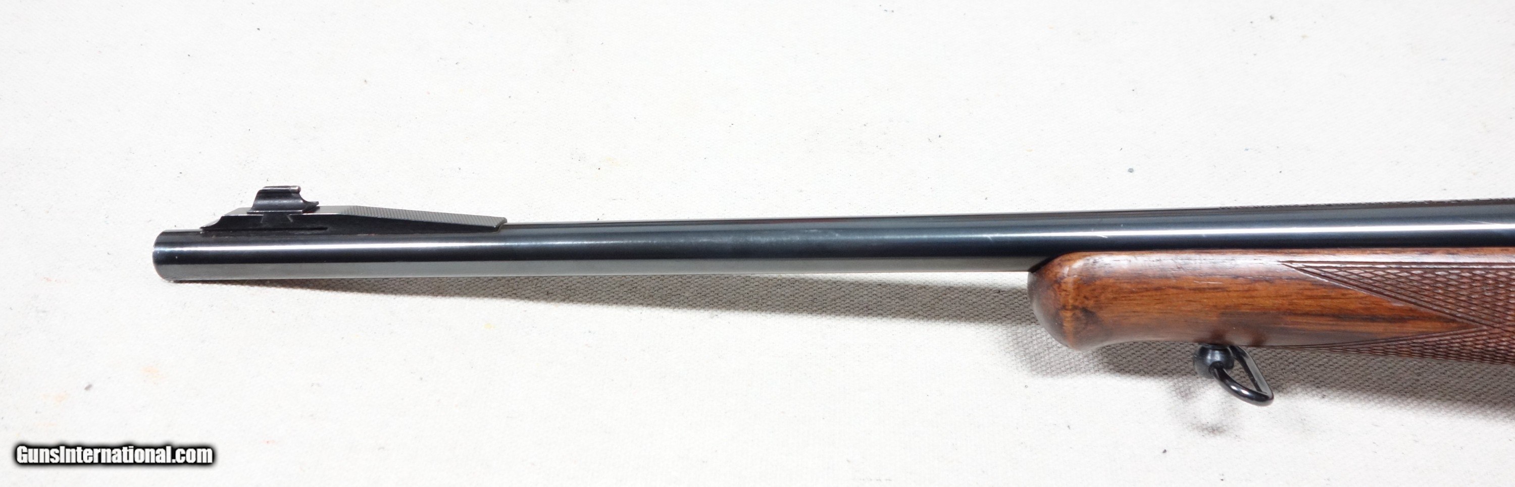 Description: Very scarce Husqvarna Model 4100 lightweight rifle in .243 Winchester caliber. S/N 209192 with matching # bolt. 21” slim contour barrel. The bore is excellent. Mechanical functions are all excellent. Beautiful condition showing 98% Blue and Varnish with no notable marks. One of my all time favorites, this particular era of Swedish made Husqvarna rifles are among the most perfectly balanced and greatest shouldering sporting rifles ever produced, and have certain characteristics that reign supreme over all others of this make that may look similar but are not. These are very high quality, combining master craftsmanship with a well proven HVA Mauser type action with robust claw extractor, have better wood with graceful stock lines that feature a schnabel fore-end tip and pancake style cheekpiece, high quality cut checkering (including the forearm panels), and better quality sights. Original sights are included, with the rear sight elevator having been replaced. Good examples of these rifles are very hard to find, especially in .243, and they simply can not be beat for the money. Please add $75 for expedited and fully insured shipping from Alaska. SAFETY NOTICE: Buyer is solely responsible for determining that a used gun is safe to shoot. The firearms offered by Frontier Guns have not been test fired but have been given a visual inspection only for the purpose of sale. It is a requirement that every used firearm be inspected by a qualified gunsmith before loading or firing. By purchasing, the buyer agrees to hold seller harmless against damages, injury, or death caused by defective merchandise or improper use. SOLD Curio/Relic: Yes |