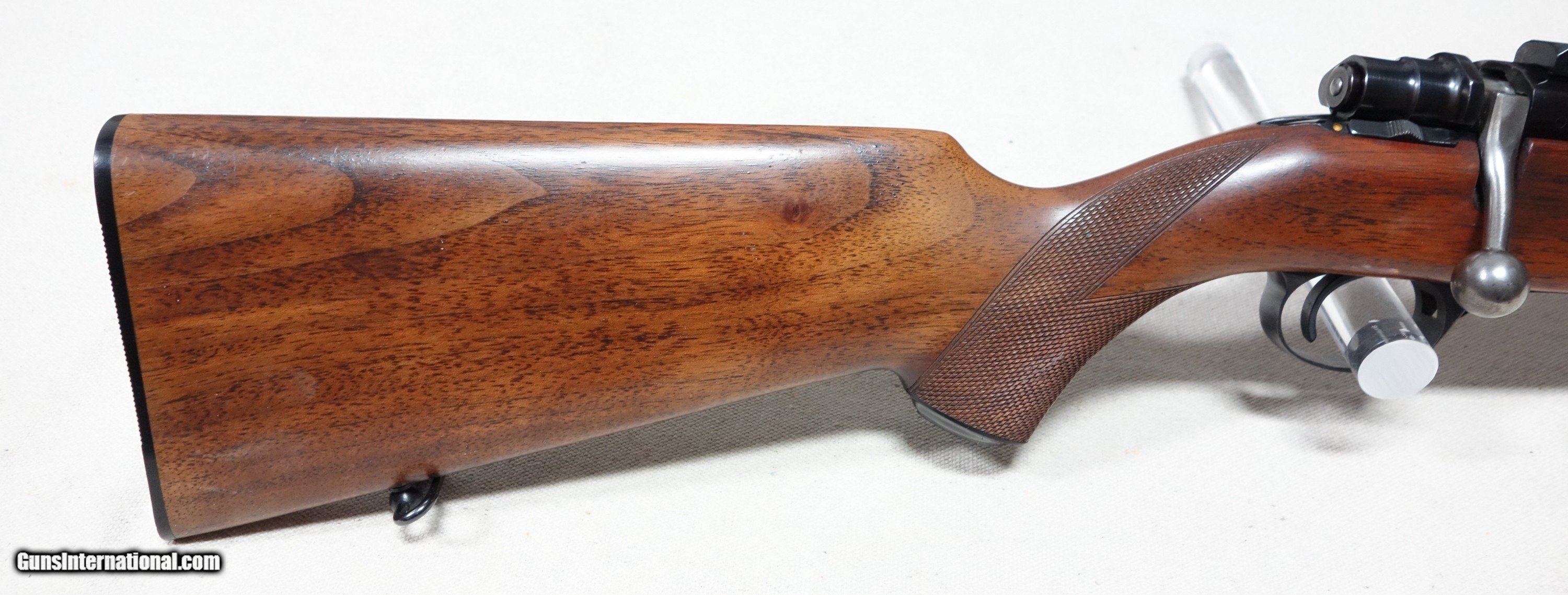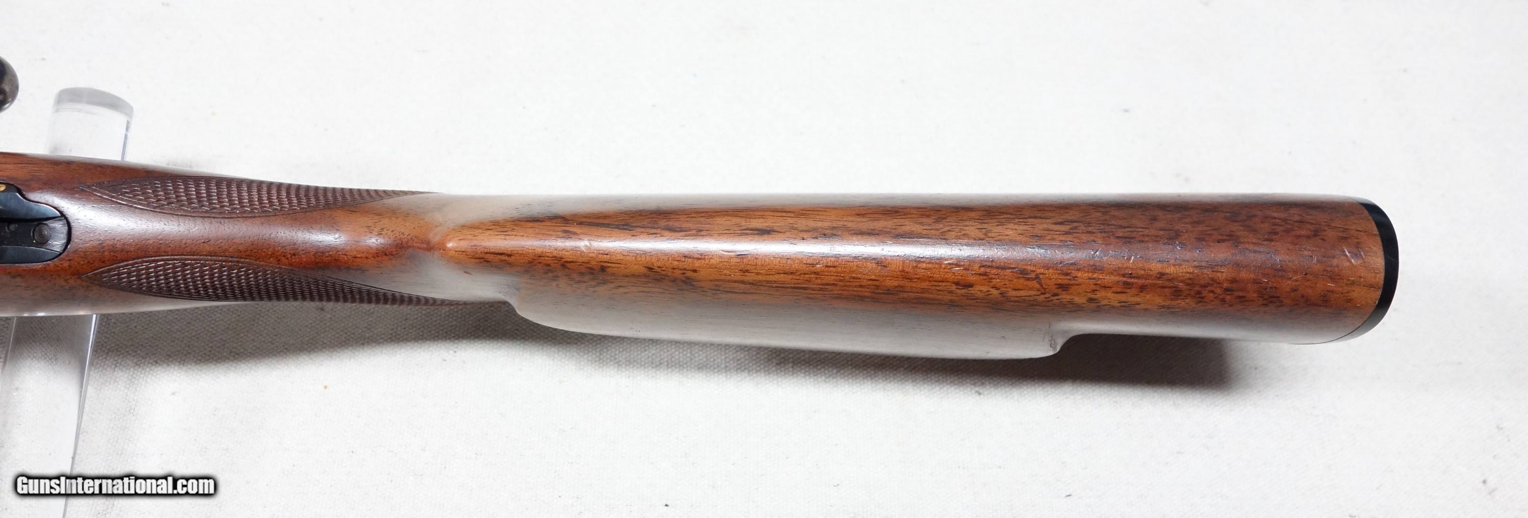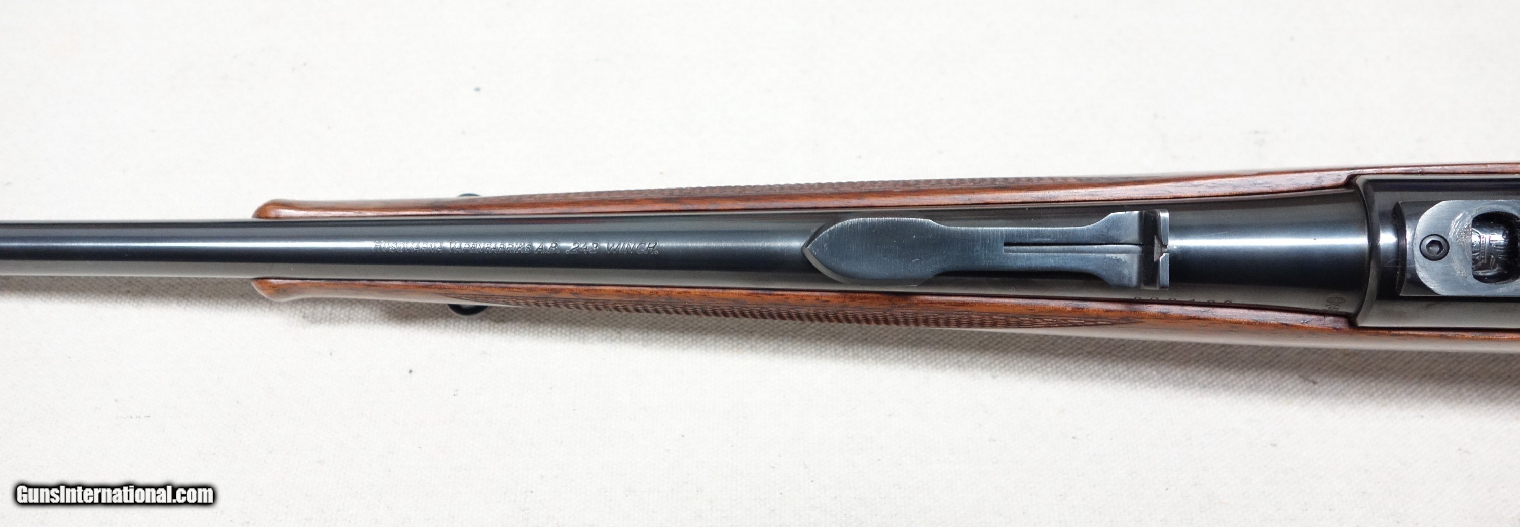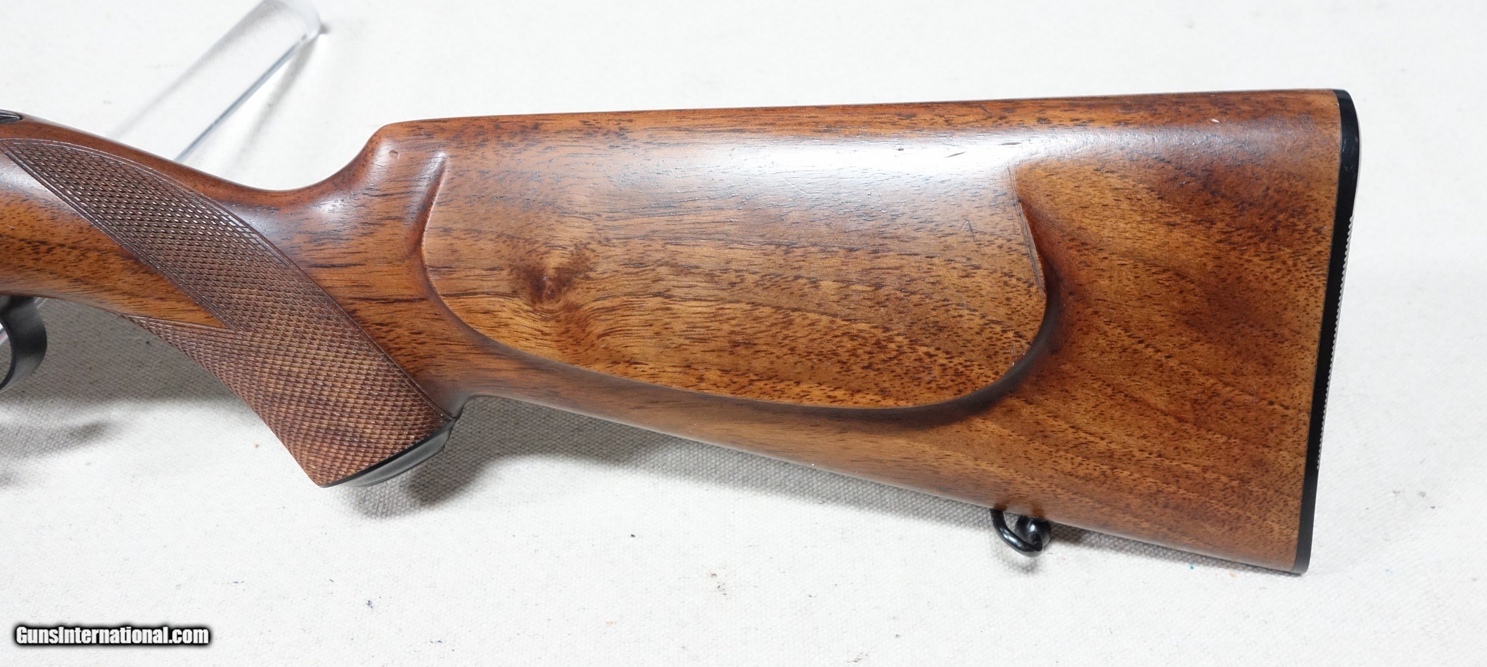 Description: Very scarce Husqvarna Model 4100 lightweight rifle in .243 Winchester caliber. S/N 209192 with matching # bolt. 21” slim contour barrel. The bore is excellent. Mechanical functions are all excellent. Beautiful condition showing 98% Blue and Varnish with no notable marks. One of my all time favorites, this particular era of Swedish made Husqvarna rifles are among the most perfectly balanced and greatest shouldering sporting rifles ever produced, and have certain characteristics that reign supreme over all others of this make that may look similar but are not. These are very high quality, combining master craftsmanship with a well proven HVA Mauser type action with robust claw extractor, have better wood with graceful stock lines that feature a schnabel fore-end tip and pancake style cheekpiece, high quality cut checkering (including the forearm panels), and better quality sights. Original sights are included, with the rear sight elevator having been replaced. Good examples of these rifles are very hard to find, especially in .243, and they simply can not be beat for the money. Please add $75 for expedited and fully insured shipping from Alaska. SAFETY NOTICE: Buyer is solely responsible for determining that a used gun is safe to shoot. The firearms offered by Frontier Guns have not been test fired but have been given a visual inspection only for the purpose of sale. It is a requirement that every used firearm be inspected by a qualified gunsmith before loading or firing. By purchasing, the buyer agrees to hold seller harmless against damages, injury, or death caused by defective merchandise or improper use. SOLD Curio/Relic: Yes |