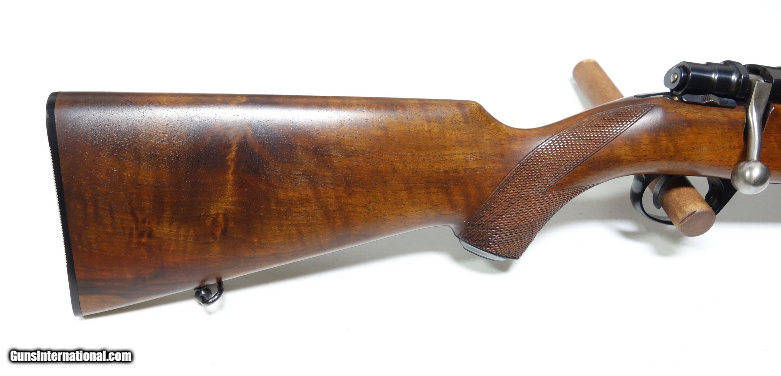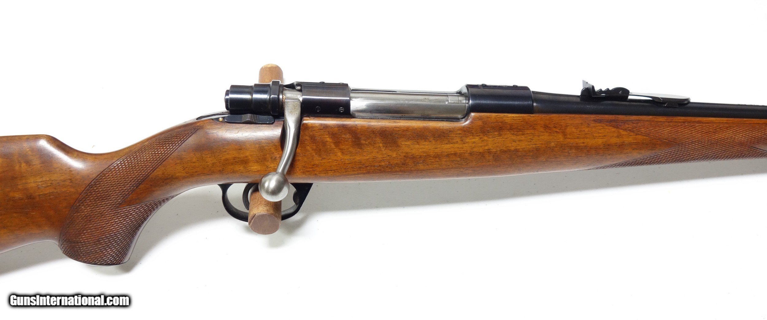 Description: A beautiful example of the superb Husqvarna 4100 lightweight rifle in seldom seen 308 Caliber. S/N 236***A with matching # bolt. 20.5" slim contour barrel with excellent bore. Mechanical function is excellent. 98% Blue 97% Varnish with some scattered light dents. One of my all time favorite rifles, these Husqvarnas 4100s are among the few most perfectly balanced and greatest shouldering sporting arms ever produced. A time proven Mauser HVA action with its robust claw extractor combined with fantastic stock lines including a schnable fore-end tip and pancake style cheekpiece make these impossible to beat for the money. Master craftsmanship and supreme quality all at a very affordable price! SOLD Curio/Relic: Yes |