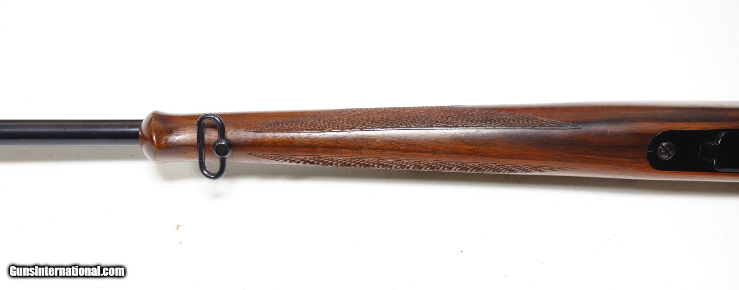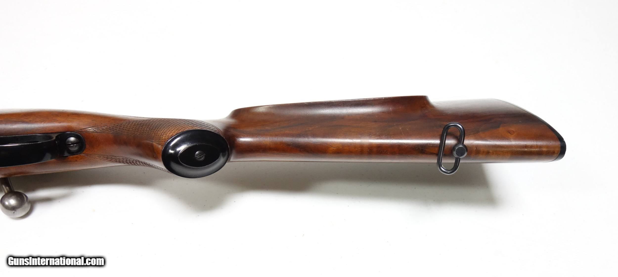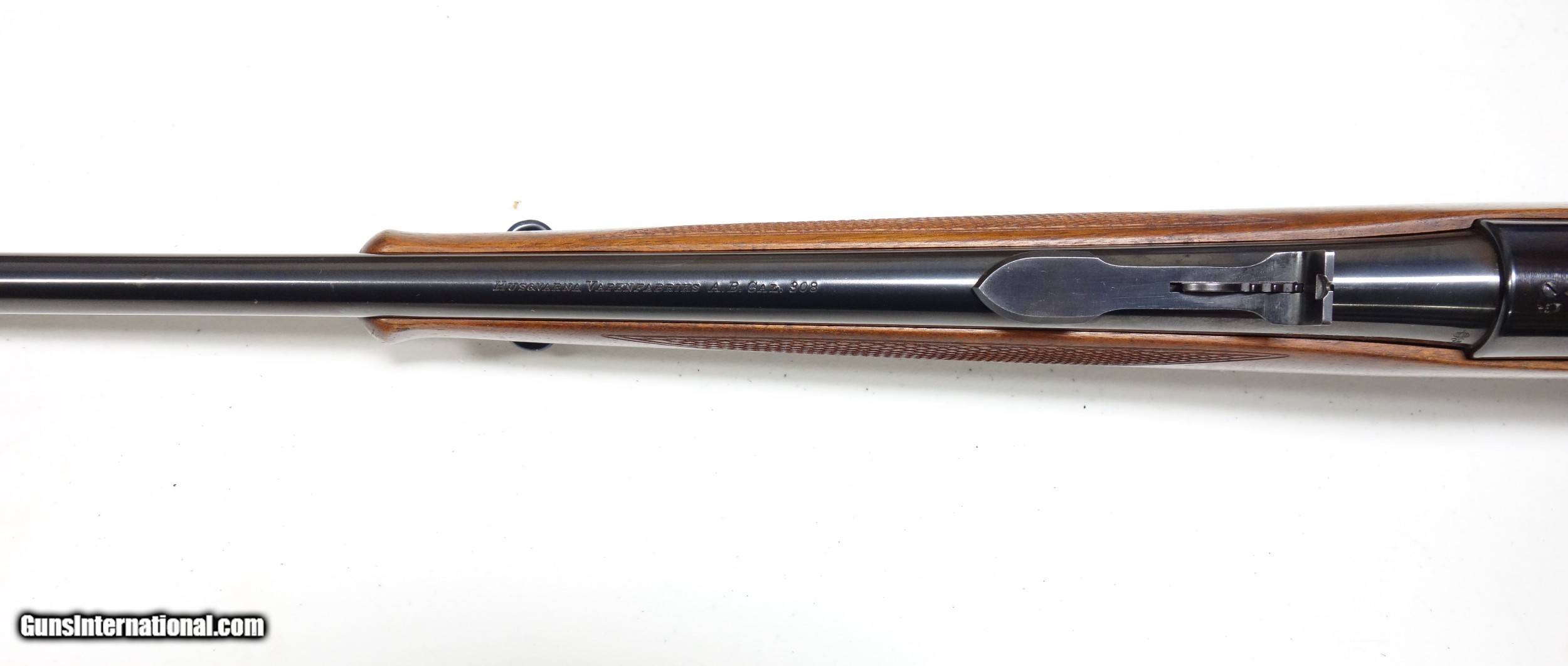 Description: A beautiful example of the superb Husqvarna 4100 lightweight rifle in seldom seen 308 Caliber. S/N 236***A with matching # bolt. 20.5" slim contour barrel with excellent bore. Mechanical function is excellent. 98% Blue 97% Varnish on the very nicely figured wood with some scattered light dents. Factory drilled for scope mounts. One of my all time favorite rifles, these Husqvarnas 4100s are among the most perfectly balanced and greatest shouldering sporting arms ever produced. A time proven Mauser HVA action with its robust claw extractor combined with fantastic stock lines including a schnable fore-end tip and pancake style cheekpiece make these impossible to beat for the money. Master craftsmanship and outstanding quality all at a very affordable price! SOLD |