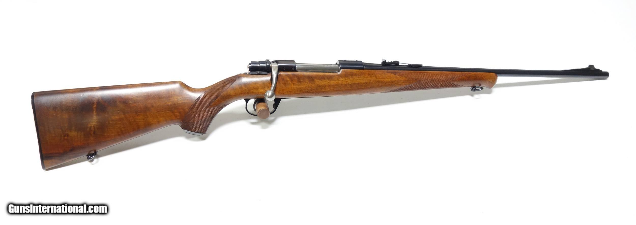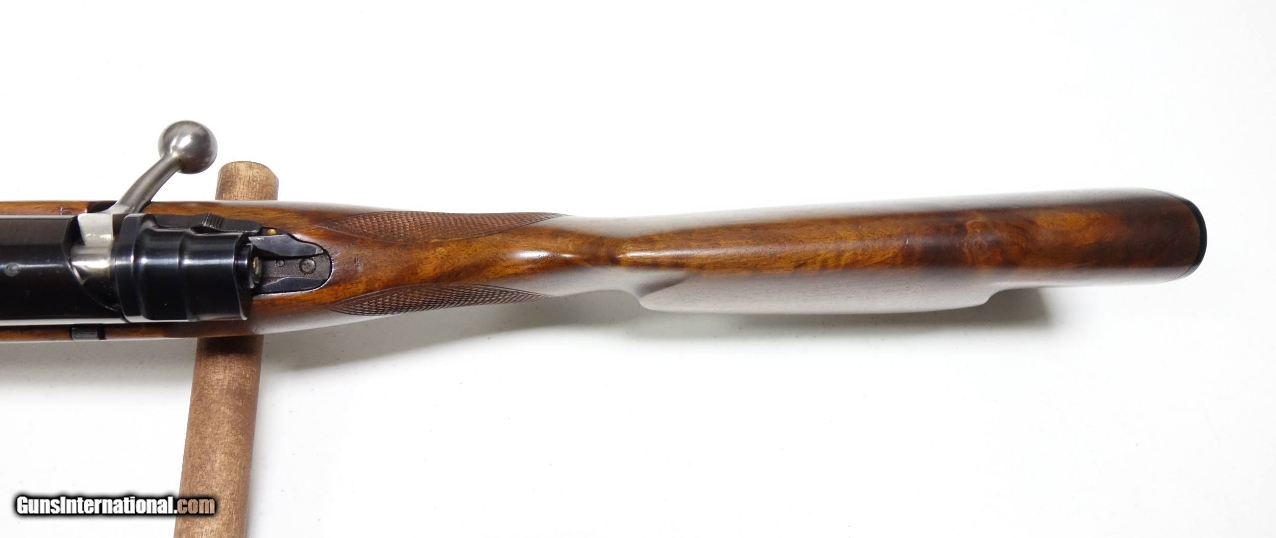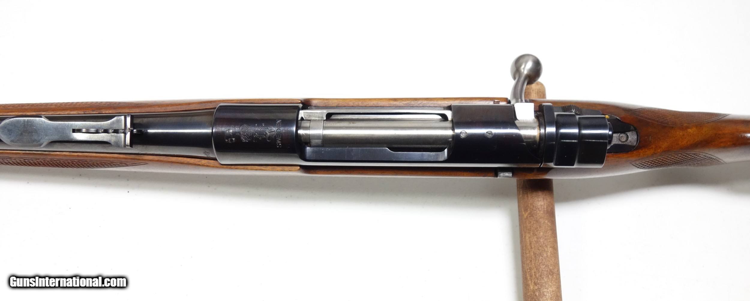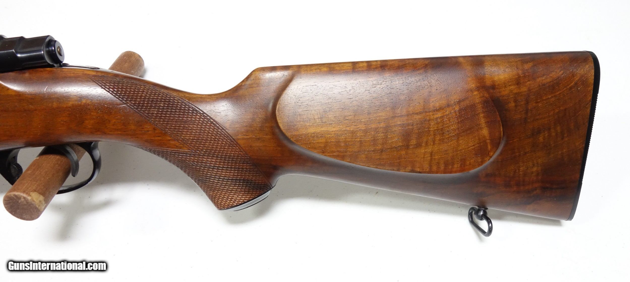 Description: A beautiful example of the superb Husqvarna 4100 lightweight rifle in seldom seen 308 Caliber. S/N 236***A with matching # bolt. 20.5" slim contour barrel with excellent bore. Mechanical function is excellent. 98% Blue 97% Varnish on the very nicely figured wood with some scattered light dents. Factory drilled for scope mounts. One of my all time favorite rifles, these Husqvarnas 4100s are among the most perfectly balanced and greatest shouldering sporting arms ever produced. A time proven Mauser HVA action with its robust claw extractor combined with fantastic stock lines including a schnable fore-end tip and pancake style cheekpiece make these impossible to beat for the money. Master craftsmanship and outstanding quality all at a very affordable price! SOLD |