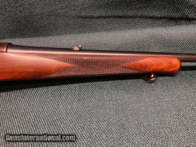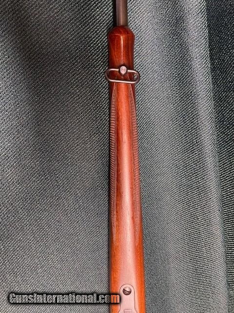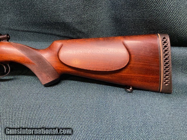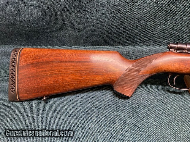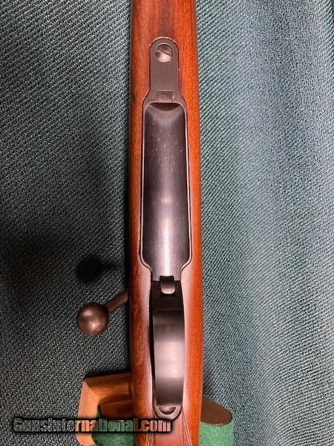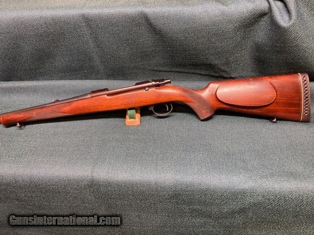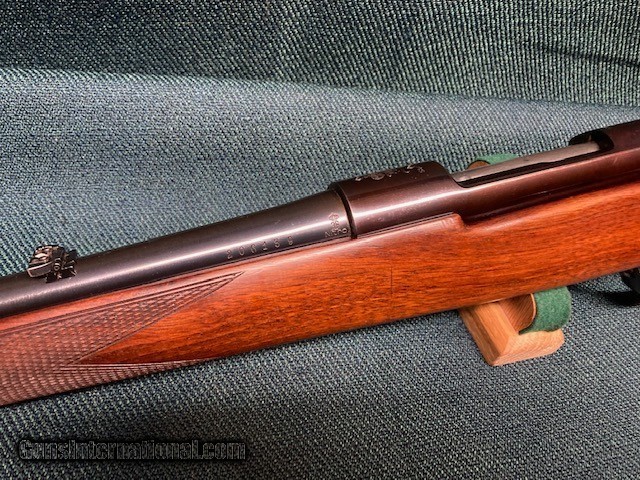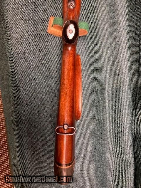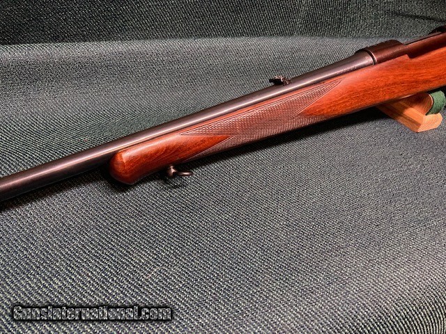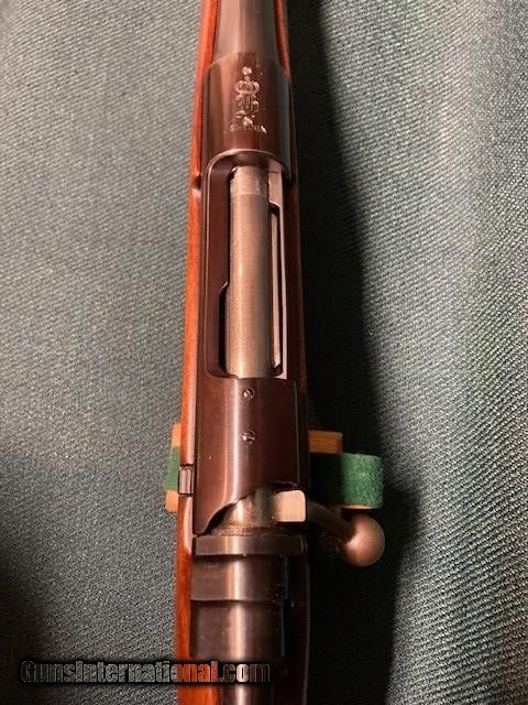 Description: HUSQVARNA 4100 Lightweight in 30-06 Springfield. 1956-57 mfg date. NICE CONDITION!!. Excellent bore in 20.5" bbl. 14.25" LOP over added pad.(needed on this 6.25# gun in '06). Steel bottom metal(early guns). Blue 98%. Wood 95%( a few minor marks & a slight impression from wearing a receiver sight at some time in it's life right in front of bolt handle slot below tap holes for sight.) Has later era Lyman flip down rear sight. Nice example of a fine Swedish hunting rifle. $50.00 Shipping to your FFL. NO CA Sales. SOLD |
