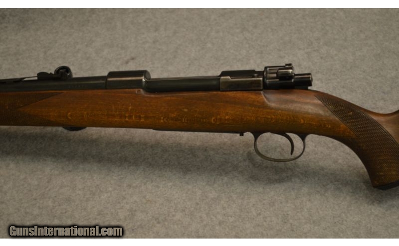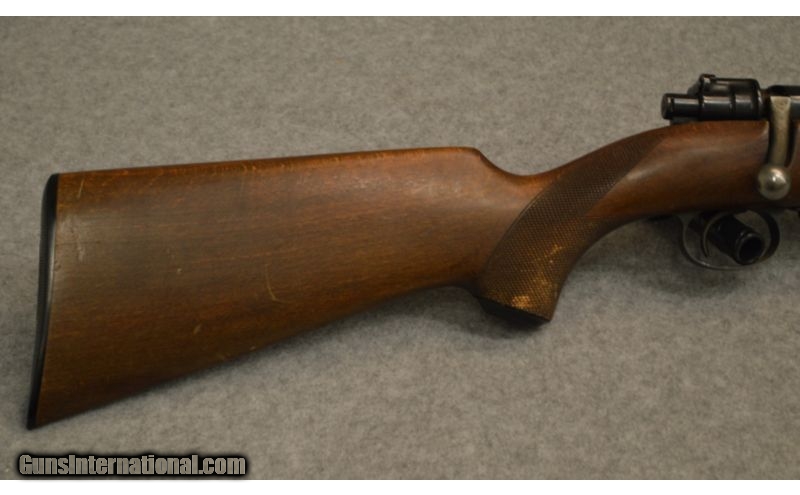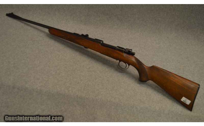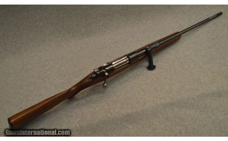 Description: SOLD Caliber Info: 8 x 57 Chambers: Bolt action right. Metal Condition: Some rust on bolt bluing is in good condition. Wood Condition: Good condition. Bore Condition: Bright and shiny. Barrels: 24 inch. Triggers: Single. Stock: Pistol grp with checkered. Stock Dimensions: 13 LOP. Fore End: Matching with checkered. Butt Pad: Plastic plate. Sights: Iron. Item Location: Berlin, MA |