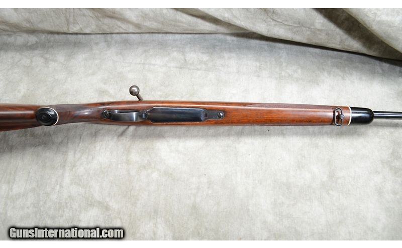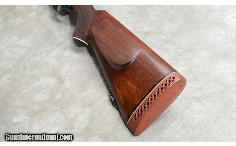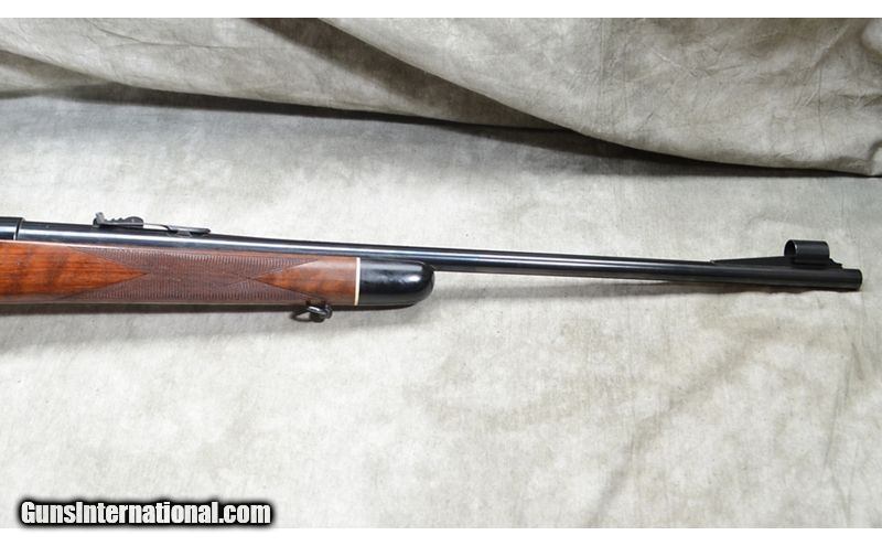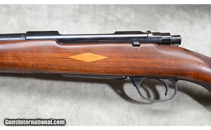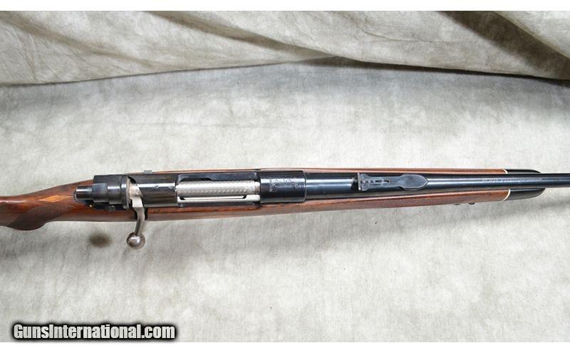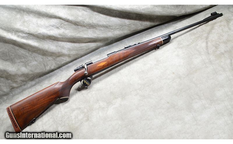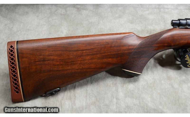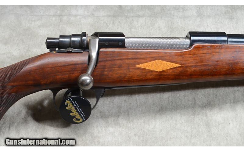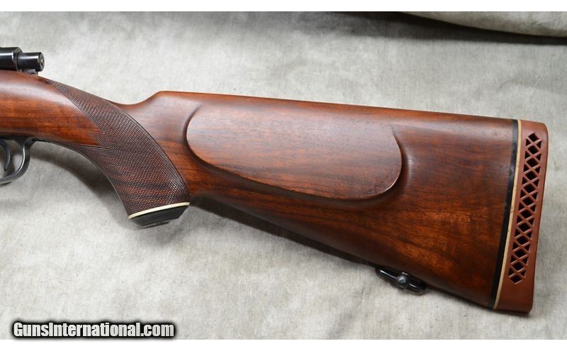Description: Nice everyday rifle featuring checkered walnut stock with diamond shape inlays and black tip/grip caps. Bolt is heavily jeweled and it has hooded front sight. Hinged floor plate. .30-06 Springfield SOLD Chambers: 4 Metal Condition: Very good. Minor handling marks. Wood Condition: Very good. Minor handling marks. Bore Condition: Shiny and bright. Barrels: 24-inch. Triggers: Factory trigger. Stock Dimensions: 14-3/8 inch LOP. Butt Pad: Ventilated rubber Whiteline rubber pad. Weight: 7 lb - 12 oz Sights: Hooded bead and notch open sights. Drilled and tapped for scope or peep sights. Item Location: Rogers |