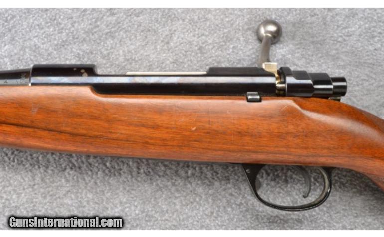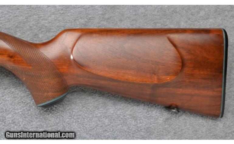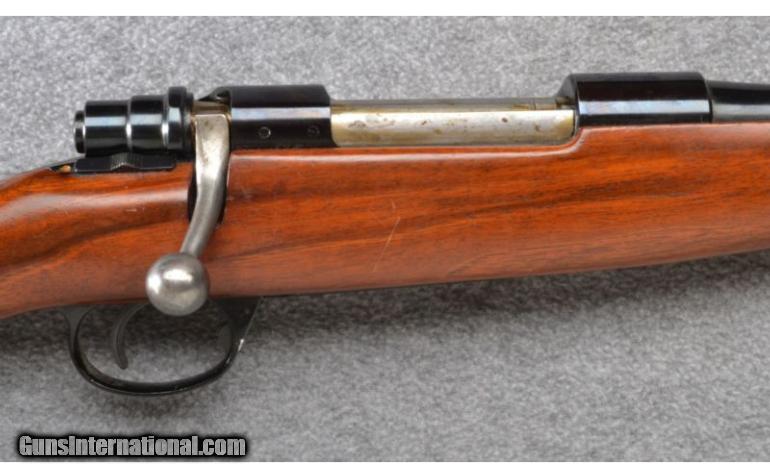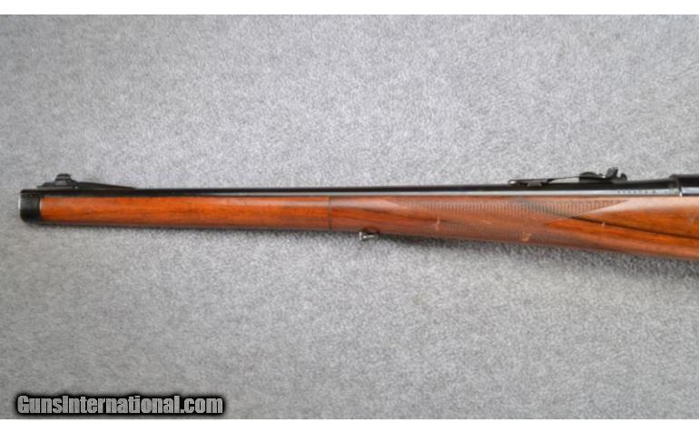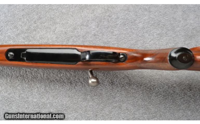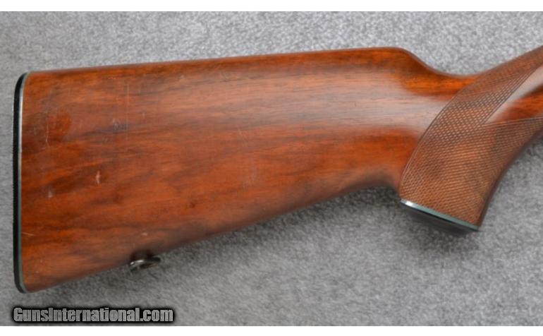 Description: Receiver has three spots of blue loss on forward ring. Barrel blue and bore are excellent. Wood shows hunting marks and remains free of cracks. Receiver is factory drilled and tapped for scope mounts. No box. SOLD Manufacturer: S/N 23XXXXA Caliber Info: .30-06 Metal Condition: Excellent Wood Condition: Good Bore Condition: Excellent Barrels: 21 Triggers: Original Stock: Checkered Walnut Pistol Grip with Black Cap Stock Dimensions: 13 7/8" LOP Fore End: Checkered Walnut with Metal Nosecap Butt Pad: Black Plastic Butt Plate Weight: 6 3/4 LB Sights: Bead Front-Adjustable Notch Rear Item Location: Wheeling, WV |