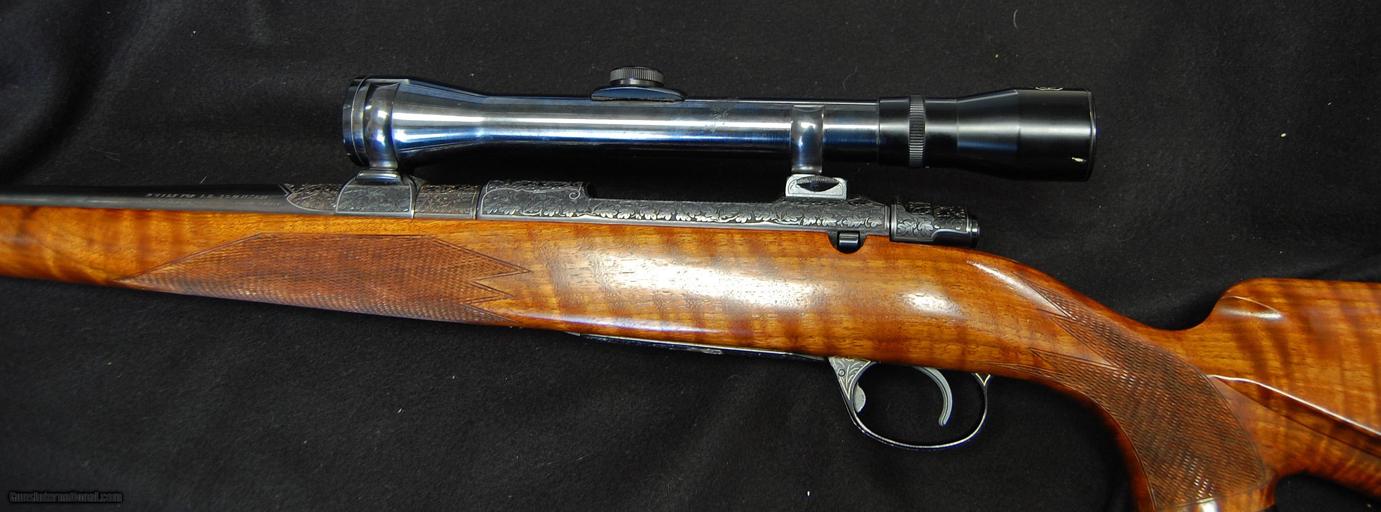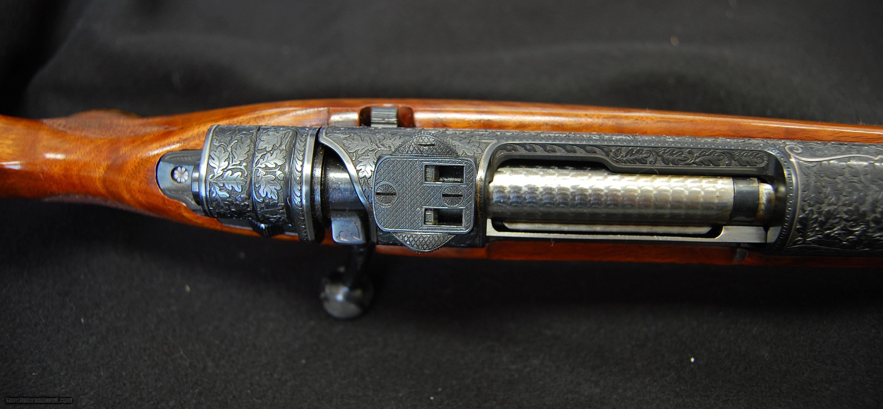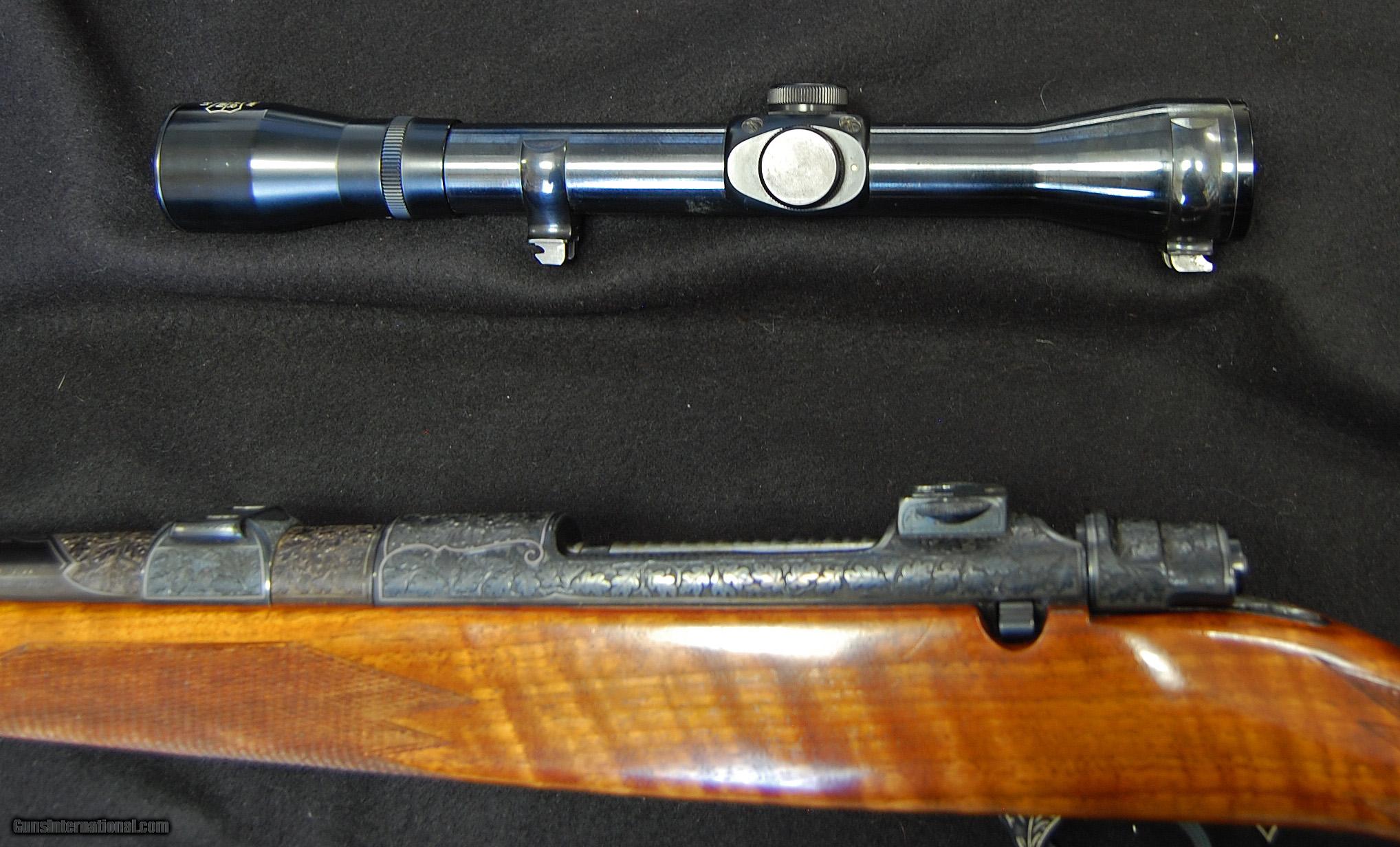 Description: A beautiful piece with custom engraving and stockwork by Waffen Reich in Darmstadt, Germany. The highest example of German engineering. Includes a Pecar-Berlin 4x fine crosshair scope in claw mounts that fit like a glove. SOLD Curio/Relic: Yes |