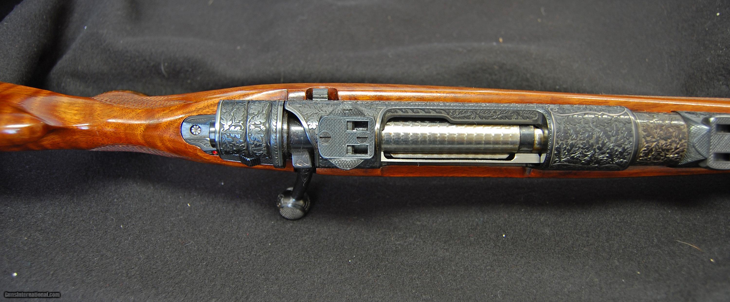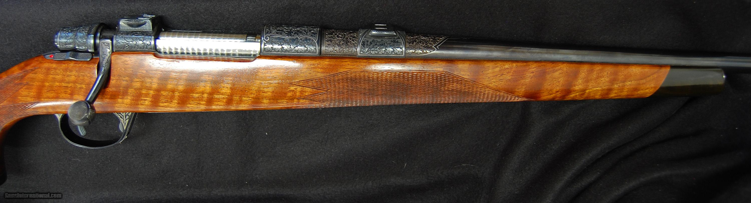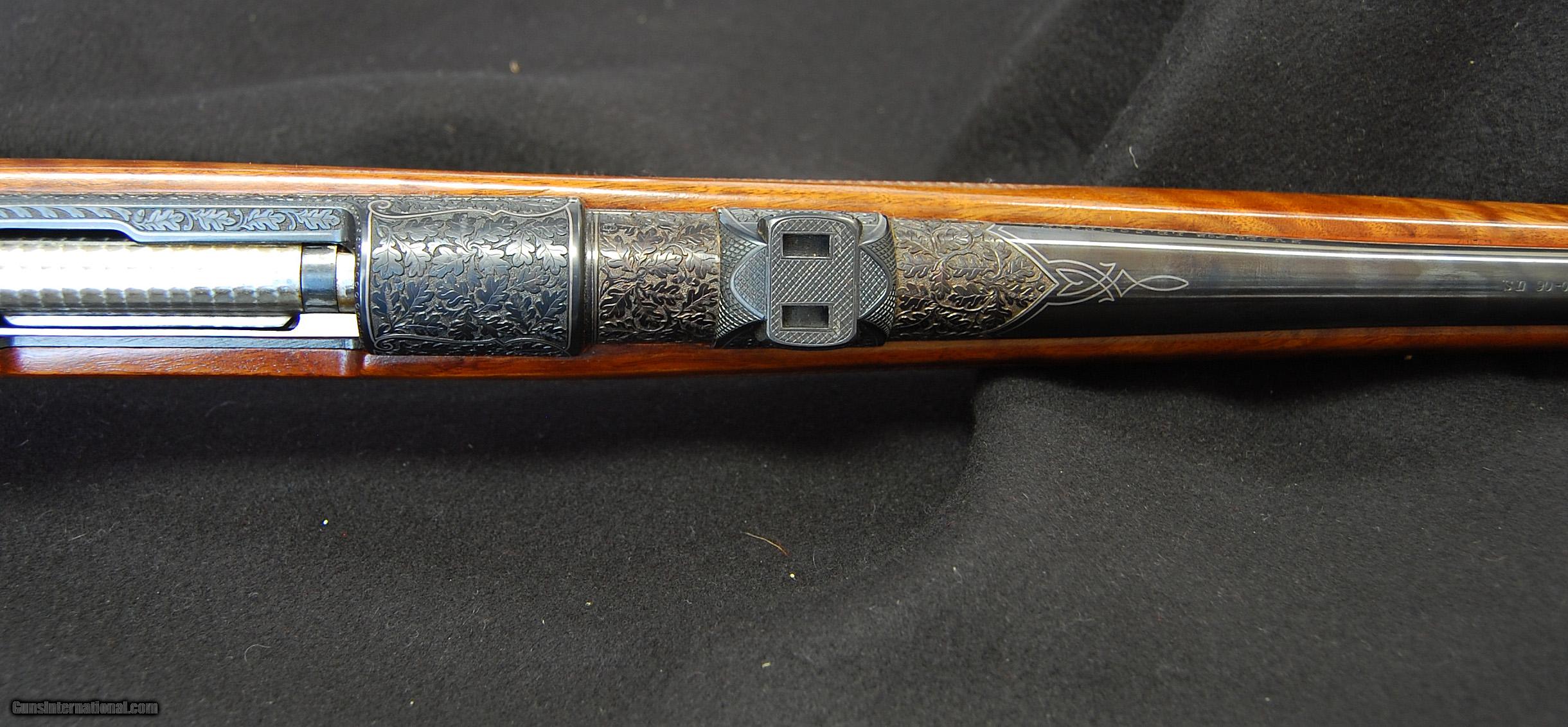 Description: A beautiful piece with custom engraving and stockwork by Waffen Reich in Darmstadt, Germany. The highest example of German engineering. Includes a Pecar-Berlin 4x fine crosshair scope in claw mounts that fit like a glove. SOLD Curio/Relic: Yes |
