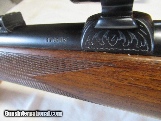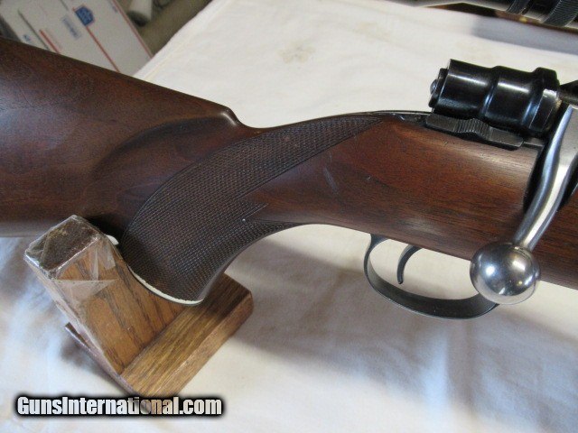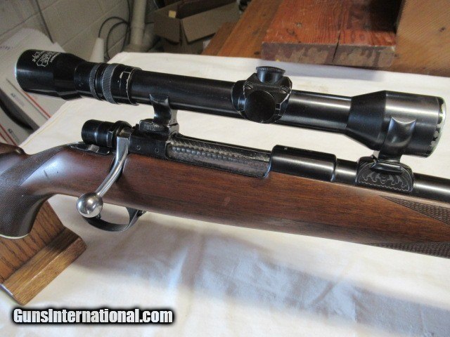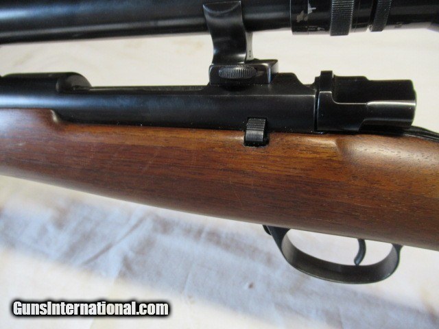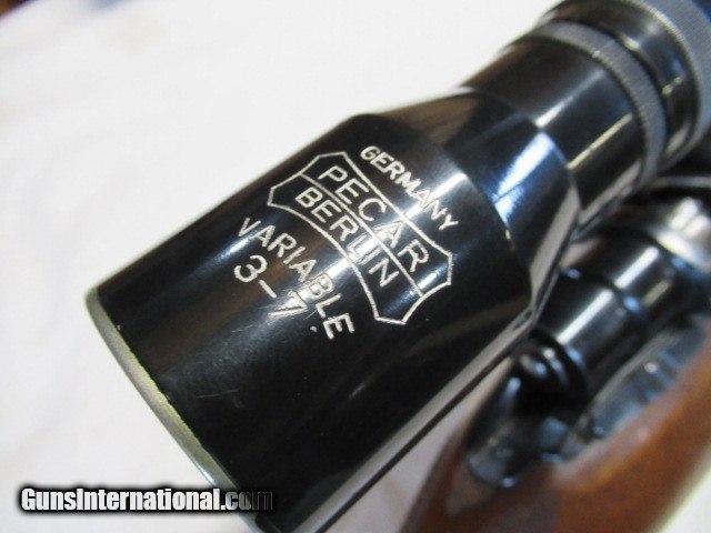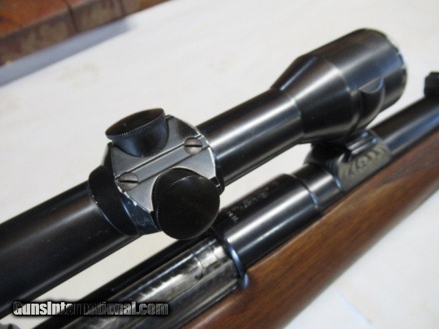 Description: Mfg 1968-70, 24" Barrel, Leaf folding rear Sight, Jeweled Bolt, Good Bore, Cheekpeice, 13 1/2" Lop to original Butt Plate, Comes with German Pecar Scope with quick release mounts with very clear optics, 98% Blue, Wood shows a few very light handling, Outside of scope shows a little wear, Buyer pays 45.00 shipping Pa residents add 6% sales tax, Price is for check or money order, Cc add 3% SOLD |