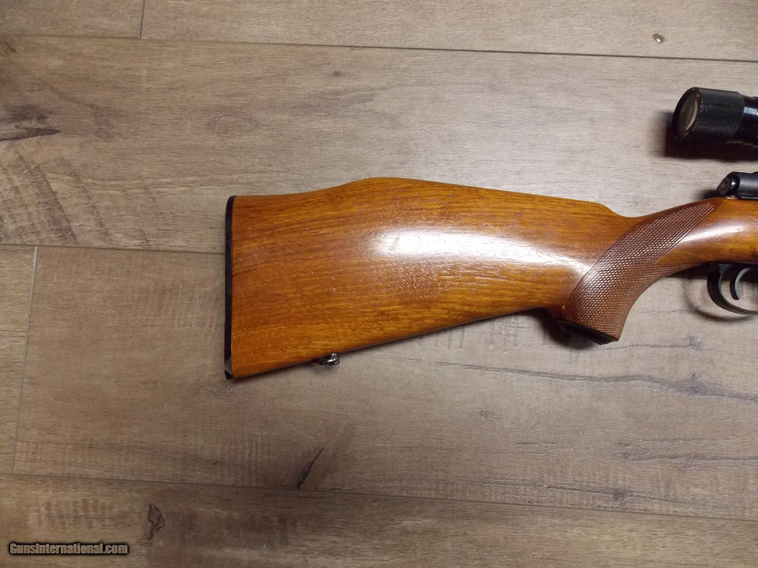 Description: Nice Husqvarna sporting rifle in .243 winchester cal. 22 1/2" barrel . Gun is in overall good condition with some light dings in stock original finish. Blue is in good condition with no rust or pitting. Floor plate is cast and has good black finish. Good bore. Gun has a classic Bauch and Lomb 2.5 X8 power scope with Bauch and Lomb external adjusting base. Original buttplate and factory sights. SOLD Manufacturer: Husqvarna Caliber Info: .243 winchester Condition: good Metal Condition: good Wood Condition: good |