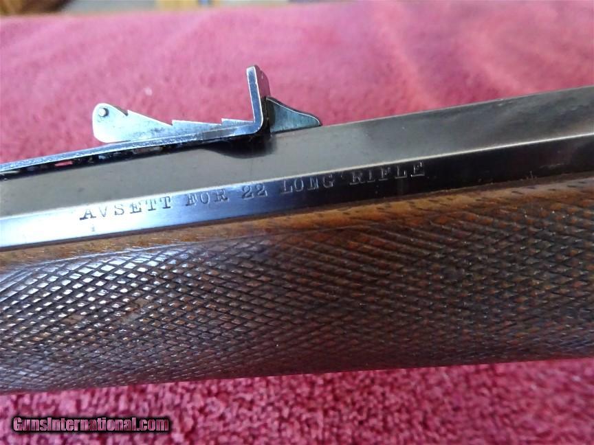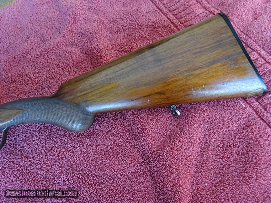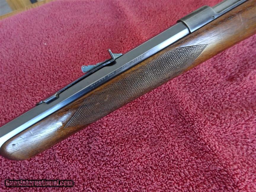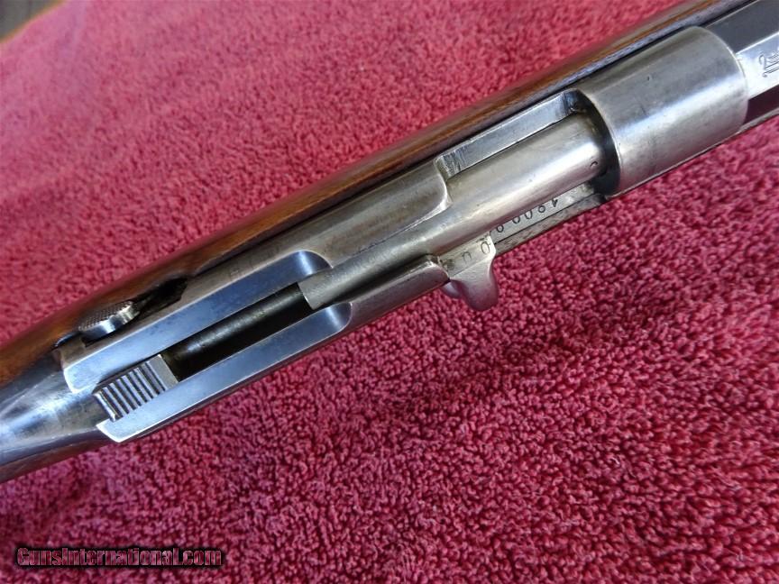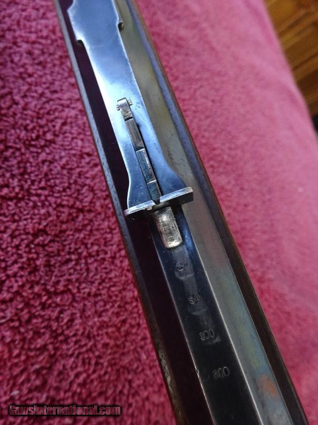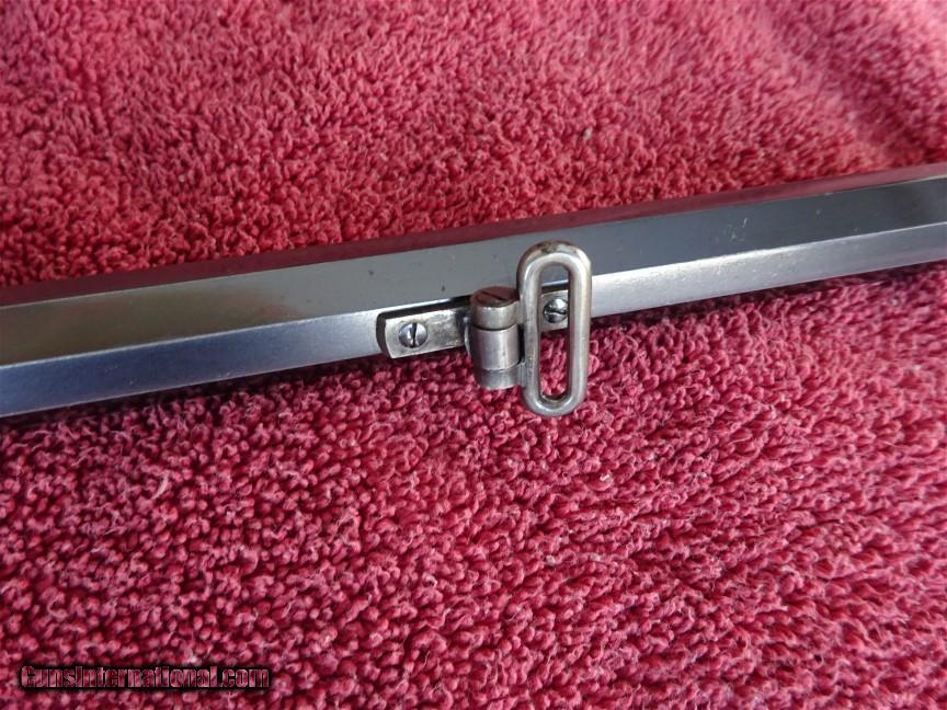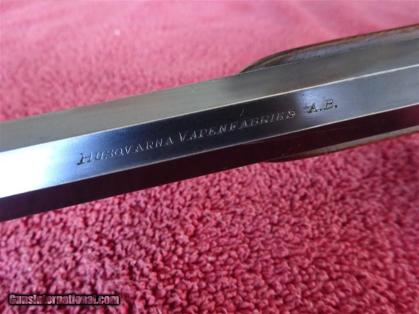 Description: HUSQVARNA, SINGLE SHOT TARGET RIFLE, 22 LONG RIFLE, 25" OCTAGON BARREL, MIRROR BRIGHT BORE. BLUE WEAR ON THE SHARP EDGES, ADJUSTABLE SIGHT 20 TO 200 METERS. EUROPEAN WALNUT STOCK, HALF PISTOL GRIP, FINE CHECKERING, FACTORY SLING SWIVELS. VERY GOOD WOOD AND CHECKERING EXCEPT SMALL REPAIR NEAR THE BOTTOM OF THE BUTTPLATE. VERY HIGH QUALITY SWEDISH RIFLE, MADE ABOUT 1910. $550.00 + $40.00 Insured shipping to an FFL address. See all Pats listings We also have hundreds of pieces of ORIGINAL gun company advertising & memorabilia available for sale. We have no reprints or reproductions. Email for more information. SOLD Curio/Relic: Yes |