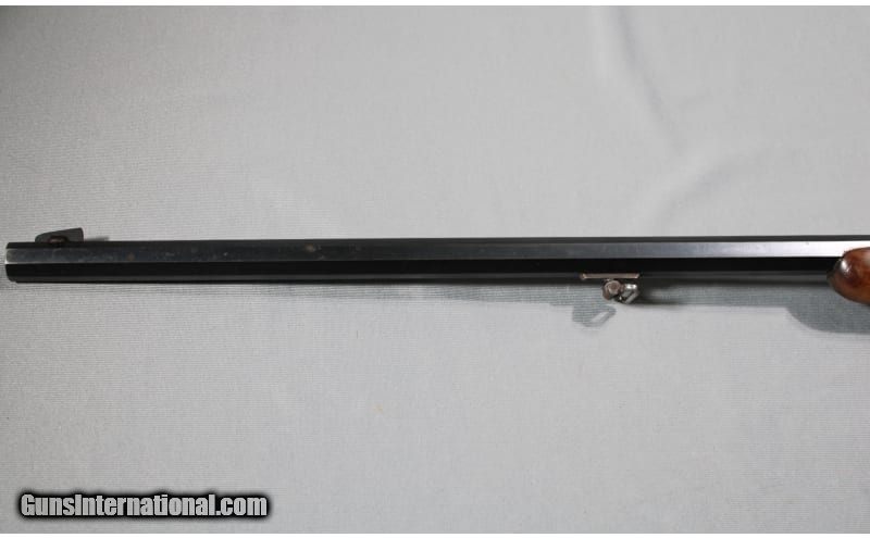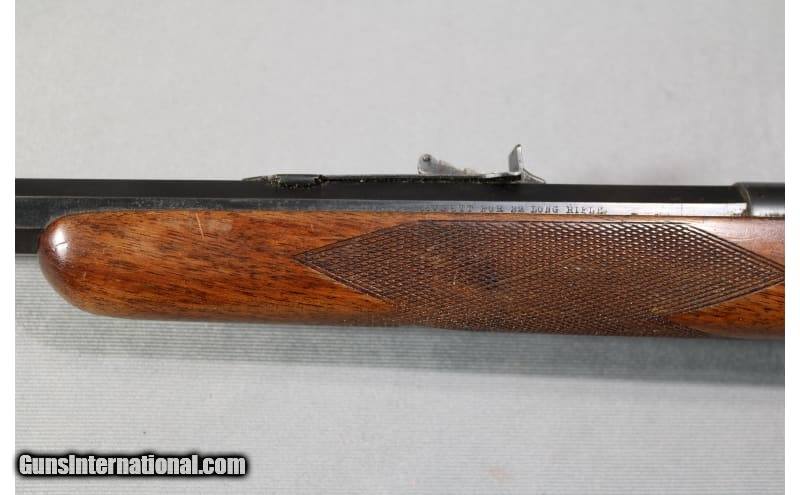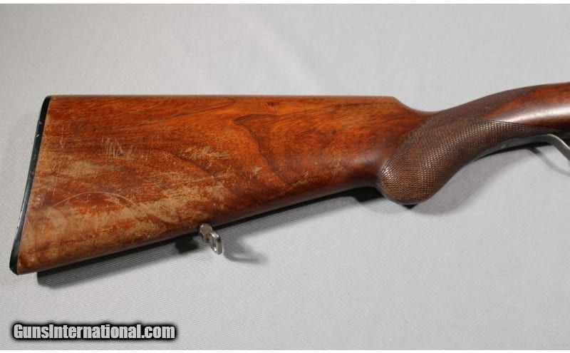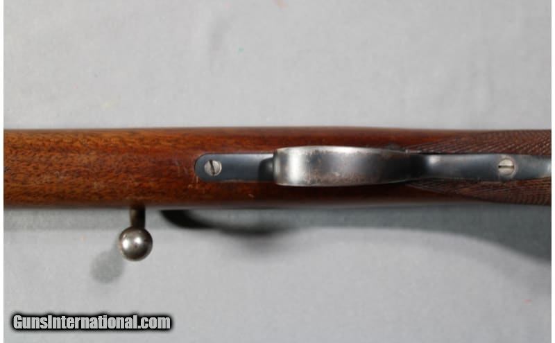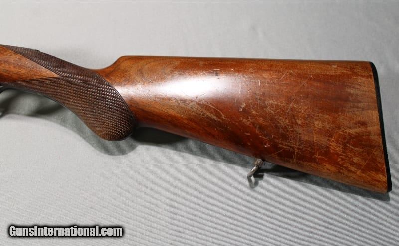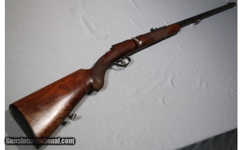 Description: Vintage Husqvarna Avsett Model 65 in 22 LR Single Shot Bolt Action Rifle features 25" blued steel octagonal barrel, single-shot chamber, 44.5" overall length, turned-down stainless steel bolt, thumb-cock serrated hammer, checkered one-piece hardwood stock & forearm, and fixed front blade & adjustable leaf rear sights, sling swivels, and hard rubber butt-plate. A very rare gun with a full octagonal barrel and unique hammer that follows the bolt. Finish is typical for a rifle this age. Barrel still has lots of grooves. .22 Long Rifle SOLD Metal Condition: good Wood Condition: good Bore Condition: bright Barrels: 25" octagon barrel Stock Dimensions: 15 Fore End: checkered wood Butt Pad: plastic Weight: 5 lb - 14 oz Sights: factory sights Item Location: Council Bluffs, IA |