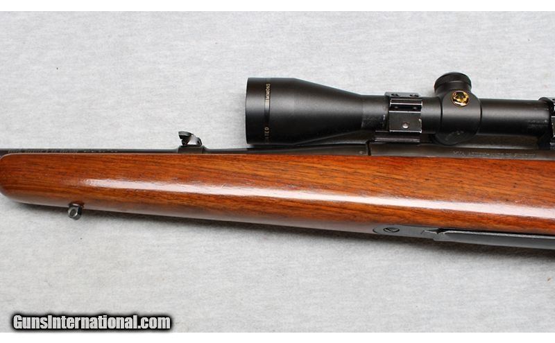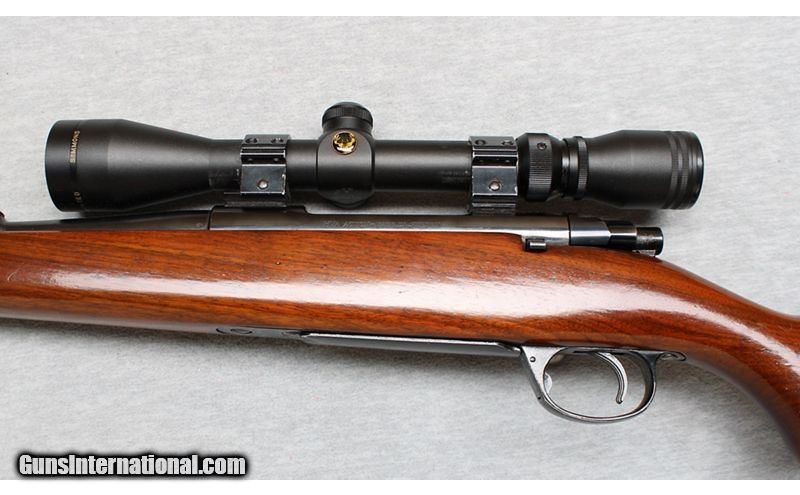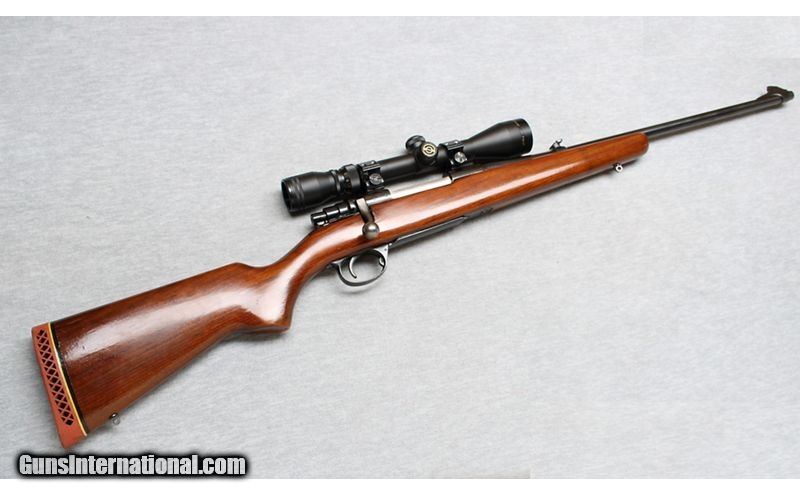 Description: J.C. Higgins 51L lightweight sporting rifle in 30-06 caliber. This rifle is built around the excellent Swedish Mauser HVA action by Husqvarna and was sold by Sears. It has a slim profile 22" barrel with excellent bore and a 1/10 twist which is better for stabilizing heavy bullets than the similar style Husqvarna's of the same era. The safety is an improved shotgun-style over the original clunky and scope intrusive Mauser's. .30-06 Springfield SOLD Metal Condition: Excellent Wood Condition: Very Good Bore Condition: Bright Barrels: 22 Inches Triggers: Factory Stock Dimensions: LOP 13 1/4 Inches Fore End: Smooth Hardwood Butt Pad: Rubber recoil pad Sights: "Simmon 3-9x40 Scope, Express sight with front blade Item Location: La Vista, NE |