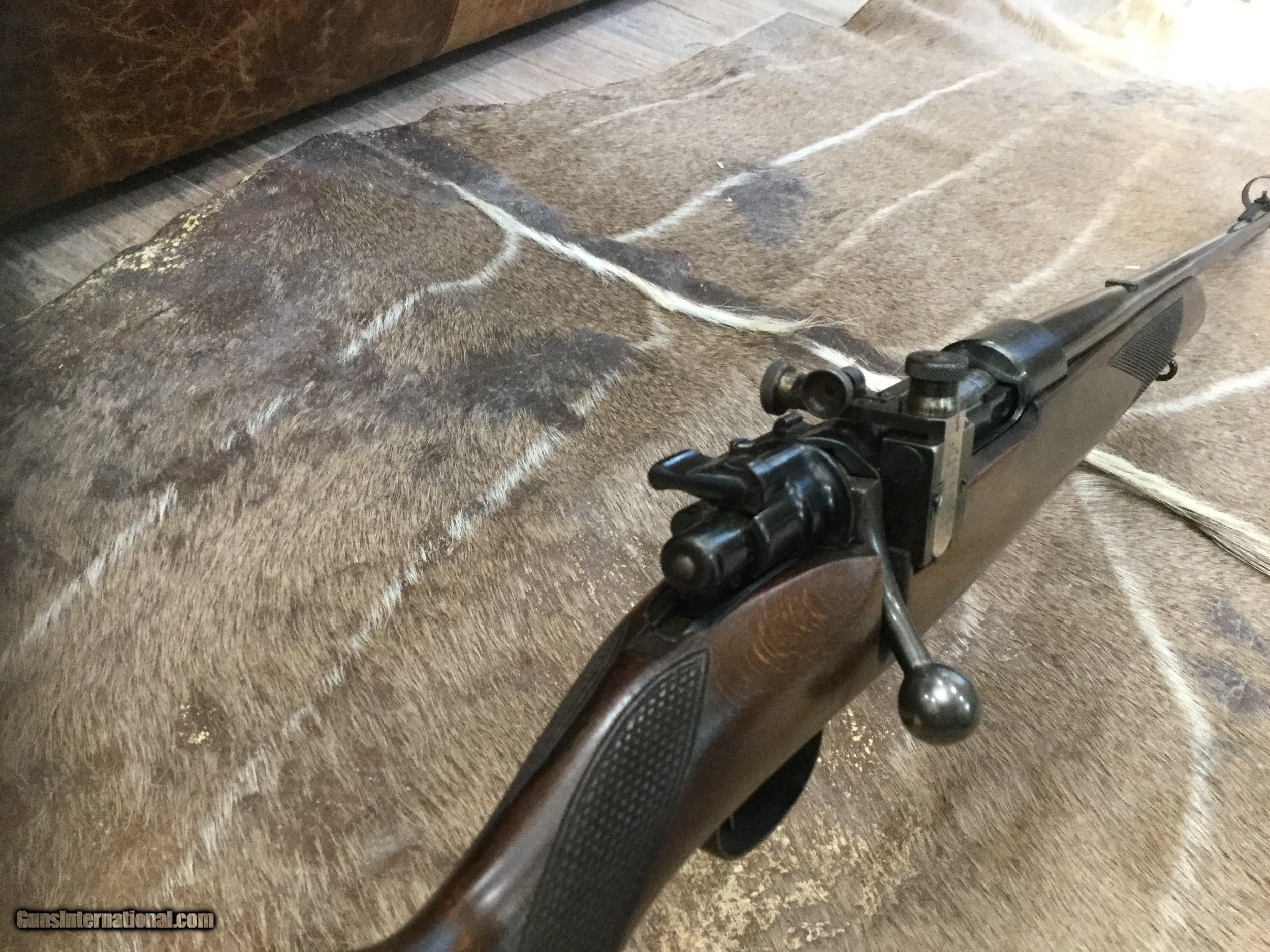 Description: Husqvarna built on a Swedish Mauser Action 30-06 with 24” barrel, the rifle is all original wood is 80% with some fading, metal 90% with perfect bore, rear sight Lyman type with oversized front sight hood $350.00 plus shipping or best offer. SOLD Manufacturer: Husqvarna Model: Mauser Caliber Info: 30-06 Condition: Used Metal Condition: 90% Wood Condition: 80% Bore Condition: 100 % Barrels: 24” Action: Bolt Triggers: Mauser Weight: 8 pounds Sights: Lyman Item Location: Texas |