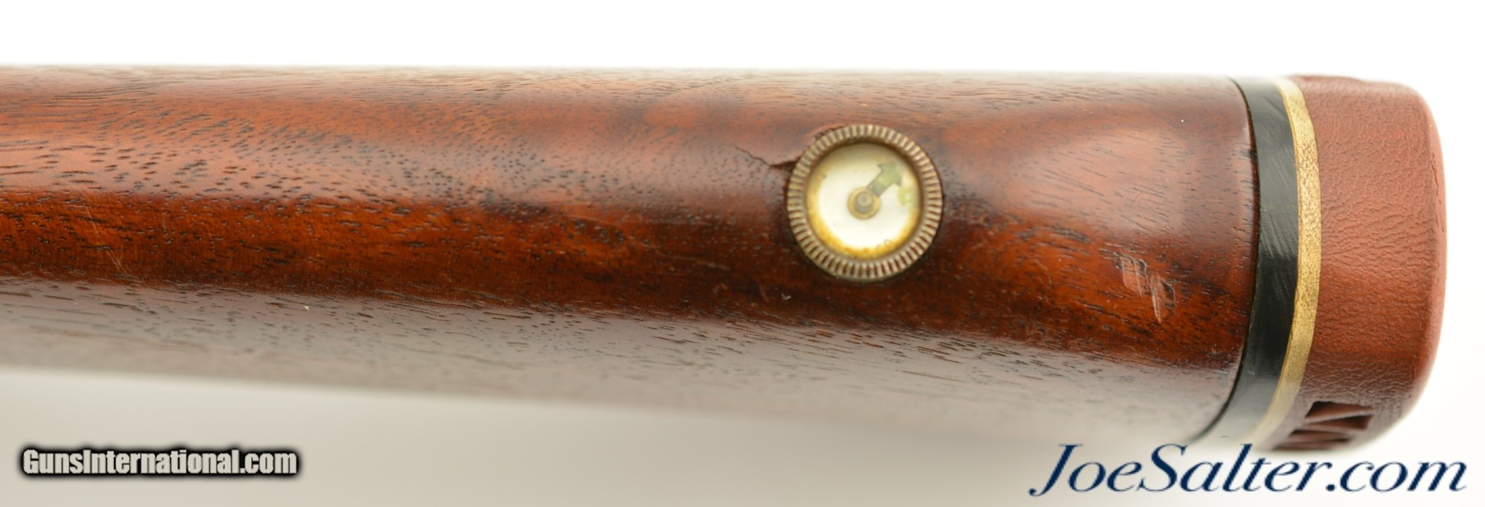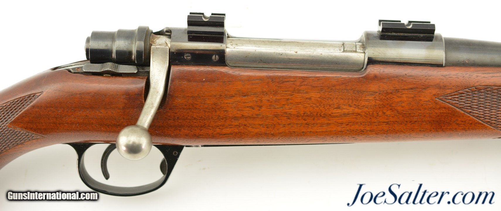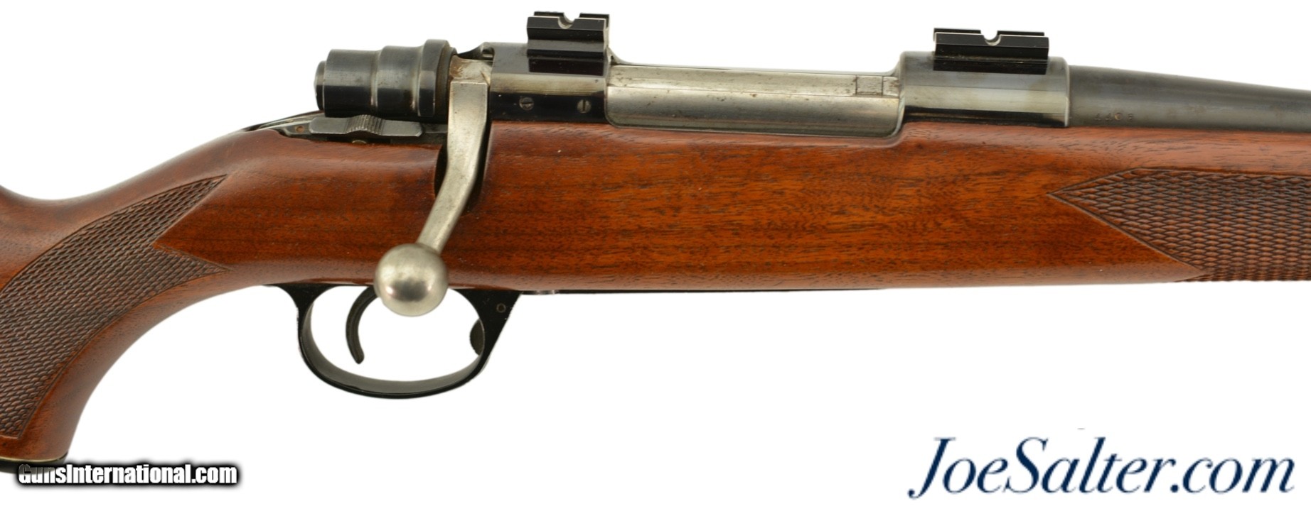 Description: Serial #4408, .308 Winchester, 22 inch barrel with a bright, excellent bore. This is the J.C. Higgins (Sears Brand) model 51-L bolt action rifle manufactured by Husqvarna in Sweden. In near excellent condition the barrel retains about 94-96% of the original blue finish. The checkered walnut stock is likewise excellent with an installed "Poly Choke" company compass and has a sling swivel. It is equipped with a folding rear sight without any front sight and has Weaver style bases for a scope. The Husquvarna action works smoothly as does the side mounted slide safety. This is an excellent example of a very well built hunting rifle imported and sold by Sears. FFL or C&R SOLD Curio/Relic: Yes |