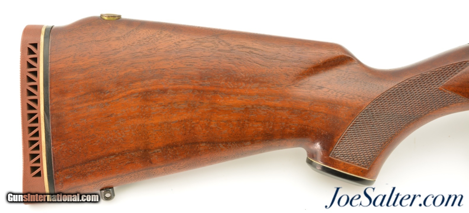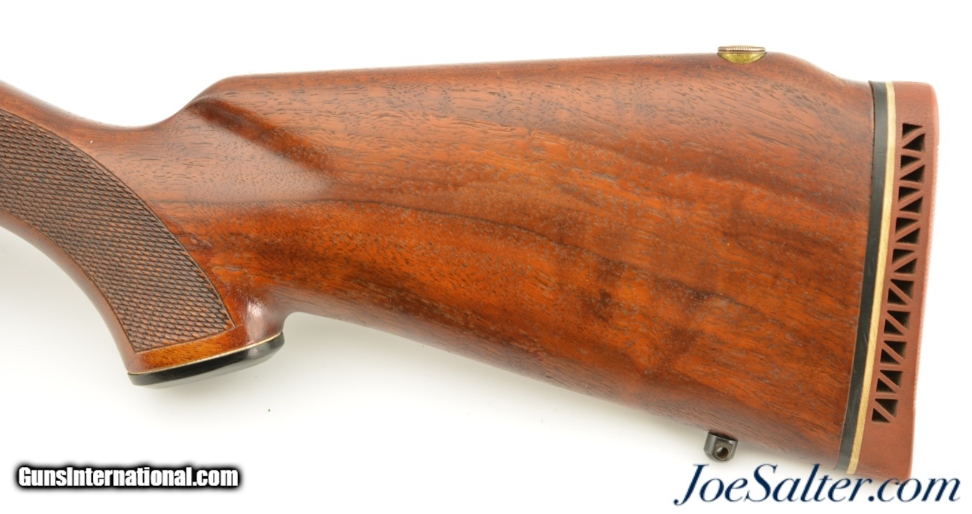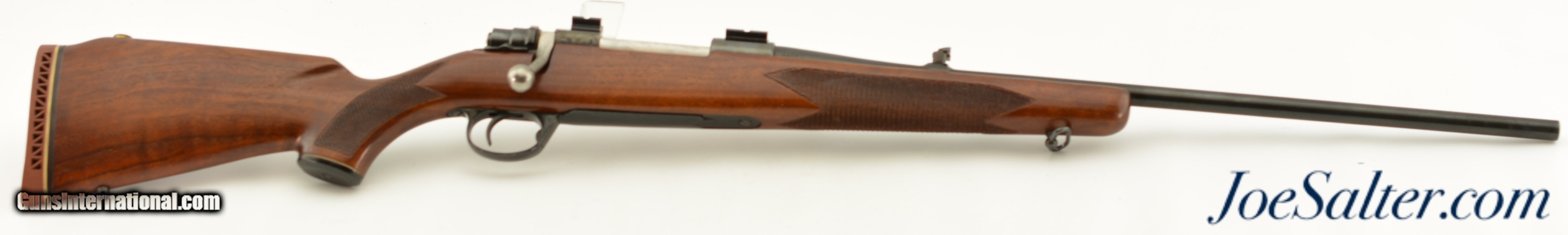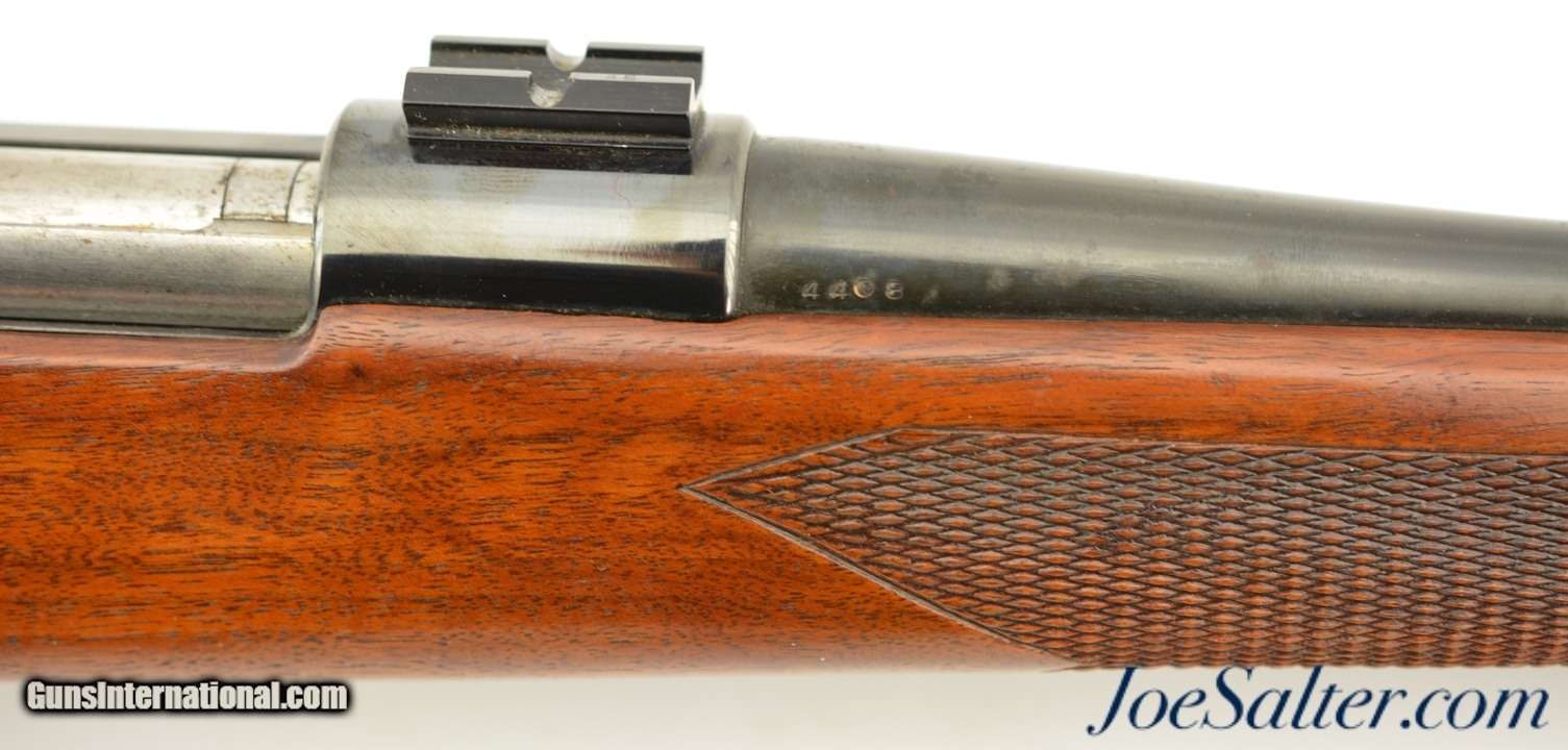 Description: Serial #4408, .308 Winchester, 22 inch barrel with a bright, excellent bore. This is the J.C. Higgins (Sears Brand) model 51-L bolt action rifle manufactured by Husqvarna in Sweden. In near excellent condition the barrel retains about 94-96% of the original blue finish. The checkered walnut stock is likewise excellent with an installed "Poly Choke" company compass and has a sling swivel. It is equipped with a folding rear sight without any front sight and has Weaver style bases for a scope. The Husquvarna action works smoothly as does the side mounted slide safety. This is an excellent example of a very well built hunting rifle imported and sold by Sears. FFL or C&R SOLD Curio/Relic: Yes |