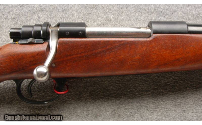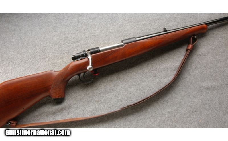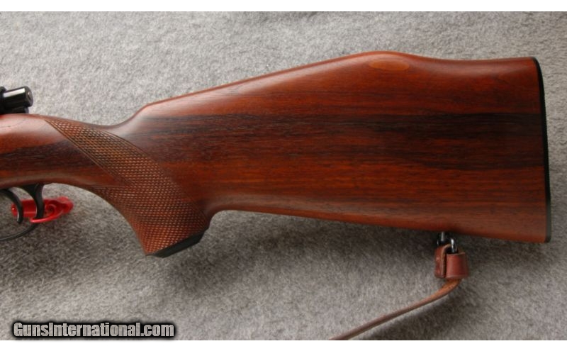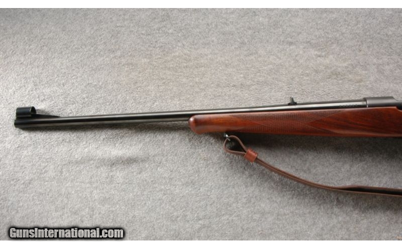 Description: This is a nice clean sporting rifle. The wood and blue are in excellent condition. The rifle is drilled and tapped for scope bases and sports fixed iron sights. SOLD Caliber Info: 7 MM Rem Mag. Chambers: Bolt action repeater. Metal Condition: Excellent. Wood Condition: Excellent. Bore Condition: Bright and shiny. Barrels: 22 inch round blue. Triggers: Single. Stock: Very nice walnut with a high comb and a checkered pistol grip. Stock Dimensions: 13 1/2 Inch LOP. Fore End: Matching checkered walnut with a schnable. Butt Pad: Black butt plate. Weight: 7 lb. - 5 oz. Sights: Factory iron sights. Extras: Comes with a nice leather sling. Item Location: Owatonna, MN |