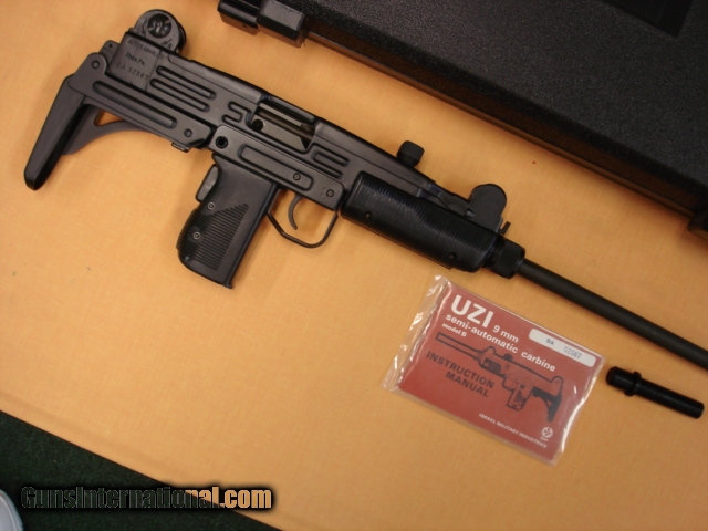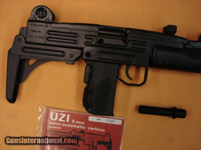 Description: Action Arms UZI carbine, Model B. 9MM. With case, sleeve, manual, 2 mags, and dummy barrel. Unfired. Serial nos. SA52567. Extra mags availble fo this gun. at $35 each, double mag pouch at $16.50.Mags are new in box. SOLD |