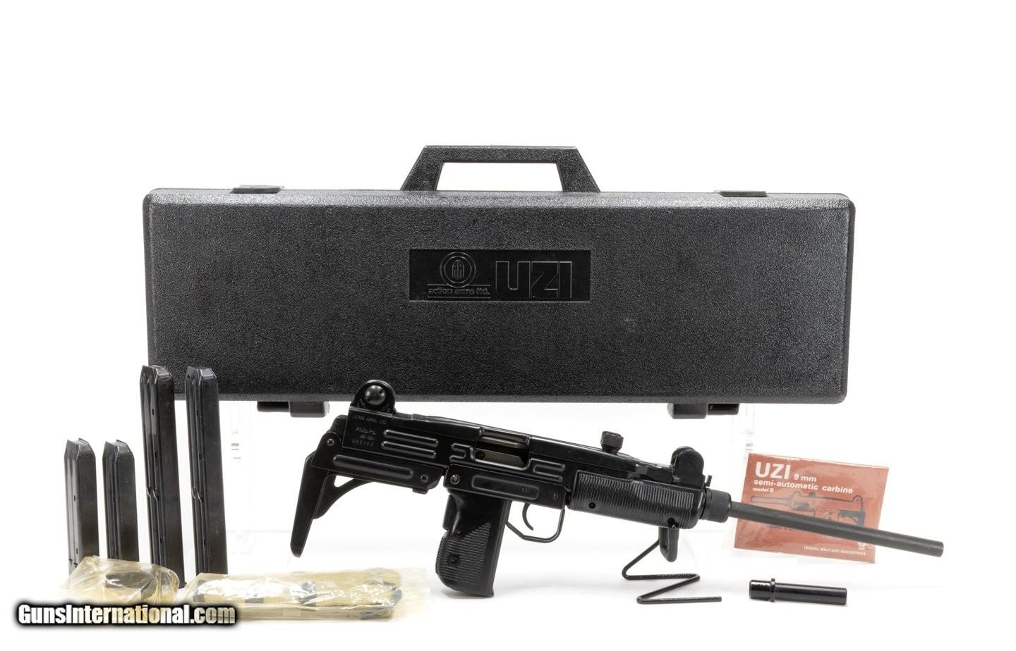 Description: Guns Listing ID: 570845 Pre-Ban Action Arms IMI Uzi Model 45 .45ACP w/ Box, 4 Magazines, & Accessories Manufacturer: Israel Military Industries Model: Uzi Model 45 Condition: Very Good Caliber/Gauge: .45 ACP Action: Semi-Auto Barrel Length: 16\" Overall Length: 24\" / With Stock: 31.5\" Capacity: 16 or 10 Finish: Black Origin: Made in Israel Other Features: Folding stock. Notes: Pre 1986 import ban. What‚s Included: Firearm, IMI UZI hard case, (2) 10-rd & (2) 16-rd magazines, dumb barrel for display, mag loader, sling, manual. • Please be aware that we have not test-fired this firearm. Unless stated otherwise, expect this firearm to fire and function safely. SOLD Manufacturer: IMI Model: Uzi Model 45 Caliber Info: .45 ACP Condition: Used - Non-Certified Barrels: 16" BARREL Action: SEMI AUTOMATIC Finish: black |