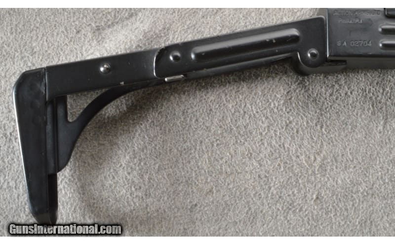 Description: Semi auto UZI rifle chambered in 9 mm, Imported by Action Arms out of Philadelphia. Features: elevation adjustable front sight, wind drift adjustable rear sight. Standard UZI folding stock, grip safety, and bayonet lug. CONDITION: Very fine, with a few extremely minor marks from handling and operation. 9mm Parabellum SOLD Chambers: Semi auto. Bore Condition: Bright good bore. Barrels: 16" barrel. Triggers: Single. Stock Dimensions: Adjustable. Fore End: 2-piece polymer foregrip. Butt Pad: Metal. Weight: 8.25 lbs Item Location: Owatonna, MN |
