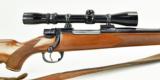 Interarms Mark X .22-250 caliber rifle. English made Mauser action sporter. Has open sights and Redfield 3X9 scope.