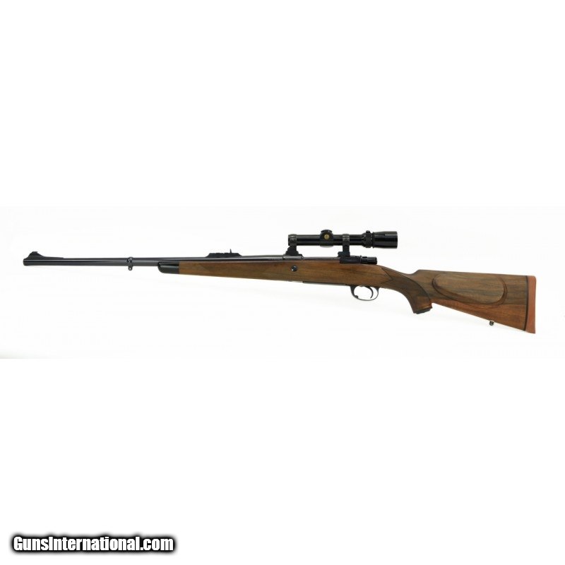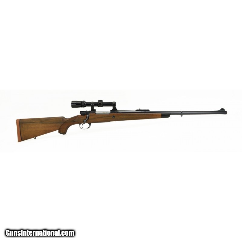 Description: " Interarms Mark X .375 H&H Magnum caliber rifle. Whitworth Express rifle, made in England. Has a 3-leaf express sight, Mauser action and figured walnut stock. A Leupold 1.5x5 scope is mounted on EAW quick release mounts. A great big game rig in excellent condition. SOLD |