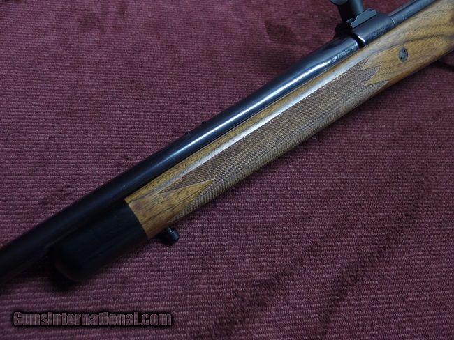 Description: ***SALE PENDING***Custom Interarms Mark X, (CZ Mauser 98 action); 7mm Rem. Mag.; 24-inch barrel; beautiful custom walnut, hand checkered stock with shadowline cheekpiece; inletted grip cap; contrasting forend tip and Limbsaver recoil pad; glass bedded action with aluminum pillars; Model 70 style safety. Metal is clean other than some scattered marks on the barrel; excellent bore; comes with a Timney adjustable trigger and Leupold bases & 1-inch rings; great looking rifle at a great price! VISA/MC/DISCOVER/AMEX(add 3%); money orders, checks; $35shp. SOLD Manufacturer: INTERARMS Model: MARK X Caliber Info: 7MM REM. MAG. |