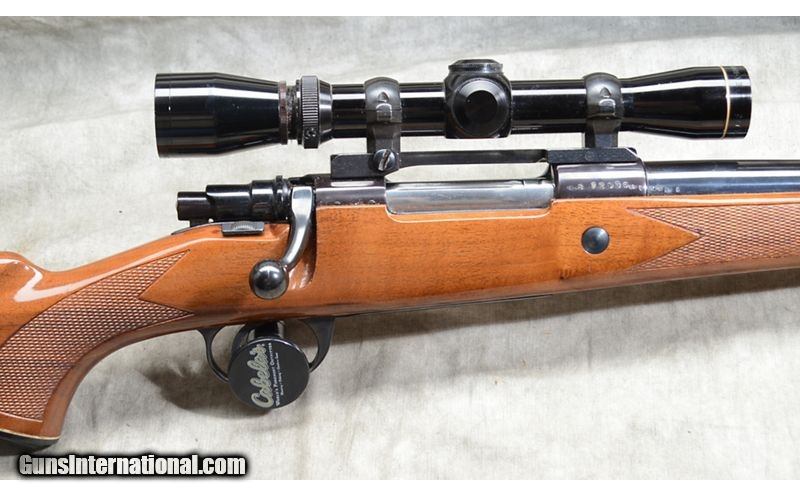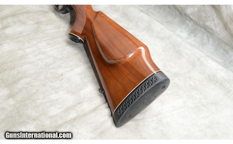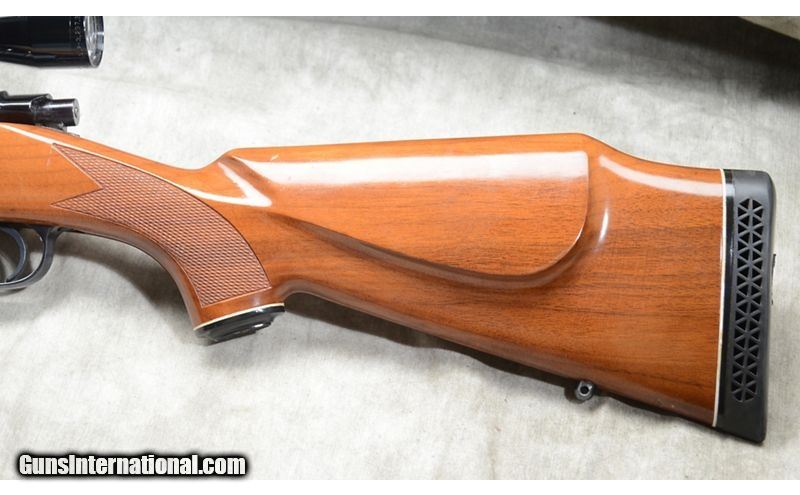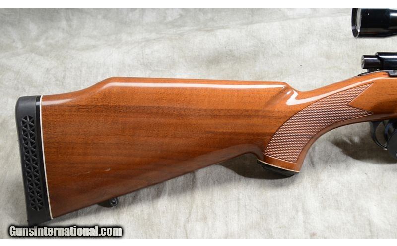Description: Great looking rifle with hardwood Monte Carlo stock, ventilated recoil pad, Mauser claw extractor, and internal box magazine with hinged floor plate. .458 Winchester Magnum SOLD Metal Condition: Very good. There are a few scratches on the trigger guard. Wood Condition: Very good. A few fine handling marks. Bore Condition: Shiny and bright. Barrels: 24-inch Triggers: Factory trigger. Stock Dimensions: 14-inch LOP. Butt Pad: Soft ventilated rubber pad. Weight: 9 lb - 5 oz Sights: Drilled and tapped fr open sights or scope. Outfitted with a 2x7 VARI-X II scope. Item Location: Rogers |