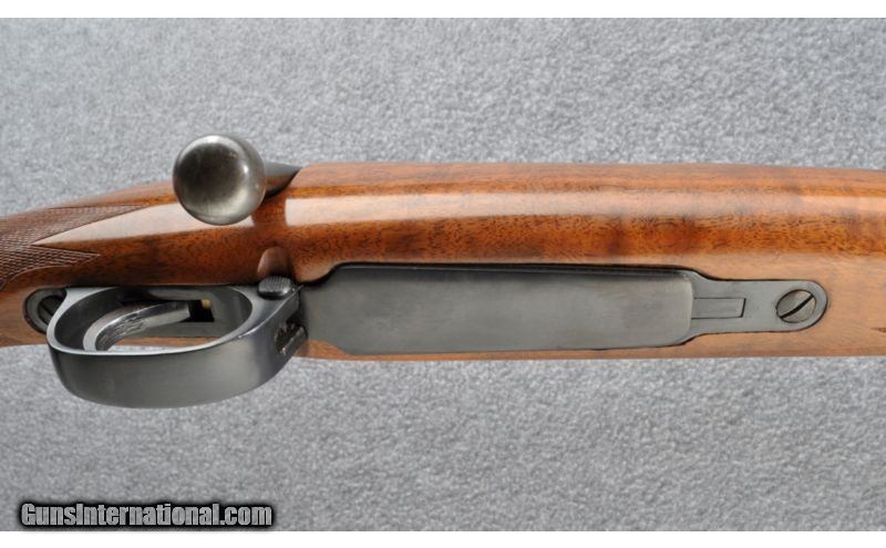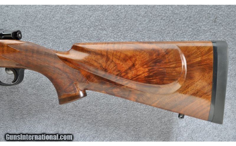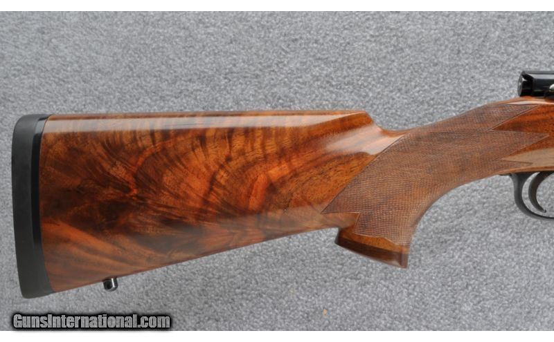 Description: Receiver made by Zastava in the former country of Yugoslavia (now Serbia). Assembled in Manchester England.This rifle is custom stocked and barreled in the powerful .416 Remington Magnum. SOLD Caliber Info: .416 Remington Magnum Metal Condition: Showing a little wear at the bolt handle and sharp edges. Receiver has turned a plum color Wood Condition: Overall excellent with the exception of a repaired small chip out at the top tang Bore Condition: Bright and sharp Barrels: 24 Stock: Checkered pistol grip with contrasting wood cap Stock Dimensions: 13.5" LOP Fore End: Checkered with black fore end tip Butt Pad: Kick-Eez rubber Weight: 9 lbs 14 oz Sights: ERA Express sights front and rear, Steel Weaver style scope bases Item Location: Grand Junction, CO |