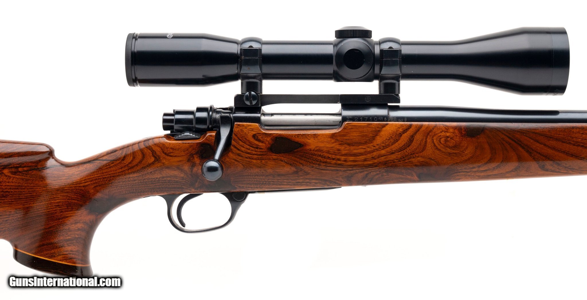 Description: Guns Listing ID: 522979 SN: 21710. Modern production 7.62x39 with a 20\" barrel. Custom built bolt action carbine with Mark X Mauser action and figured walnut stock. Has a Tasco Euro-Class scope. A good looking custom carbine, in unusual 7.62x39 caliber. Excellent condition overall. (R44820) SOLD Manufacturer: INTERARMS Model: MARK X CUSTOM MAUSER Caliber Info: 7.62X39MM Condition: Used - Non-Certified Barrels: 20 Action: BOLT ACTION Finish: WOOD/BLACK |